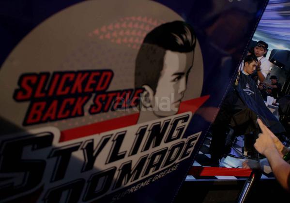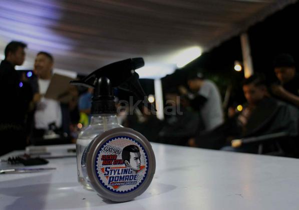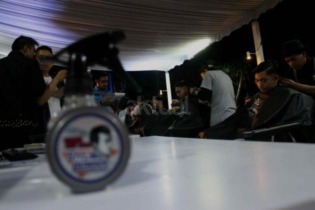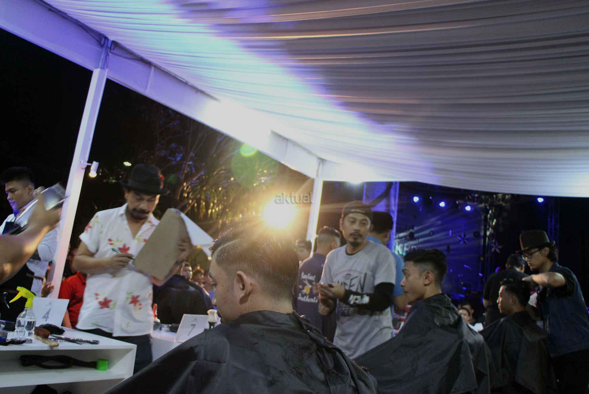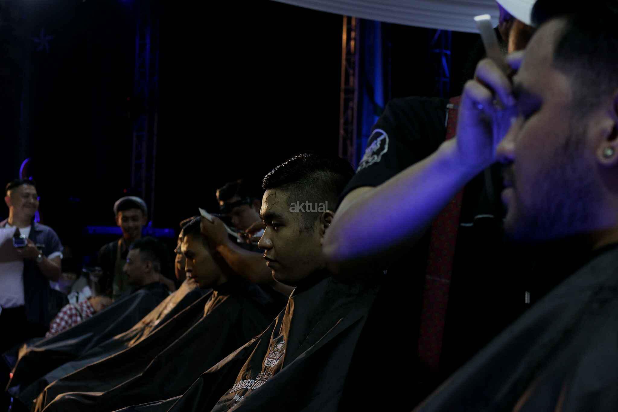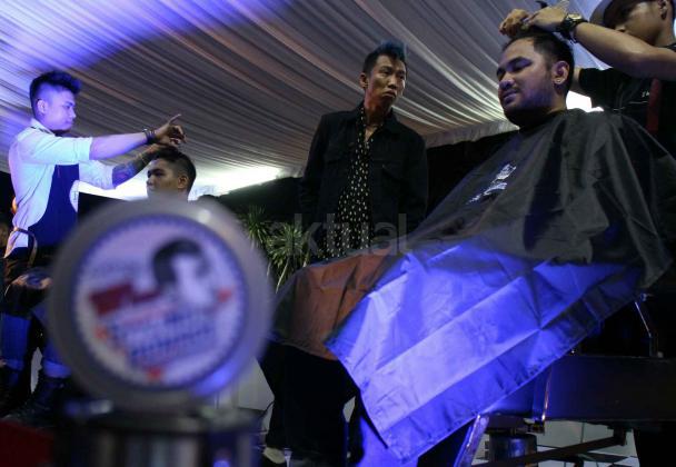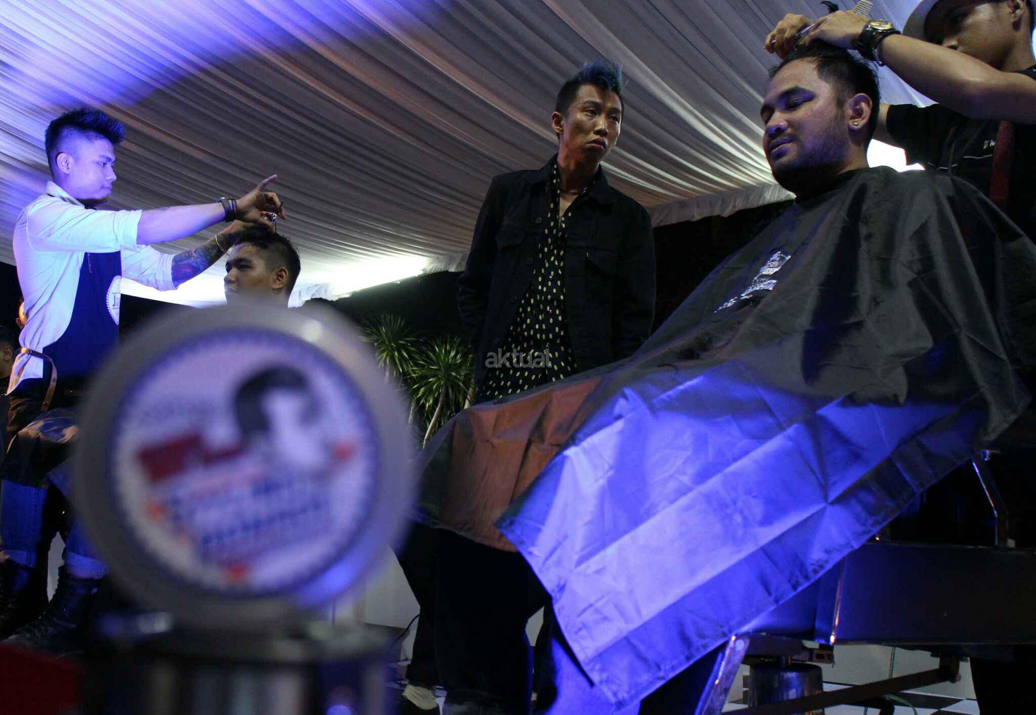 Sejumlah peserta yang berprofesi sebagai kapster barbershop mengikuti "Gatsby Barber Competition" yang digelar di Jakarta, Sabtu (12/12). Dengan tema "Saturday Nights Slickers", Gatsby memiliki tujuan agar komunitas pecinta pomade untuk mempunyai wadah tentang hairstyling dan apresiasi kepada orang-orang dibalik industrial barbershop, yaitu para kapster, atau lebih dikenal dengan baberman. AKTUAL/HO