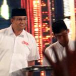 Pasangan Calon Gubernur dan Wakil Gubernur DKI Jakarta Anies Baswedan-Sandiaga Uno saat mengikuti Debat Calon Gubernur dan Wakil Gubernur DKI Jakarta di Jakarta, Jumat (27/1/2017). Debat calon Gubernur dan Wakil Gubernur kedua tersebut mengangkat tema reformasi birokrasi dan pengelolaan, pengawasan perkotaan.