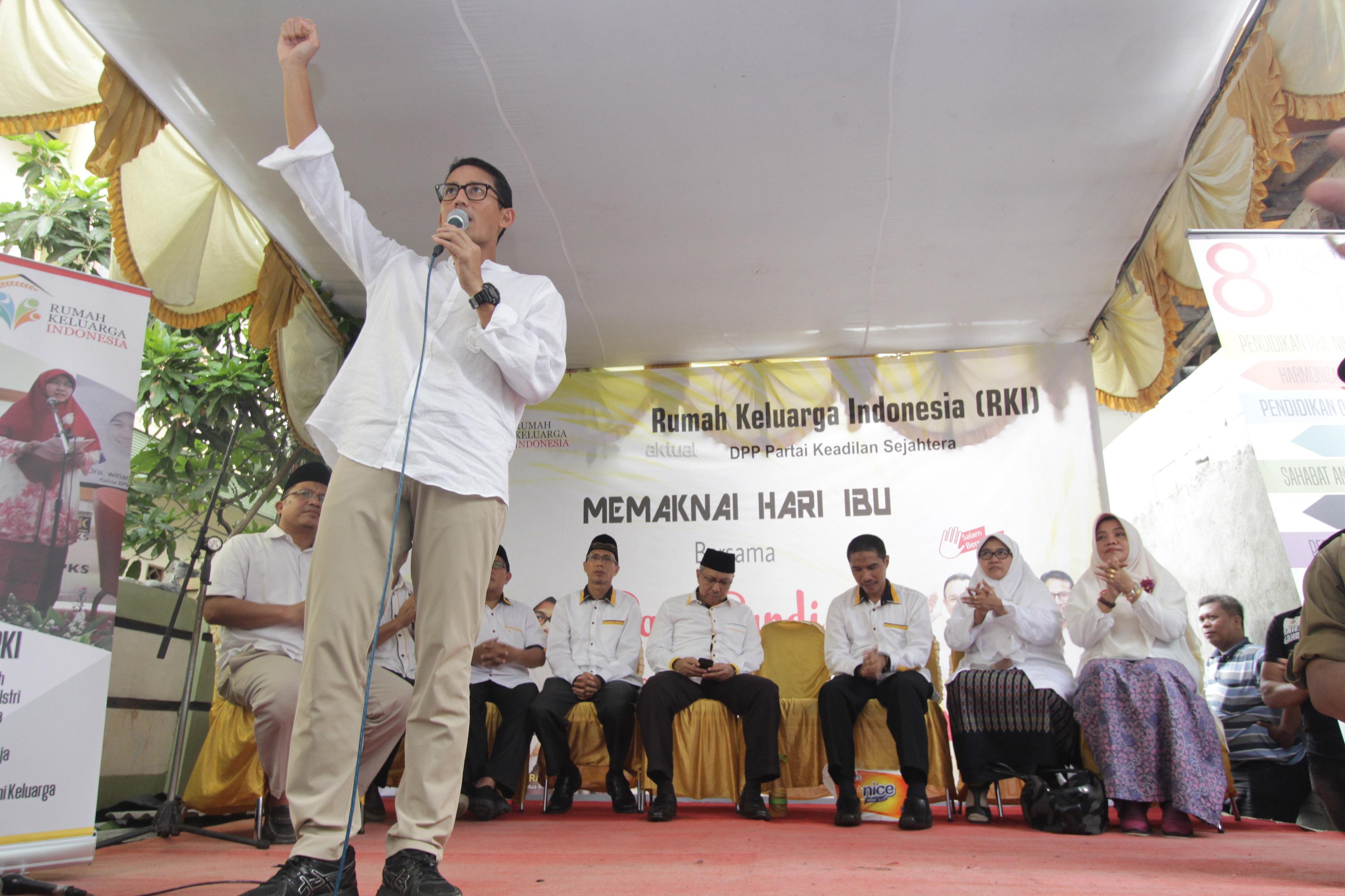 Cawagub DKI Jakarta nomor 3 Sandiaga Uno turut hadir dan memberikan sambutan dalam Gebyar Rumah Keluarga Indonesia (RKI) sekaligus memperingati Hari Ibu 2016 di Jakarta Utara, Sabtu (17/12/2016).