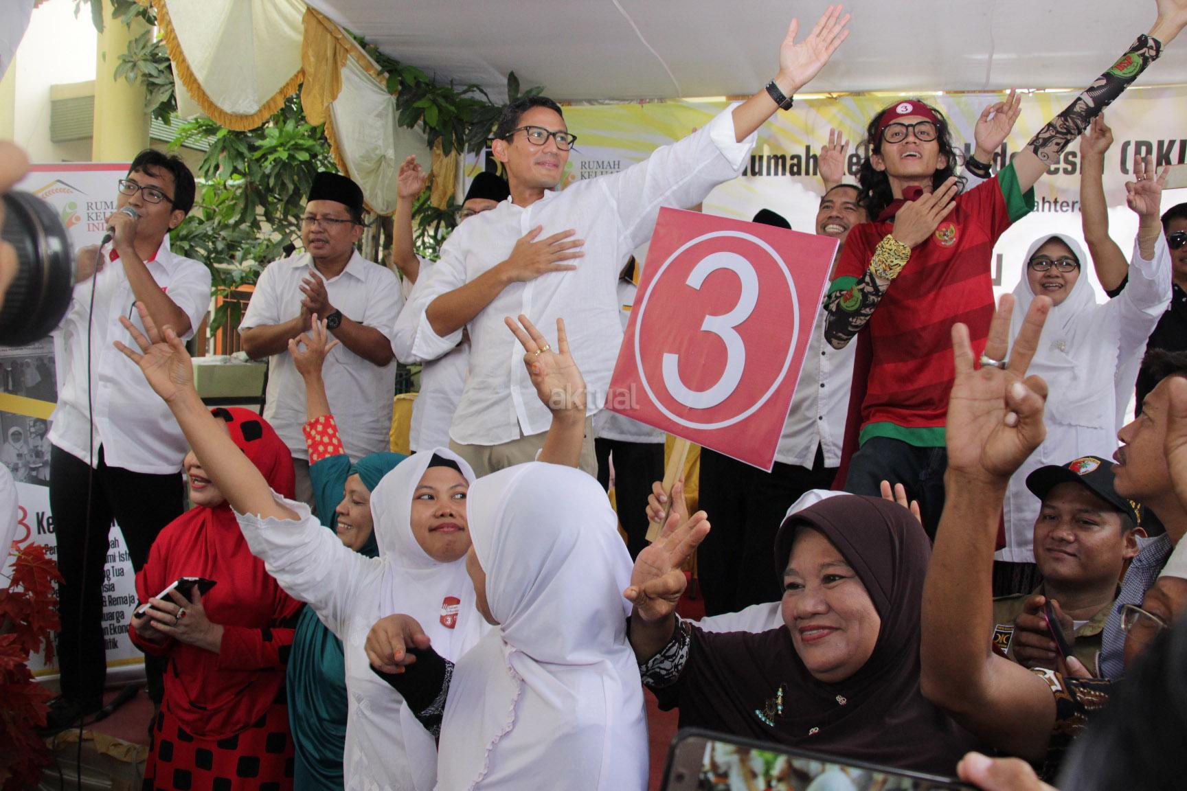 Cawagub DKI Jakarta nomor 3 Sandiaga Uno, pimpinan DPP PKS dan DPTW PKS DKI Jakarta melakukan Flash Mob Salam Bersama Nomor 3, dalam dalam Gebyar Rumah Keluarga Indonesia (RKI) sekaligus memperingati Hari Ibu 2016 di Jakarta Utara, Sabtu (17/12/2016).