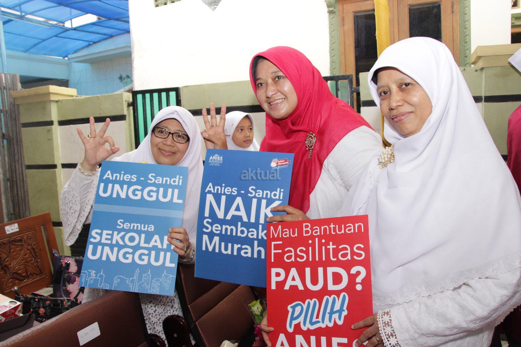 Warga di Koja Jakarta Utara ikut bergabung dalam melakukan Flash Mob Salam Bersama Nomor 3 bersama Cawagub DKI Jakarta nomor 3 Sandiaga Uno, dalam Gebyar Rumah Keluarga Indonesia (RKI) sekaligus memperingati Hari Ibu 2016 di Jakarta Utara, Sabtu (17/12/2016).
