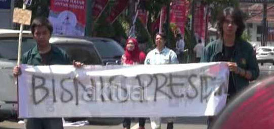 Bandung, Aktual.com – Acara Sosialisasi Kereta Cepat dan Diskusi Publik “Geliat Kota Baru Dorong Pertumbuhan Ekonomi” di Jawa Barat di Hotel Panghegar, Jumat (19/2) diwarnai aksi unjuk rasa yang dilakukan ratusan mahasiswa Institut Teknologi Bandung. (Foto)