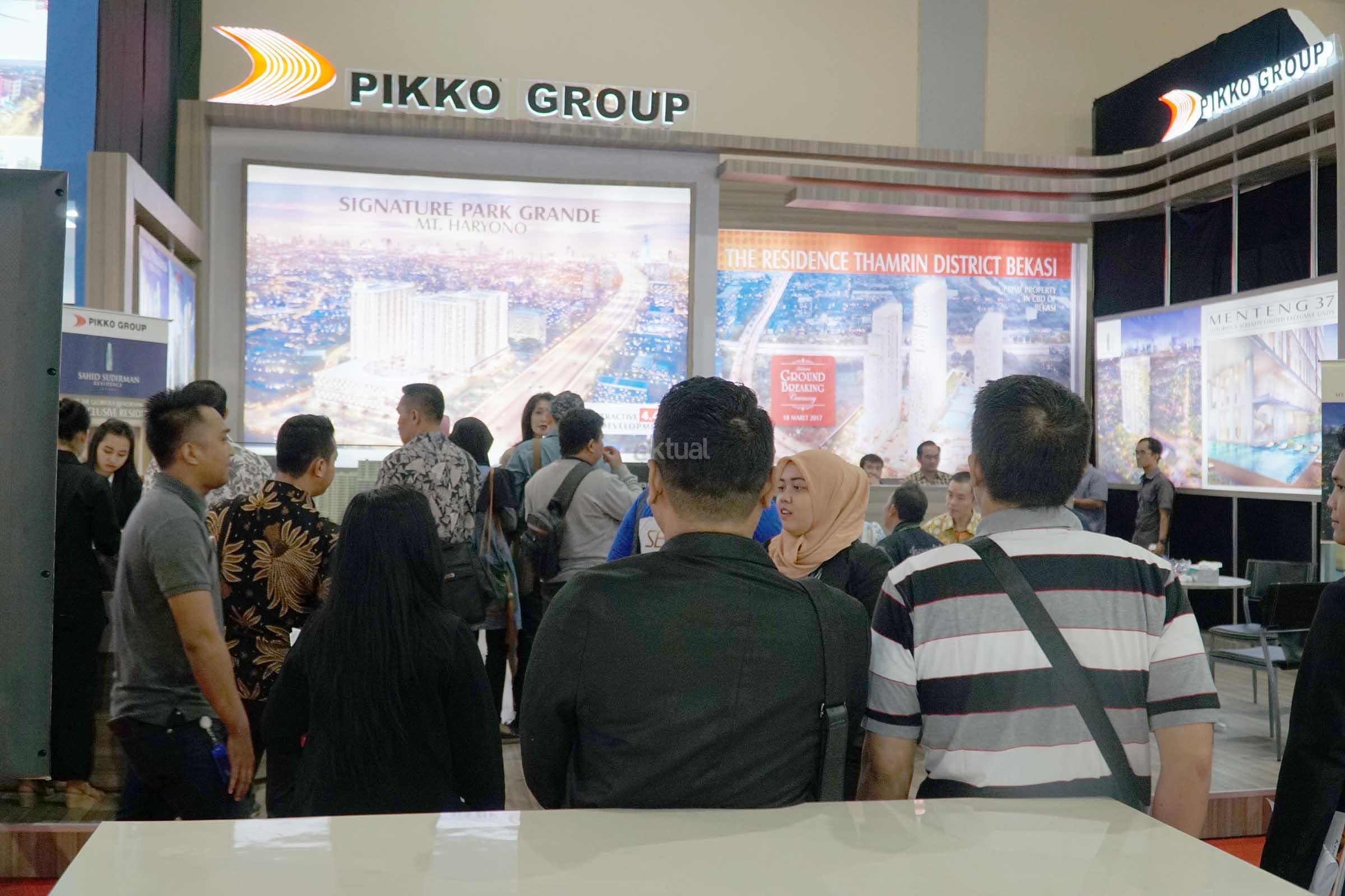 Direktur Consumer Bank BTN Handayani (kanan) berbincang dengan Direktur Marketing Pikko Land, Sicilia Alexander Setiawan ( kiri) serta Direktur Pikko Land, Hendry Leo (tengah) saat peninjauan ke Booth Pikko Group seusai pembukaan Indonesia Property Expo (IPEX) 2017 di Jakarta Convention Center, Jakarta, Sabtu (11/2).PT Pikko Land Development Tbk menawarkan lima proyek properti unggulan dengan harga spesial dalam pameran yang diikuti 120 pengembang penjuru Nusantara dan mendapat dukungan dari Kempupera,Kementrian BUMN dan DPD REI DKI Jakarta.Emiten berkode RODA ini menawarkan produk hunian Thamrin Distric Residence (TDR Bekasi), Signature Park Grande (SPG MT Haryono), Sahid Sudirman Residence,Maple Park Kemayoran serta Apartemen Menteng 37. AKTUAL/Eko S Hilman
