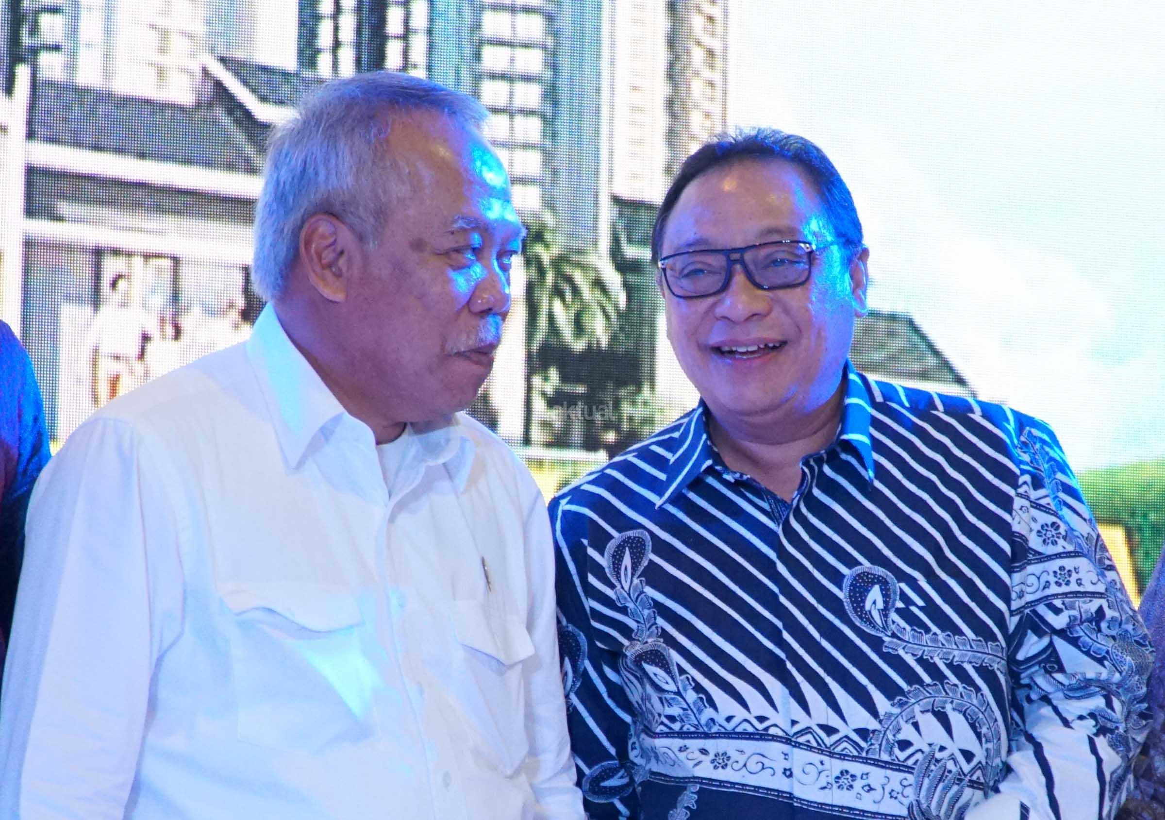 Direktur Utama Bank BTN Maryono (kanan) berbincang dengan Menteri PUPERA, Basuki Hadi Mulyono saat pembukaan Indonesia Property Expo (IPEX) 2017 di Jakarta Convention Center, Jakarta, Sabtu (11/2). Ajang pameran berkala ini digelar Bank BTN dalam rangka HUT ke-67 Bank BTN, sekaligus sebagai langkah perseroan mencapai bidikan pangsa pasar kredit pemilikan rumah (KPR) sebesar 40% pada 2019. Pesta KPR ini juga dihelat untuk mendukung Program Sejuta Rumah yang diinisiasi Presiden Joko Widodo. AKTUAL/Eko S Hilman