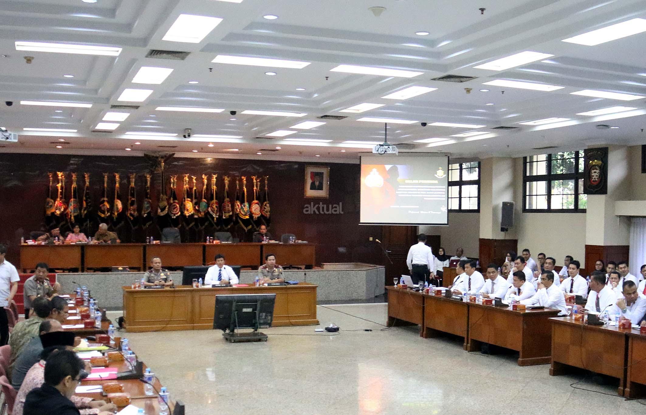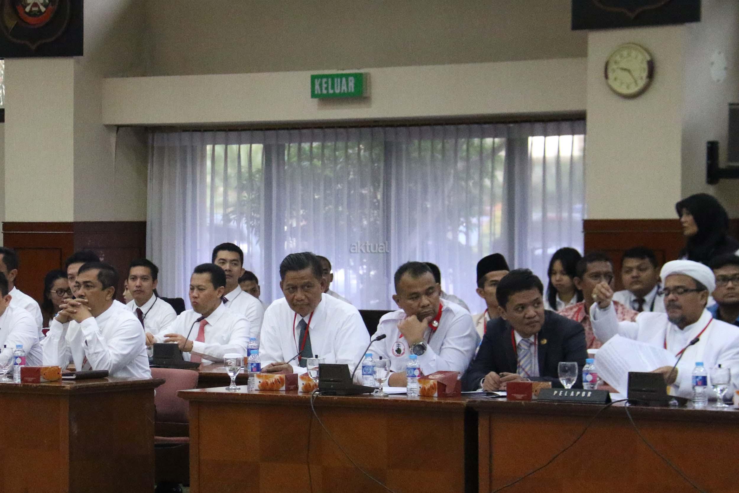 Sejumlah perwakilan dari pihak pelapor mengikuti gelar perkara dugaan kasus penistaan agama di Rupatama Mabes Polri, Jakarta, Selasa (15/11/2016). Gelar perkara dengan terlapor Basuki Tjahaja Purnama atau Ahok terkait kasus dugaan penistaan agama tersebut dilakukan secara terbuka dengan menghadirkan sejumlah ahli baik dari pihak pelapor maupun terlapor.