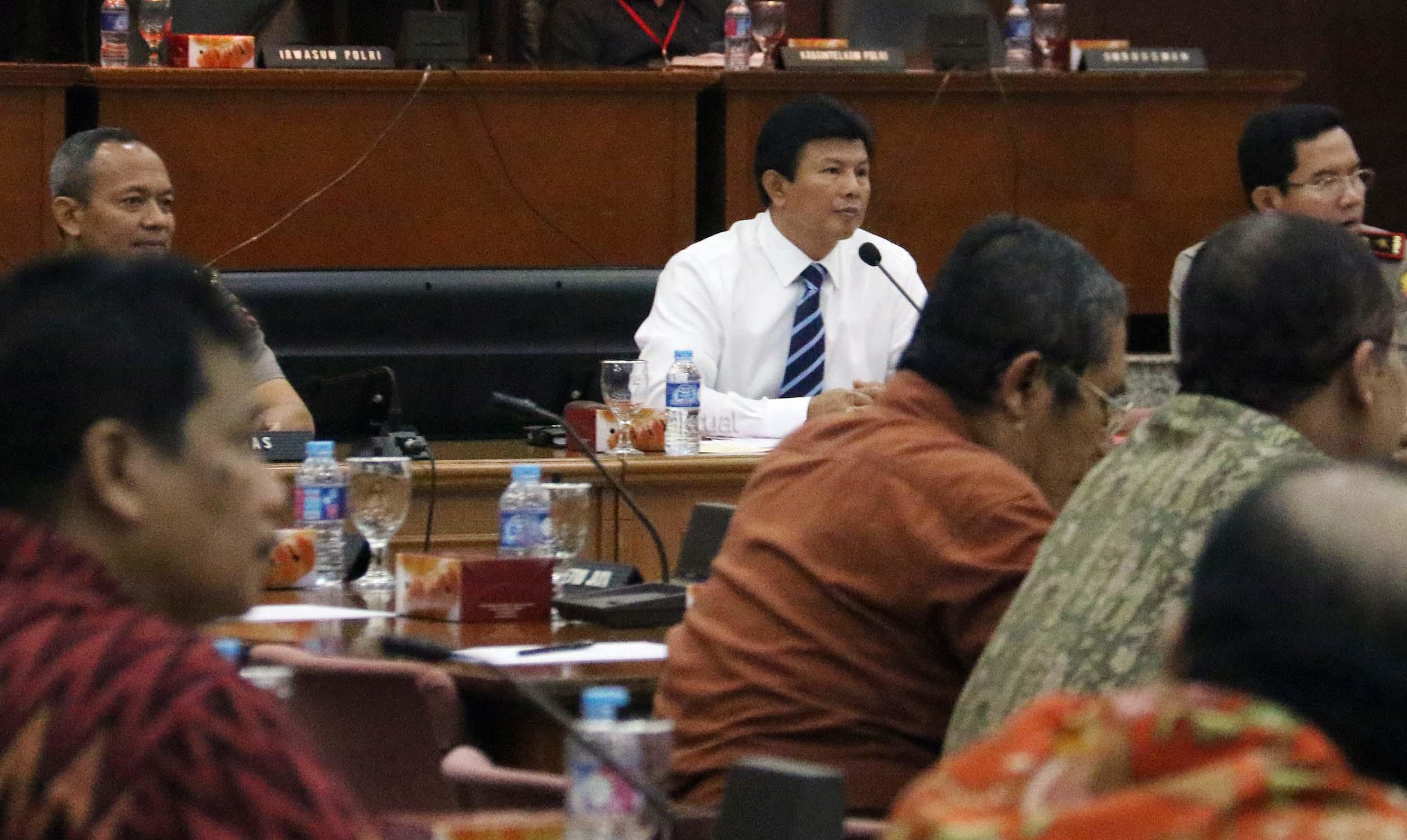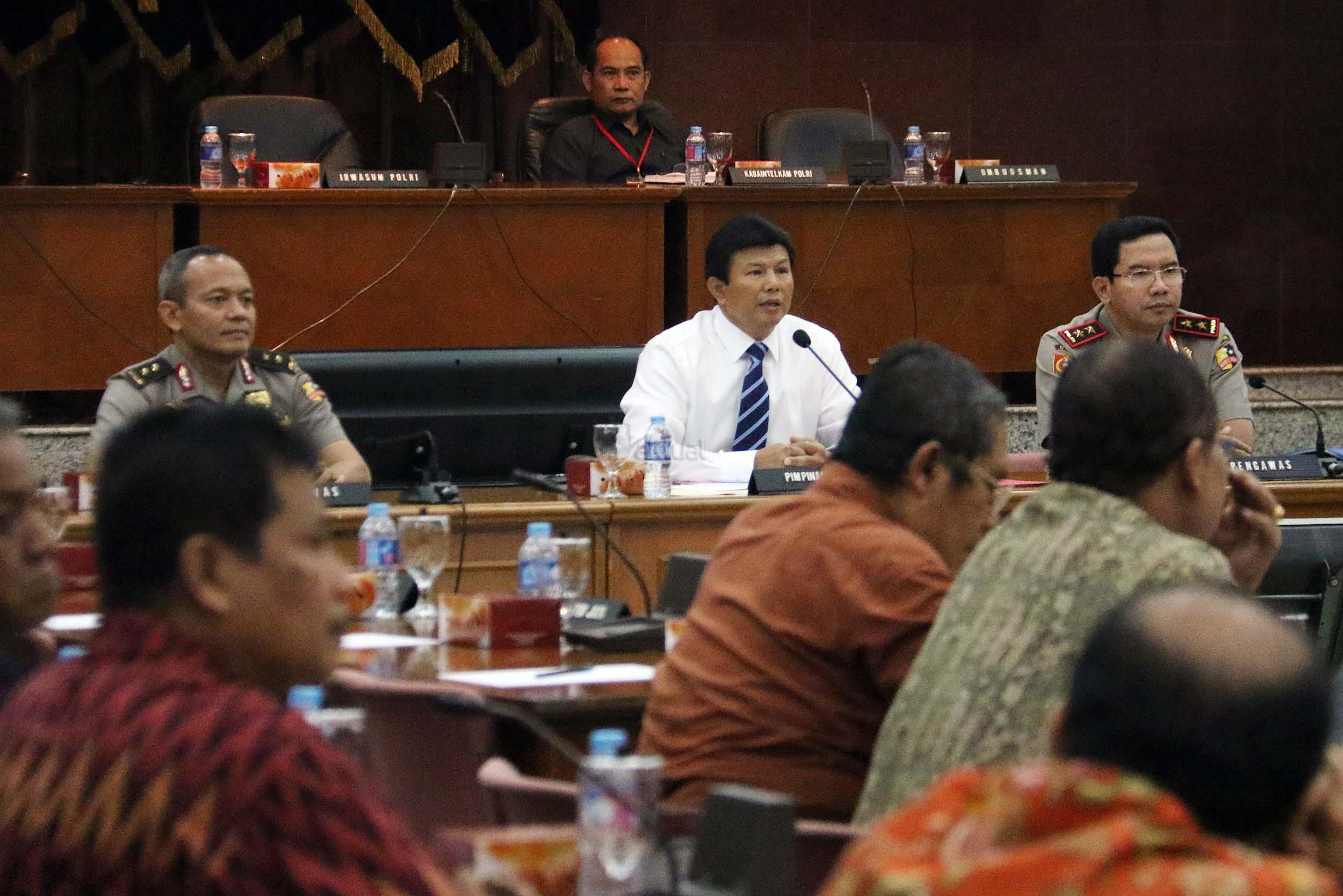 Kabareskrim Polri Komjen Pol Ari Dono (tengah) didampingi pengawas gelar perkara Polri Irjen Pol Sigit (kanan) dan Irjen Pol Arif (kiri) memimpin gelar perkara dugaan kasus penistaan agama di Rupatama Mabes Polri, Jakarta, Selasa (15/11/2016). Gelar perkara dengan terlapor Basuki Tjahaja Purnama atau Ahok terkait kasus dugaan penistaan agama tersebut dilakukan secara terbuka dengan menghadirkan sejumlah ahli baik dari pihak pelapor maupun terlapor.
