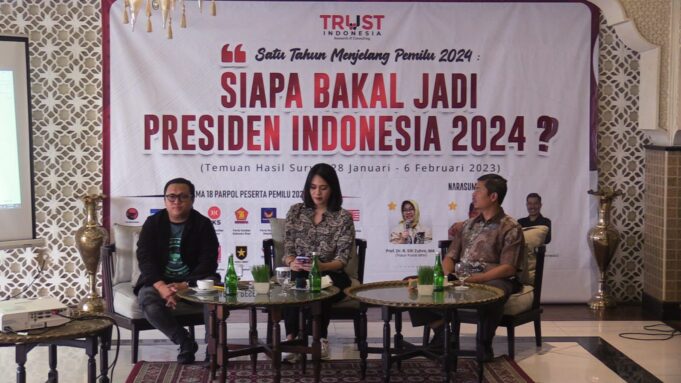 Jakarta, aktual.com – Trust Indonesia melakukan survei nasional yang digelar pada 28 Januari – 6 Februari 2023. Survei Trust melibatkan 2.200 responden dengan tingkat kesalahan sebesar 2,09 persen tersebut.