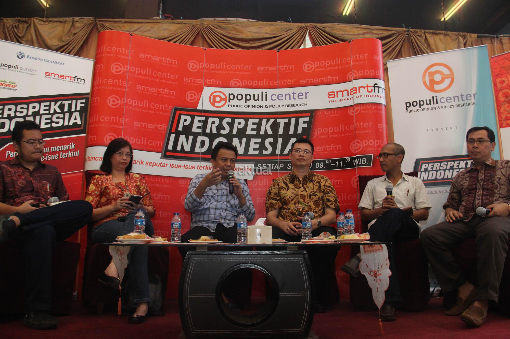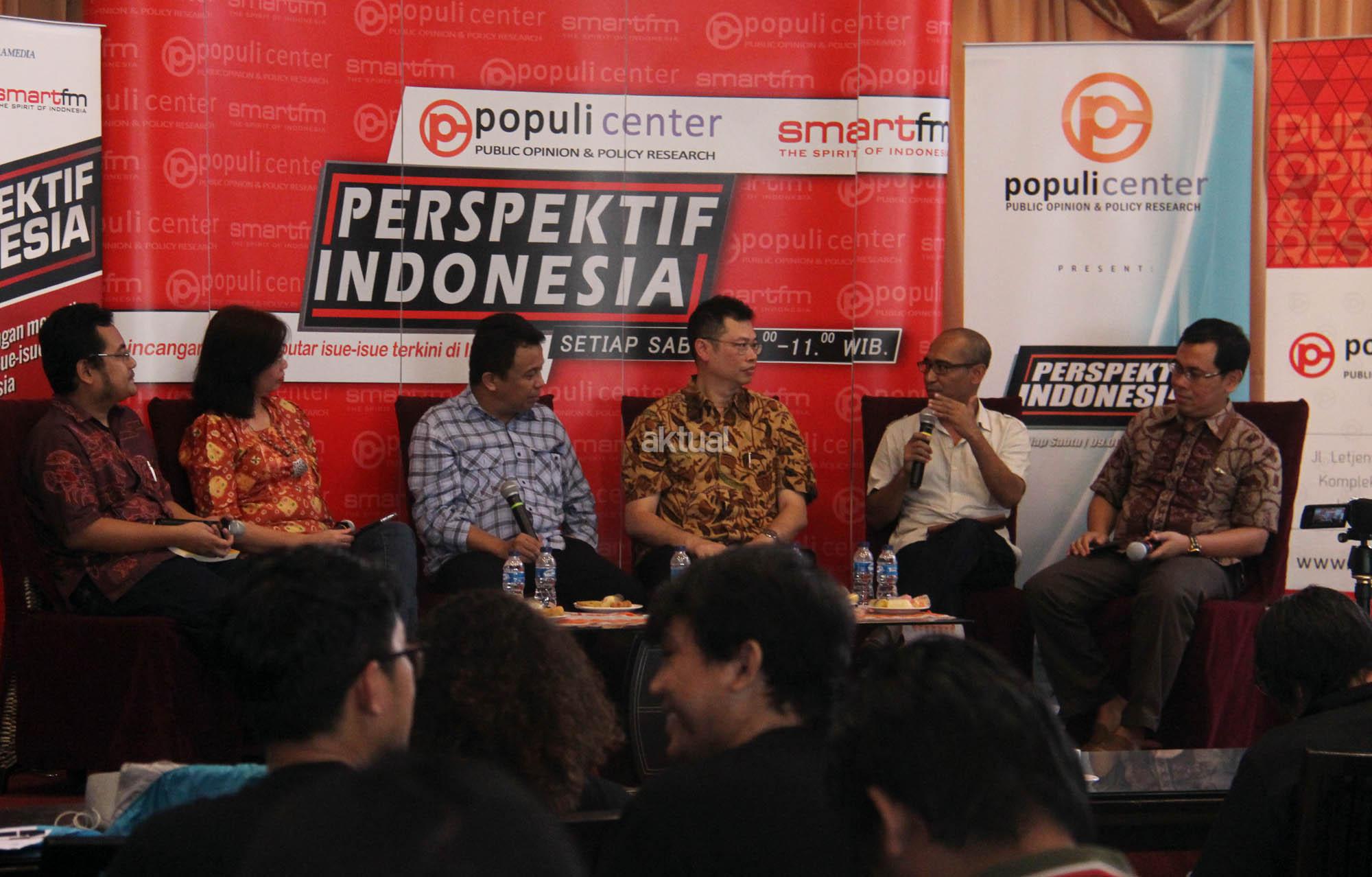 Dekan Fisipol UGM, Dr. Erwan Agus Purwanto, Jurnalis Senior, Mantan Anggota Dewan Pers, Uni Zulfiani Lubis, Center for Indonesia Taxation Analysis/CITA, Yustinus Prastowo, MF, MAP, Center for Regulation, Policy and Governance/CRPG, Mohamad Mova Al Afghani, Redaktur Investigatif TEMPO, Philips Parera, Host Ichan Loulembah melakukan diskusi di Jakarta, Sabtu (9/4/2016). Diskusi ini membahas tema "Gempar Nama dalam Dokumen Panama"?. FOTO: AKTUAL/JUNAIDI MAHBUB