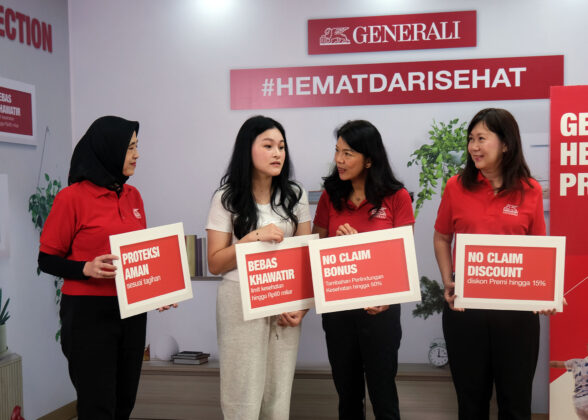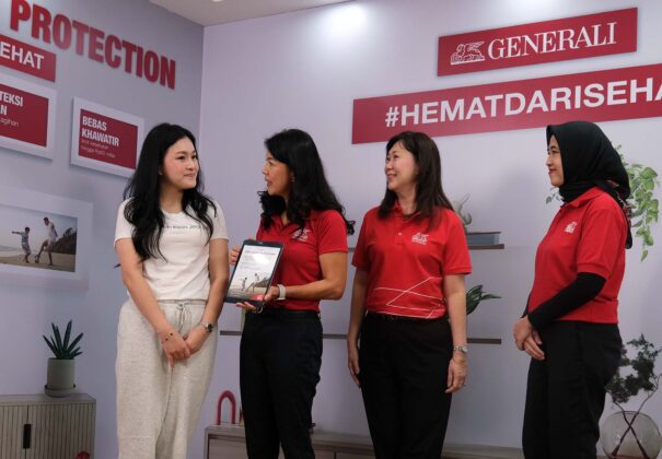 President Director dan Chief Executive Officer PT Asuransi Jiwa Generali Indonesia Rebecca Tan (kedua kanan) didampingi Director Chief Agency Officer Jutany Japit (kedua kanan) dan Operation Group Head Suzwamela Zawawi (kanan) bersama nasabah Lisadea saat acara peluncuran GEN HealthCare Protection di Jakarta, Kamis (11/9).