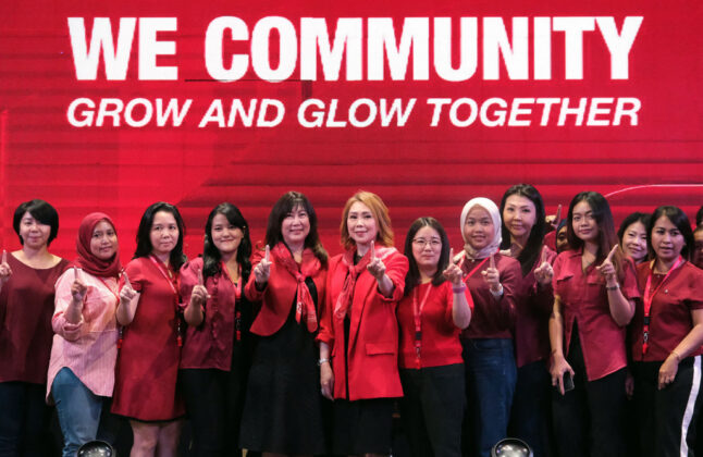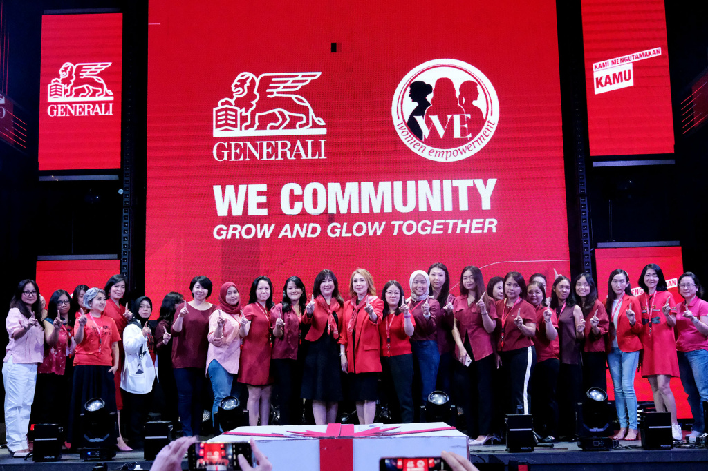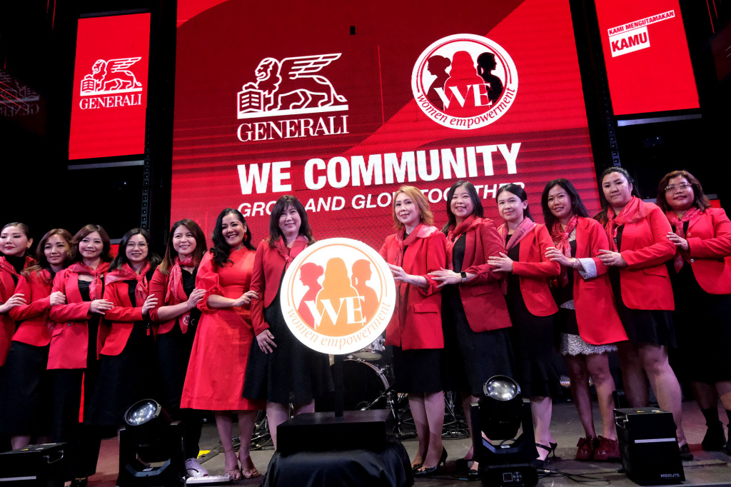 Direktur and Chief Agency Officer Generali Indonesia, Jutany Japit bersama perwakilan tenaga pemasar perempuan, Iriany foto bersama WE Community (Women Empowerment Community), sebuah komunitas pemberdayaan perempuan yang bertujuan untuk membangun produktivitas, mengoptimalkan potensi, serta memperluas kontribusi perempuan Indonesia dalam keluarga dan masyarakat saat peluncuran WE Community atau Women Empowerment Community, di Gading Serpong, Tangerang, Banten, Sabtu (26/7/2025).