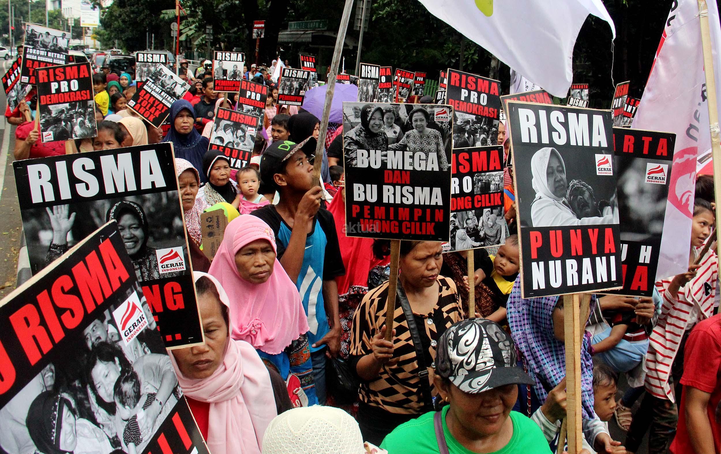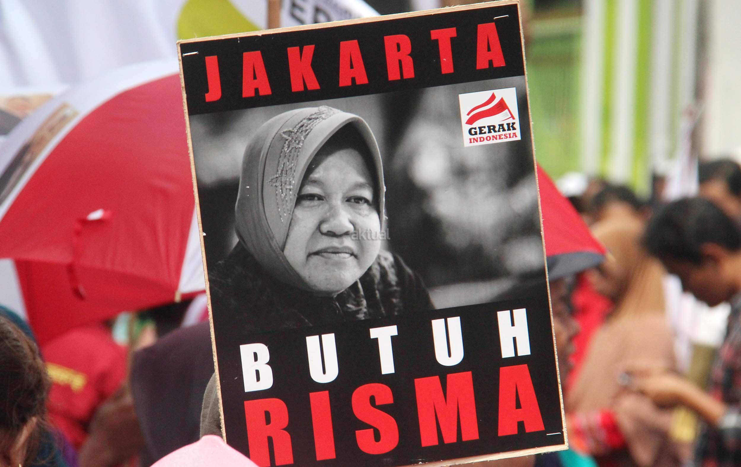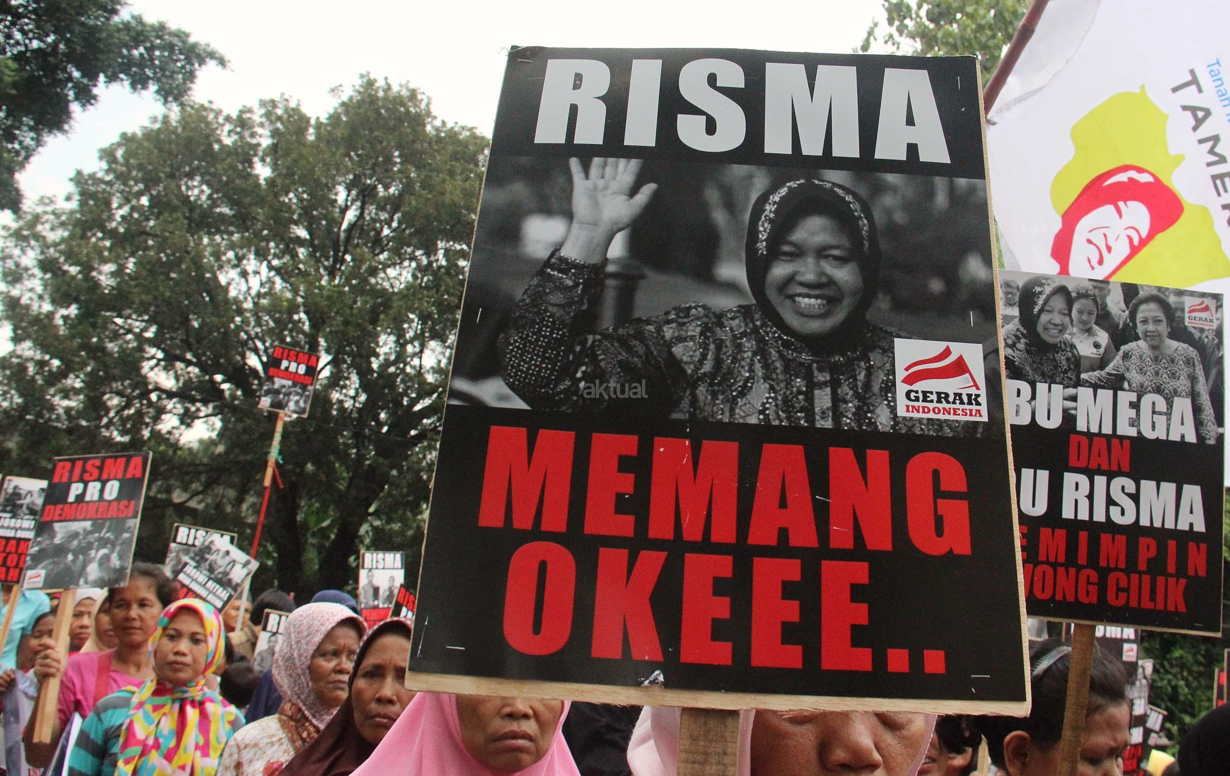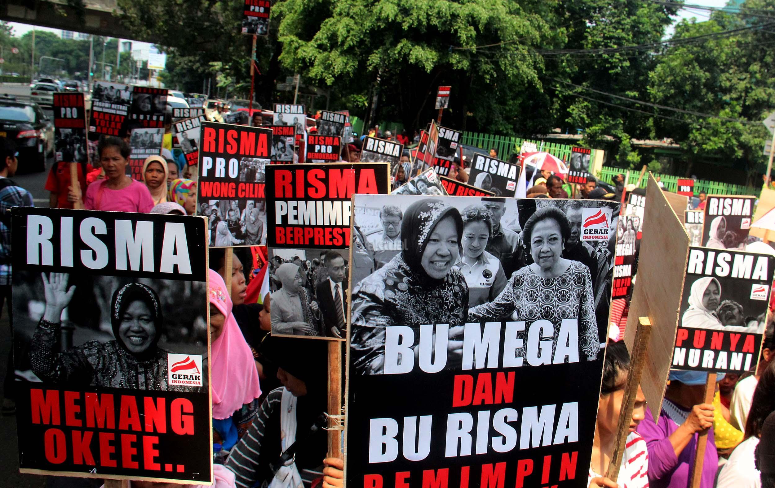 Dalam aksinya Gerak Indonesia mendesak Ketua Umum PDI Perjuangan Megawati Soekarnoputir untuk segera menetapkan Walikota Surabaya Tri Rismaharani sebagai calon Gubenur DKI Jakarta dan tidak memilih Basuki Tjahja Purnama (Ahok) menjadi calon Gubenur DKI Jakarta dari PDI Perjuangan. AKTUAL/MUNZIR