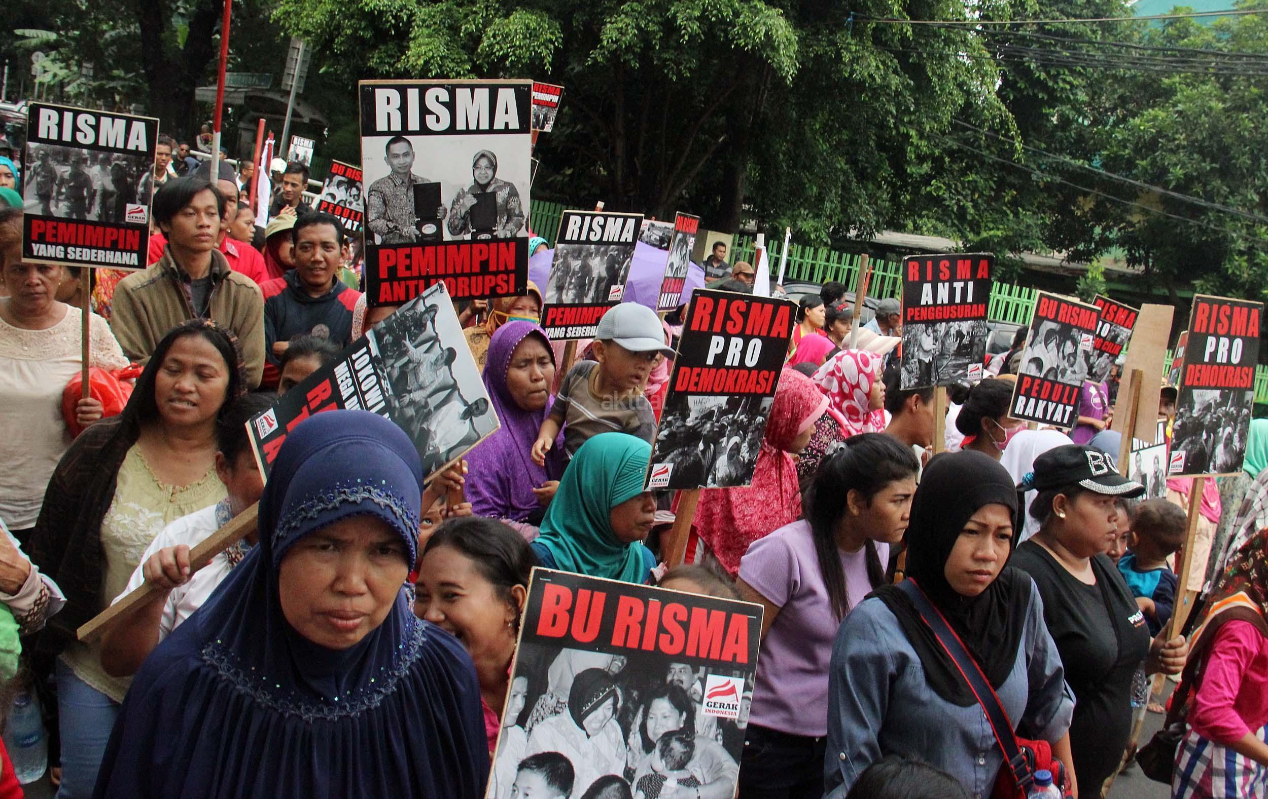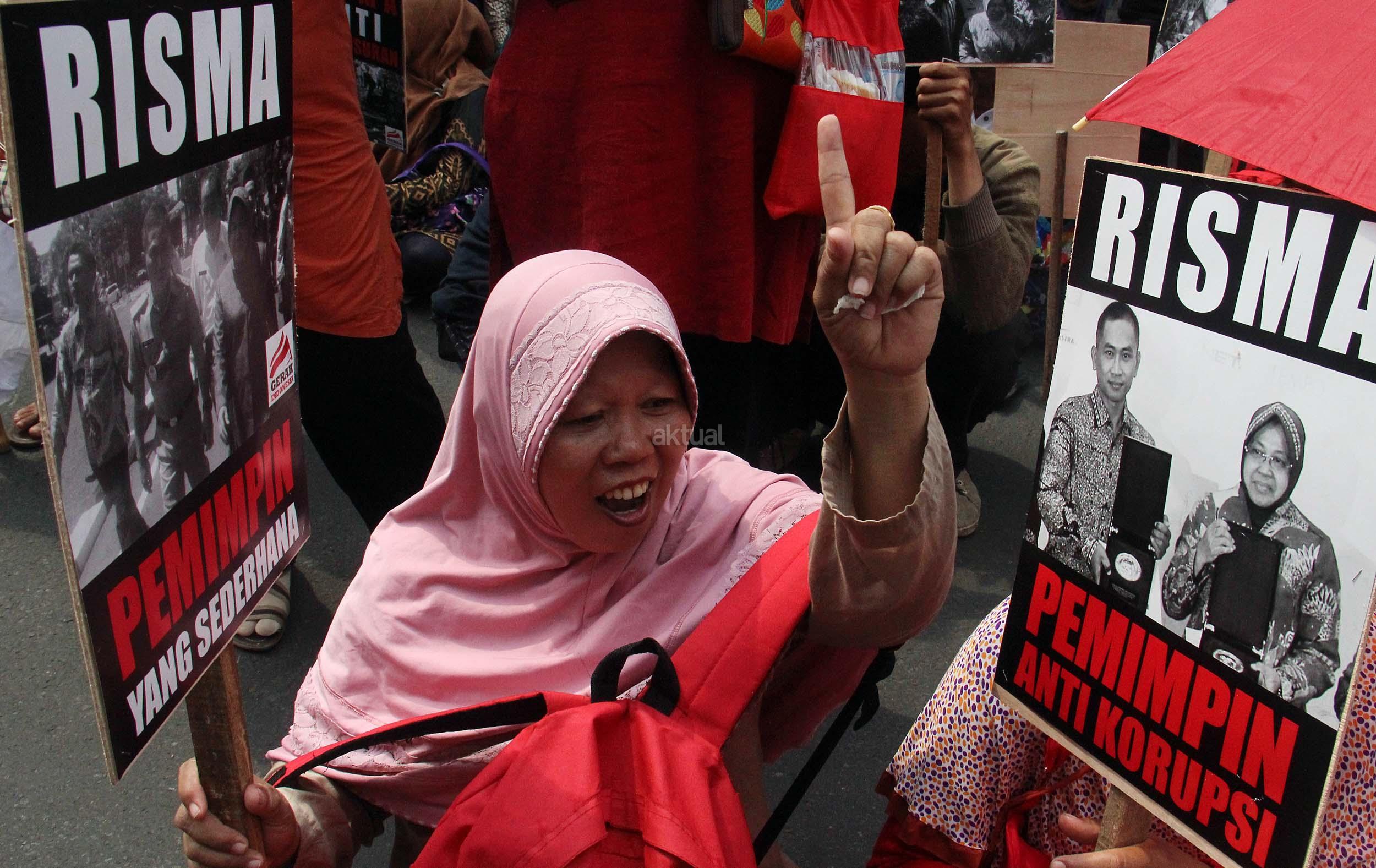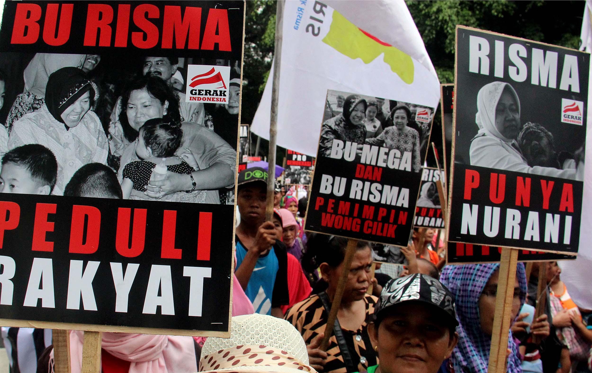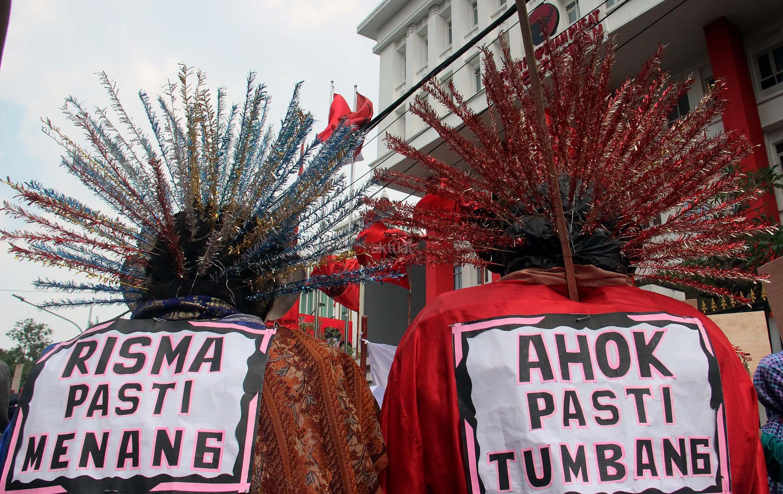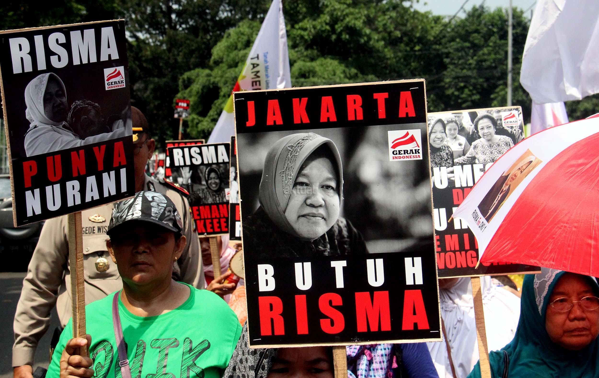 Dalam aksinya Gerak Indonesia mendesak Ketua Umum PDI Perjuangan Megawati Soekarnoputir untuk segera menetapkan Walikota Surabaya Tri Rismaharani sebagai calon Gubenur DKI Jakarta dan tidak memilih Basuki Tjahja Purnama (Ahok) menjadi calon Gubenur DKI Jakarta dari PDI Perjuangan. AKTUAL/MUNZIR