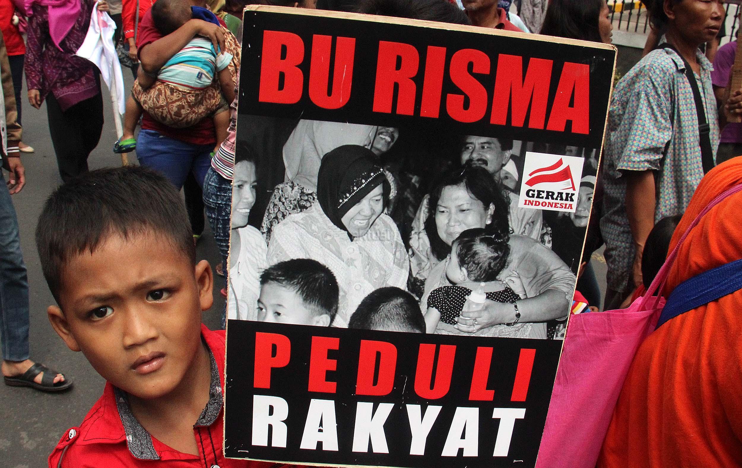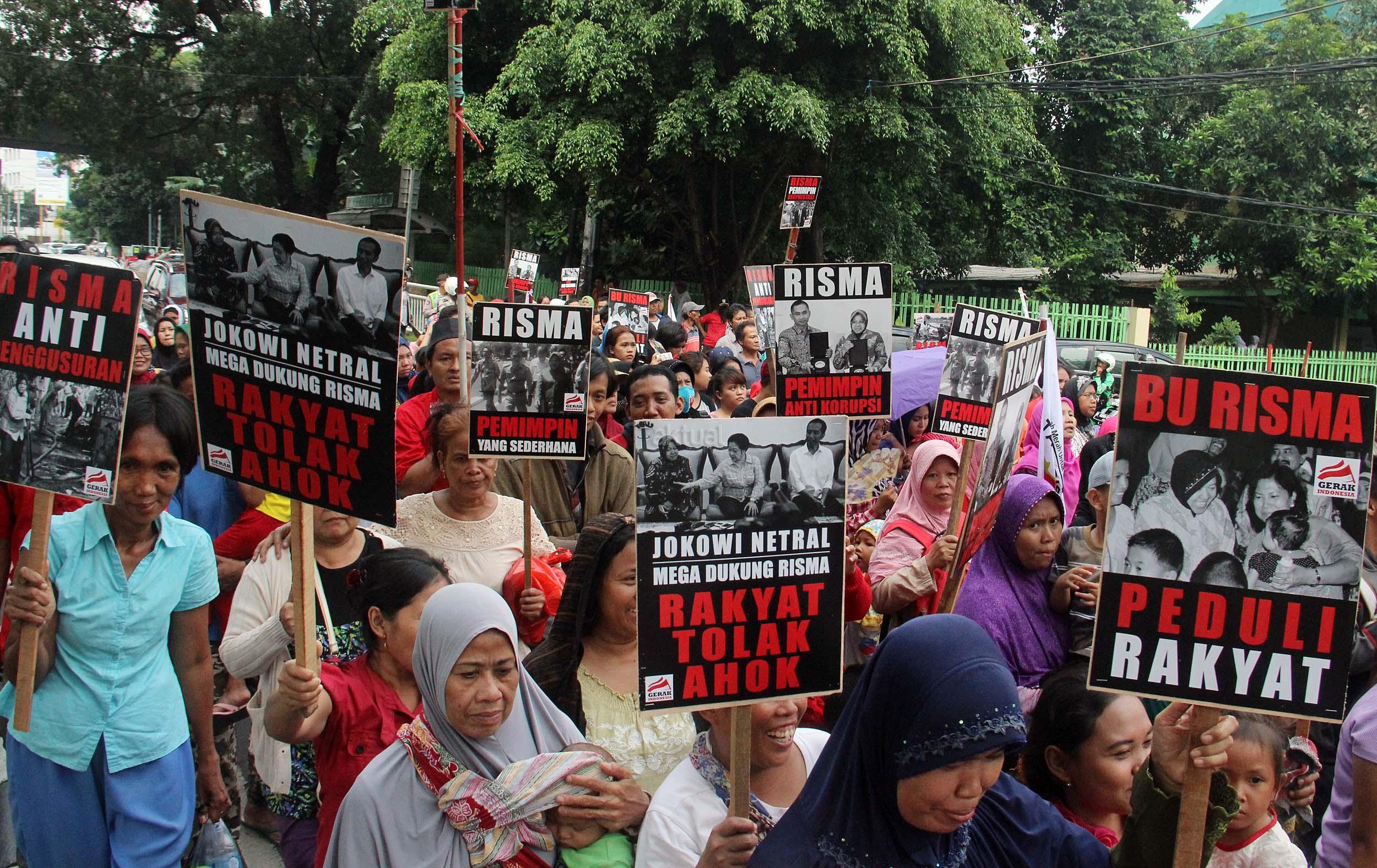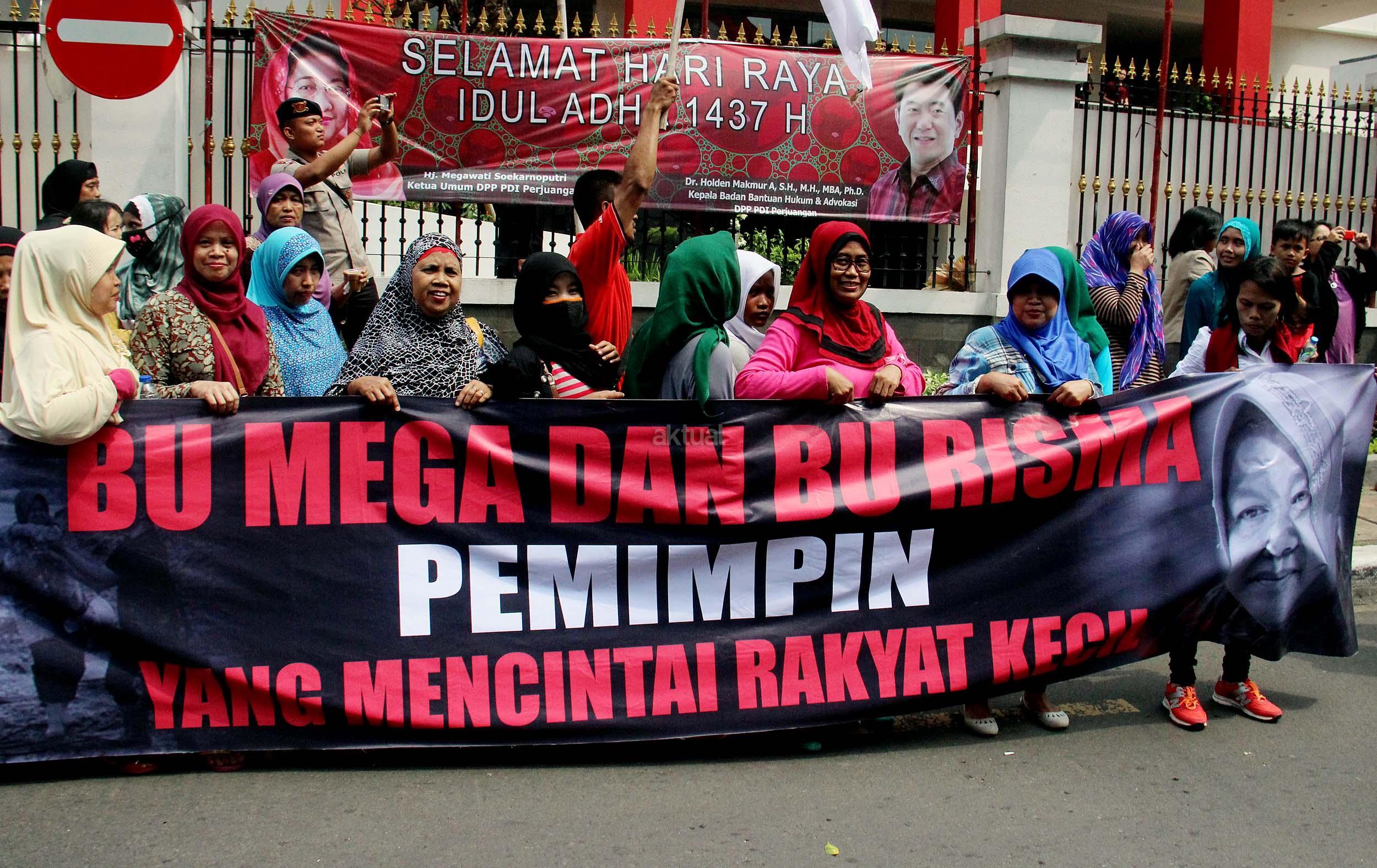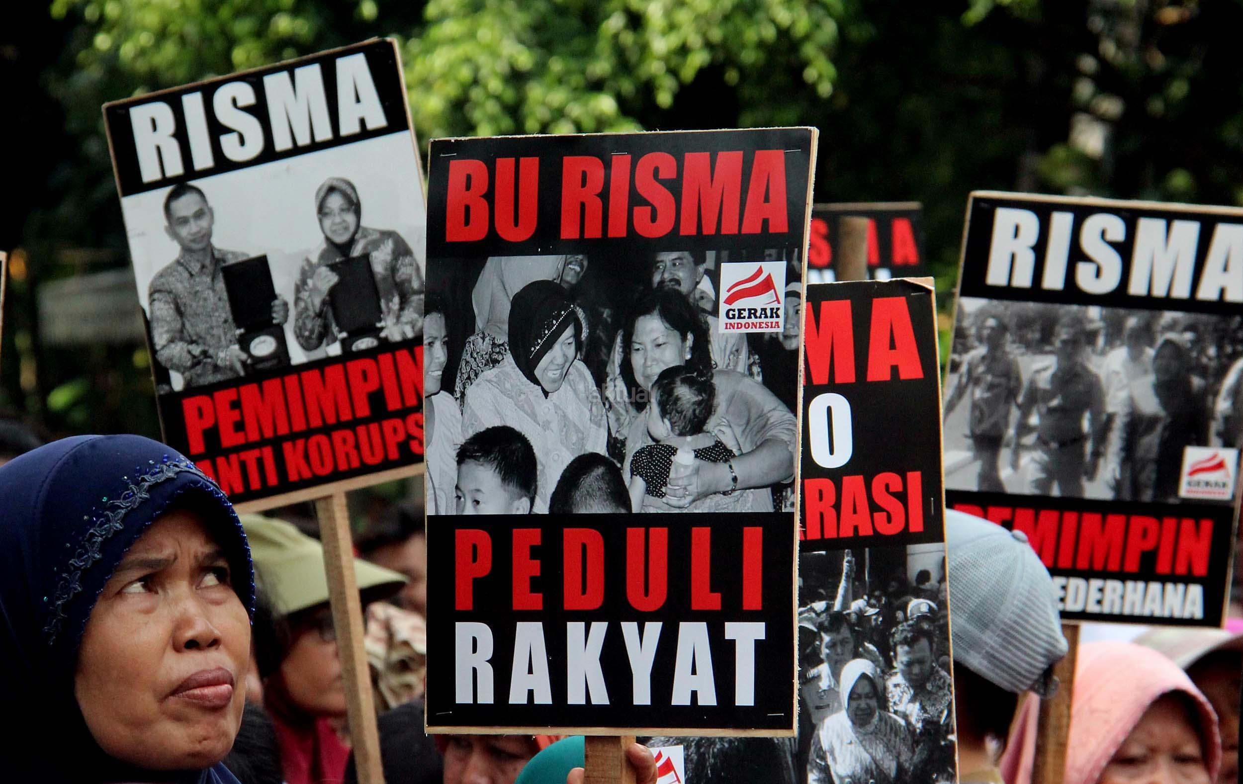 Dalam aksinya Gerak Indonesia mendesak Ketua Umum PDI Perjuangan Megawati Soekarnoputir untuk segera menetapkan Walikota Surabaya Tri Rismaharani sebagai calon Gubenur DKI Jakarta dan tidak memilih Basuki Tjahja Purnama (Ahok) menjadi calon Gubenur DKI Jakarta dari PDI Perjuangan. AKTUAL/MUNZIR