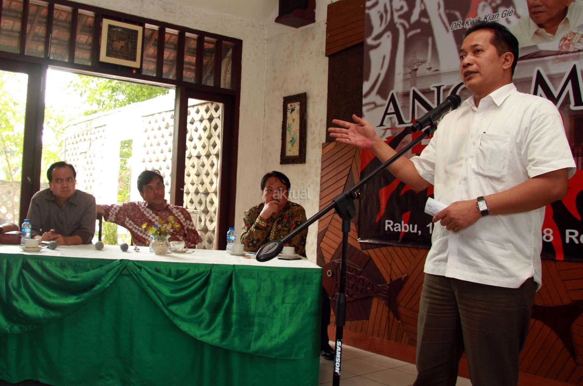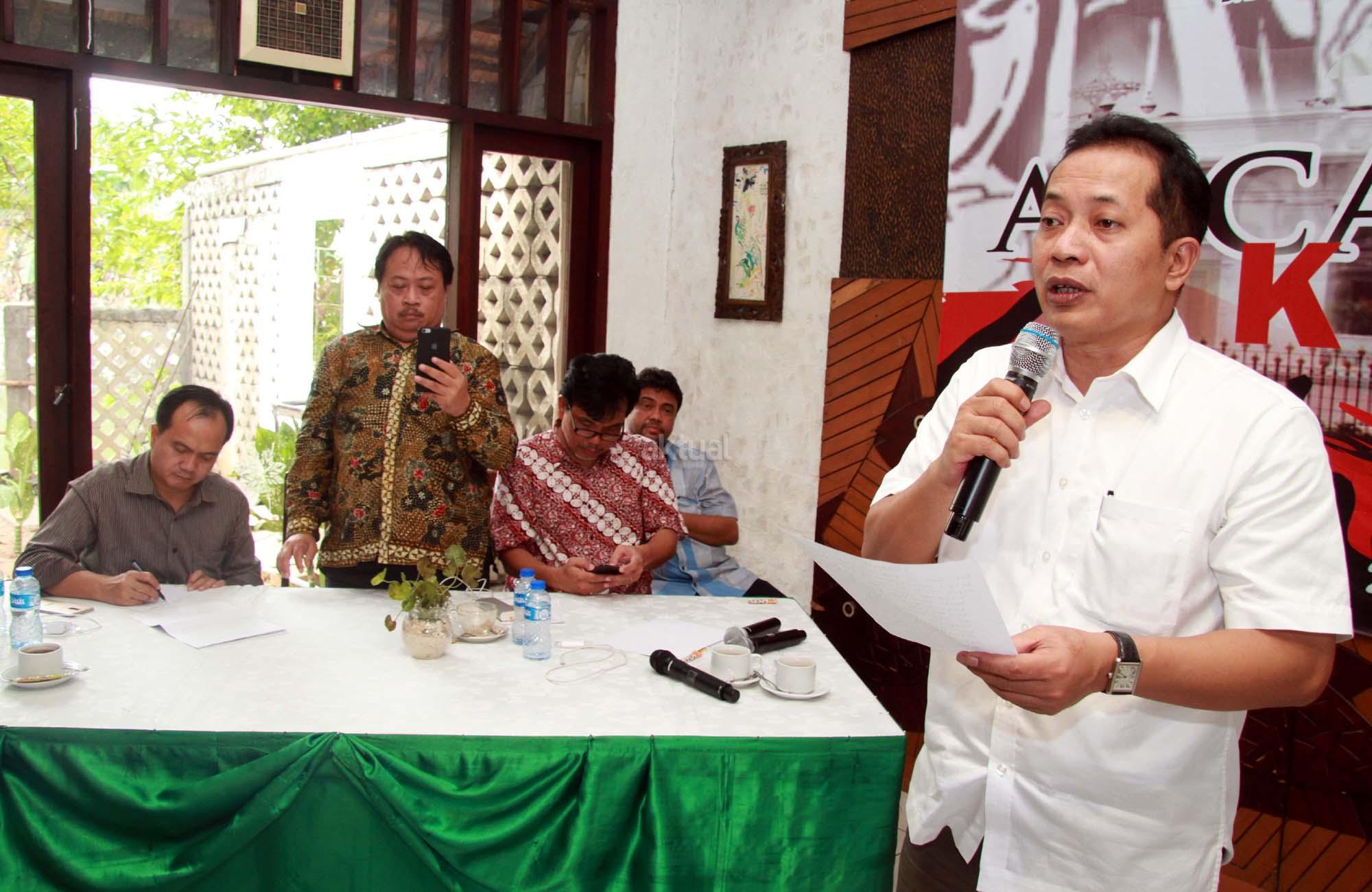 Aktivis Sri Bintang Pamungkas saat berpidato dalam acara Gerakan kritis 100 tokoh dan mantan aktivis mahasiswa di Jakarta, Rabu (1/8/2018). Acara Gerakan Kritis 100 tokoh dan mantan aktivis mahasiswa yang dihadiri ratusan aktivis dan undangan mengambil tema “Ancaman Krisis Ekonomi. AKTUAL/Tino Oktaviano