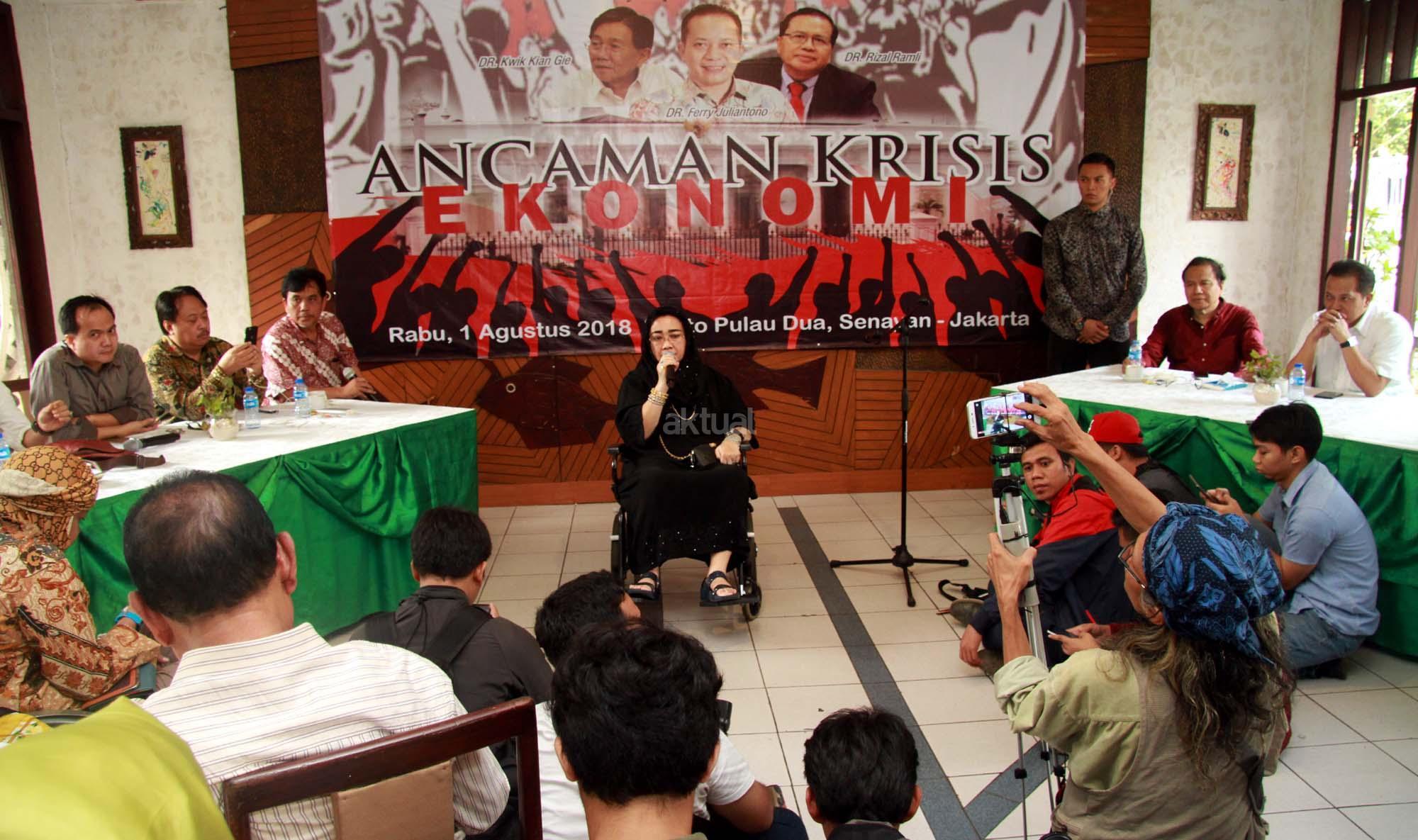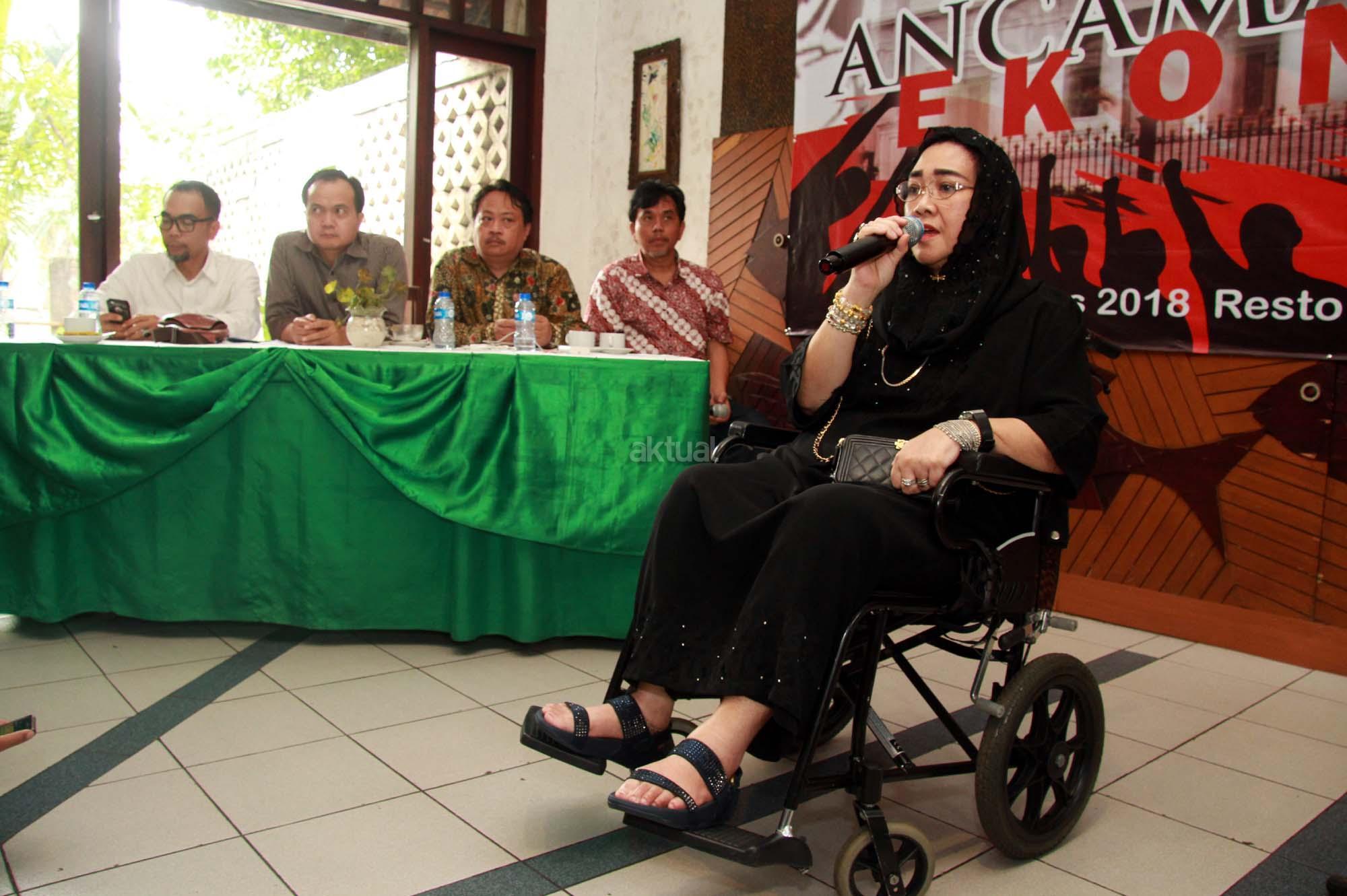 Politisi Gerindra Rachmawati Soekarnoputri saat berpidato dalam acara Gerakan kritis 100 tokoh dan mantan aktivis mahasiswa di Jakarta, Rabu (1/8/2018). Acara Gerakan Kritis 100 tokoh dan mantan aktivis mahasiswa yang dihadiri ratusan aktivis dan undangan mengambil tema “Ancaman Krisis Ekonomi. AKTUAL/Tino Oktaviano