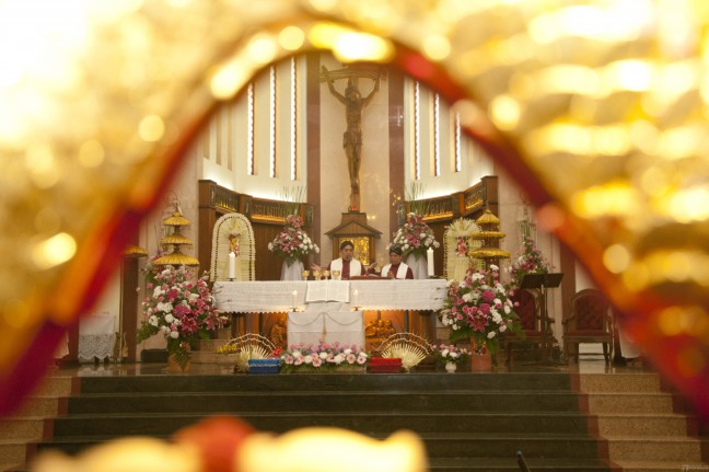 Jakarta, Aktual.co —  Gereja Theresia Jakarta Pusat menghadirkan nuansa tradisional dengan menggunakan batik pada Natal 2014.
