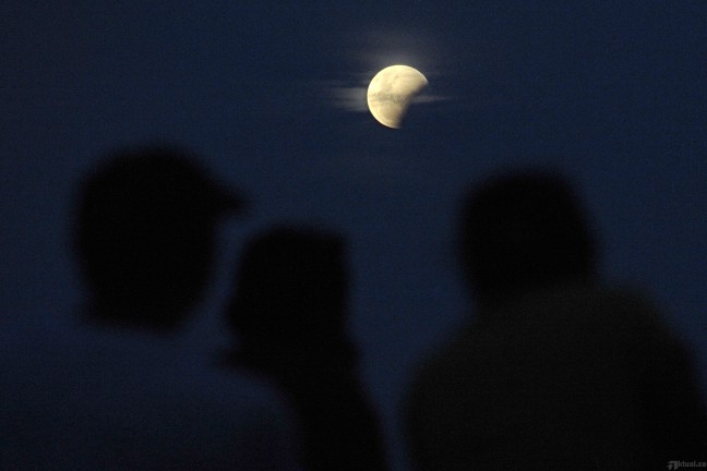 Jakarta, Aktual.co — Sejumlah orang menyaksikan fenomena alam gerhana bulan berwarna kemerahan di sejumlah titik di Kota Makassar, Sulawesi Selatan dan sekitarnya, Sabtu malam (4/4).