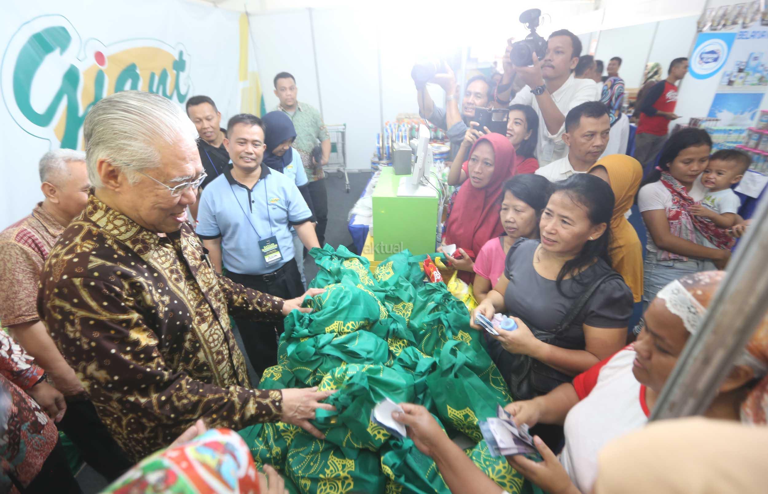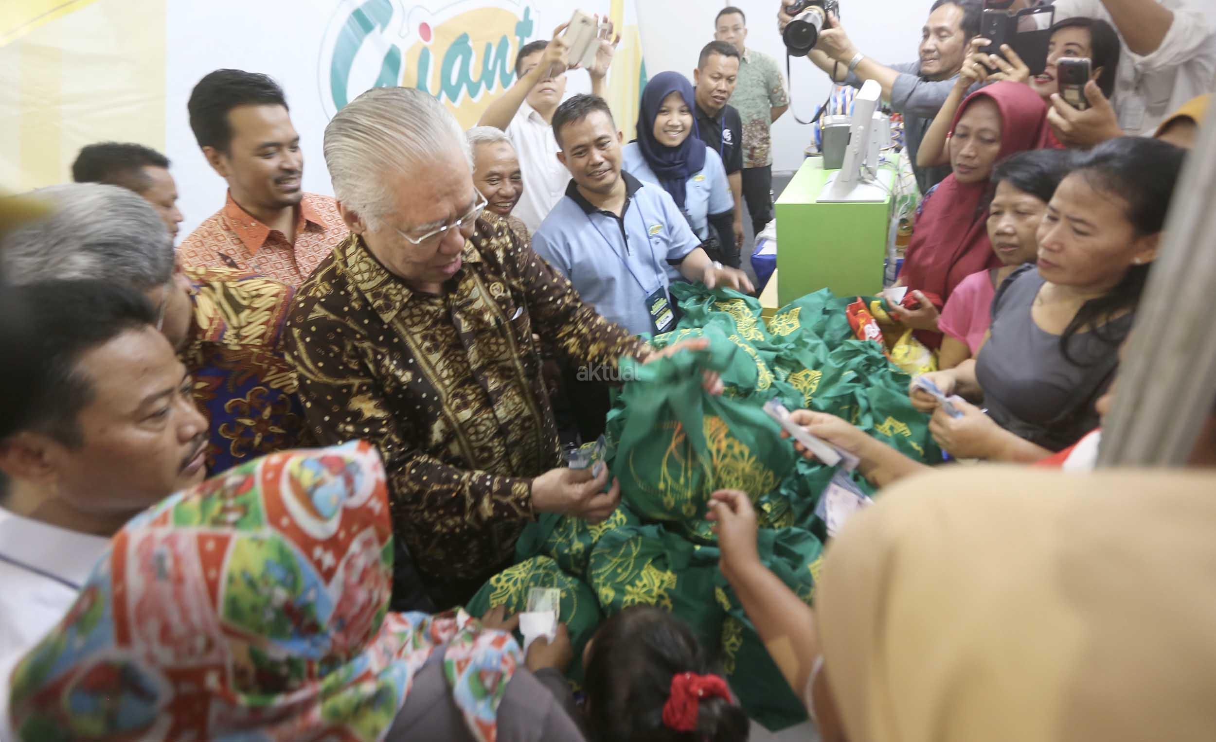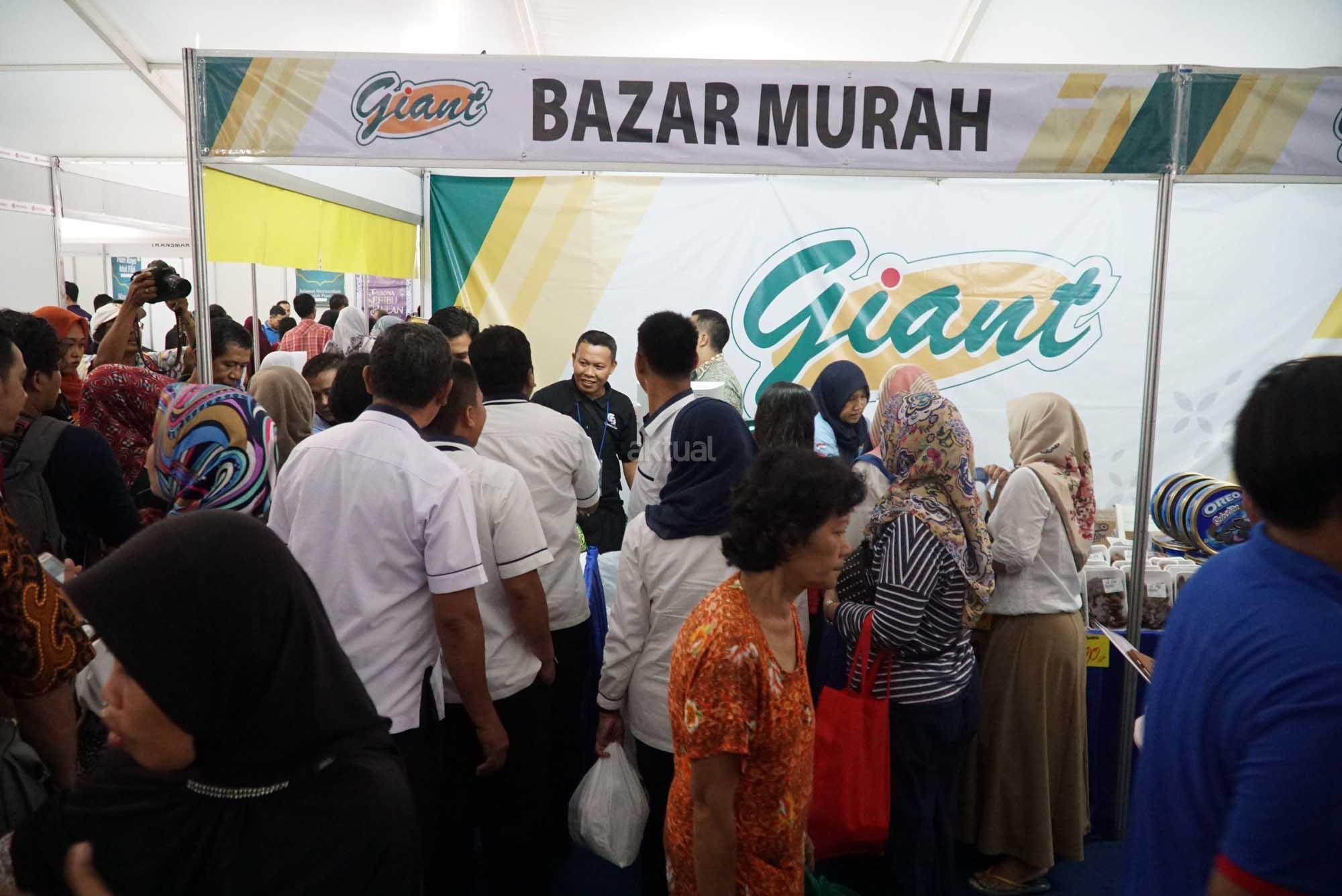 penjualan perdana Paket Sembako Murah Giant pada acara Bazar Ramadan 2018 di Kementerian Perdagangan, Jakarta Pusat. Giant menyediakan 2000 paket sembako murah seharga Rp 20.000 selama bazar berlangsung dari tanggal 4-7 Juni 2018. AKTUAL/Eko S Hilman
