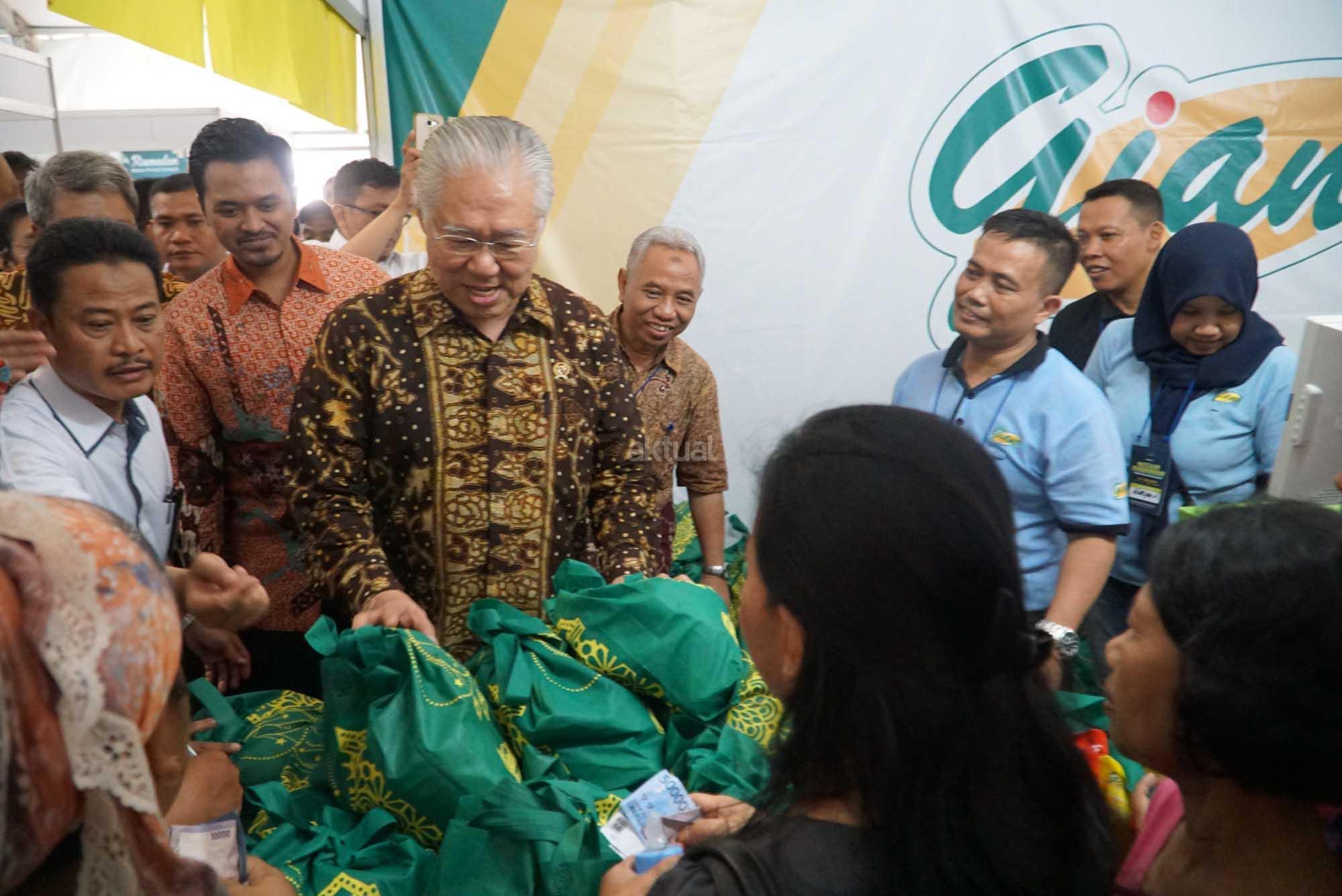 Menteri Perdagangan RI, Enggartiasto Lukito sedang melakukan penjualan perdana Paket Sembako Murah Giant pada acara Bazar Ramadan 2018 di Kementerian Perdagangan, Jakarta Pusat. Giant menyediakan 2000 paket sembako murah seharga Rp 20.000 selama bazar berlangsung dari tanggal 4-7 Juni 2018. AKTUAL/Eko S Hilman
