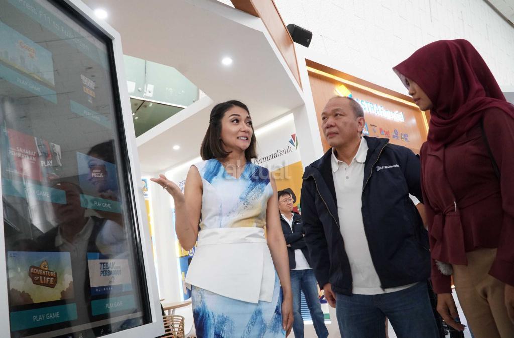 Usher Astra Financial GIIAS Surabaya 2019 menjelaskan cara memainkan permainan di booth Astra Financial kepada Direktur Astra International yang juga Director in charge Astra Financial Suparno Djasmin (tengah) dan pengunjung di Booth Astra Financial di Gaikindo Indonesia International Auto Show (GIIAS) 2019, Surabaya, Jawa Timur, Jumat (29/3). Untuk kedua kalinya Astra Financial menjadi sponsor utama GIIAS yang pada tahun ini gelaran pertamanya diadakan di Grand City Convex Surabaya, 29 Maret – 7 April 2019. AKTUAL/STR-Eko S Hilman