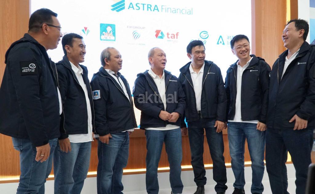 (dari kiri ke kanan) Project Director GIIAS Astra Financial Gunawan Salim, Chief Astra Financial Adi Sepiarso, CEO Astra Credit Companies Siswadi, Director In Charge Astra Financial Suparno Djasmin, CEO FIFGROUP Margono Tanuwijaya, CEO Asuransi Astra Rudy Chen, Presiden Direktur Toyota Astra Financial Services Agus Prayitno berbincang saat peresmian program menarik di Booth Astra Financial di Gaikindo Indonesia International Auto Show (GIIAS) 2019, Surabaya, Jawa Timur, Jumat (29/3). AKTUAL/STR-Eko S Hilman
