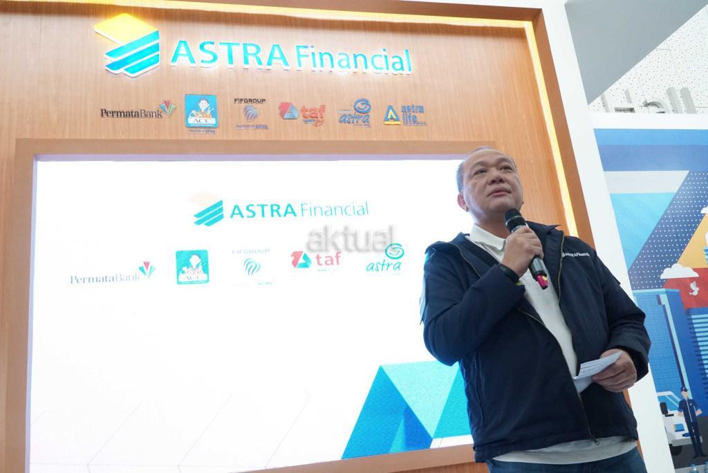 Direktur Astra International yang juga Director in charge Astra Financial Suparno Djasmin menyampikan sambutan saat pembukaan di Booth Astra Financial di Gaikindo Indonesia International Auto Show (GIIAS) 2019, Surabaya, Jawa Timur, Jumat (29/3). Untuk kedua kalinya Astra Financial menjadi sponsor utama GIIAS yang pada tahun ini gelaran pertamanya diadakan di Grand City Convex Surabaya, 29 Maret – 7 April 2019. AKTUAL/STR-Eko S Hilman