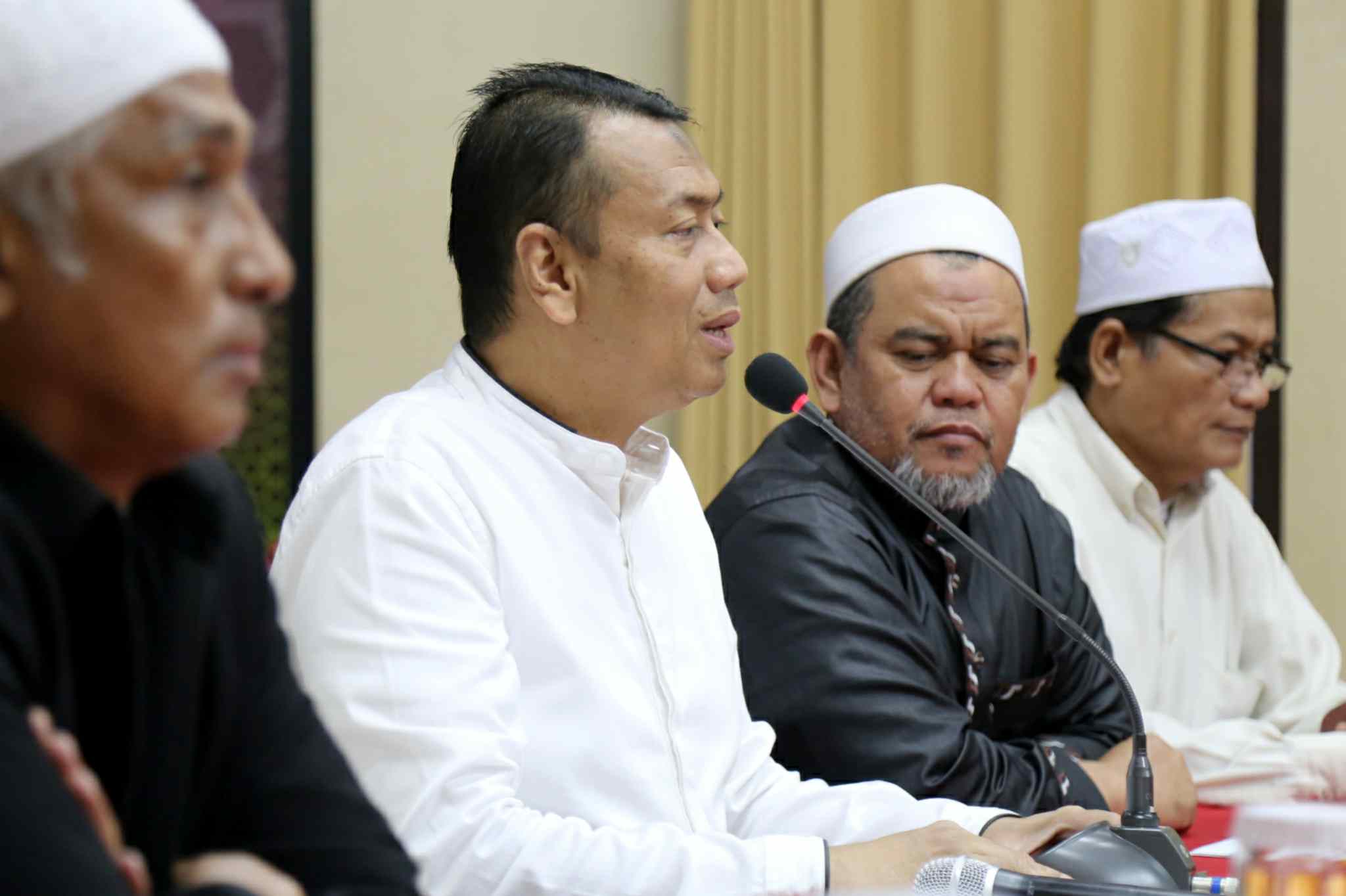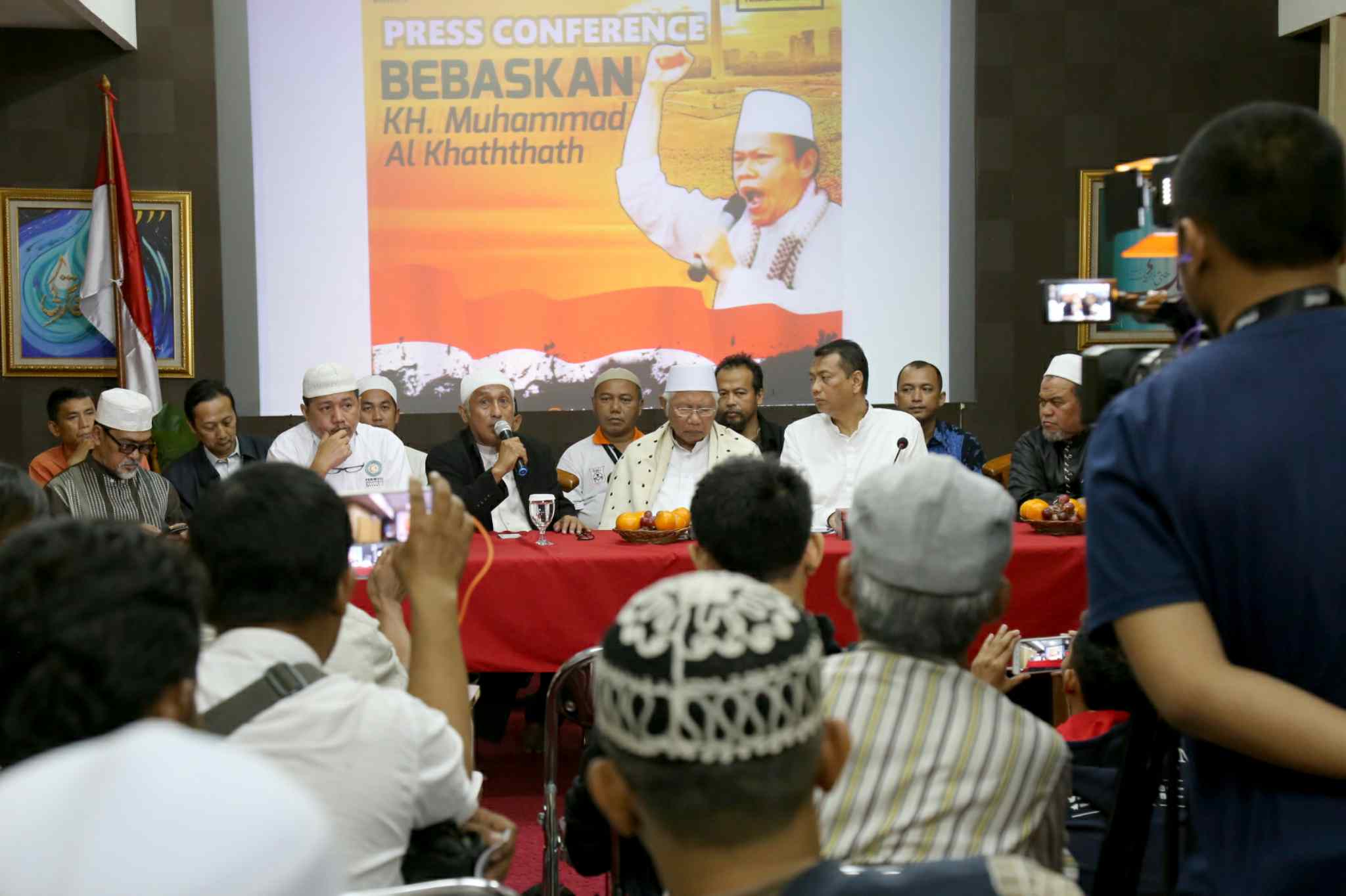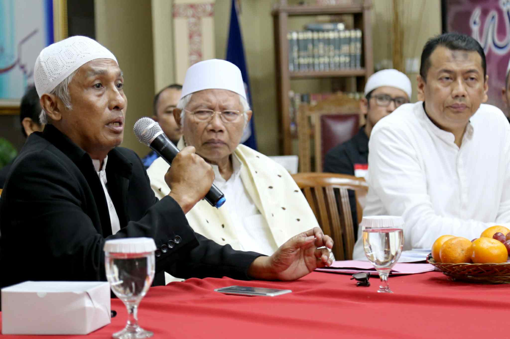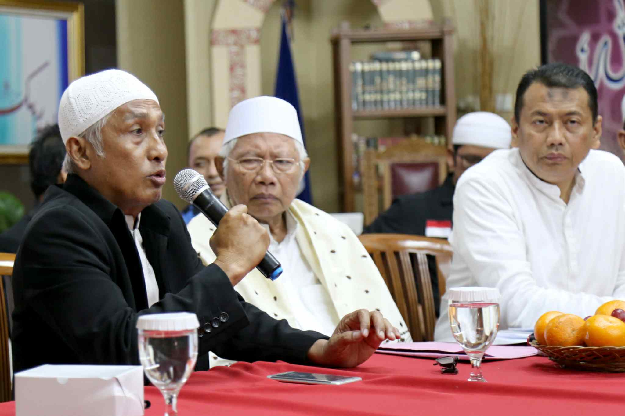 Kuasa Hukum KH Muhammad Al Khaththath, Kapitra didampingi Pembina GNPF MUI Jakarta, KH Abdul Rasyid dan Anggota Tim Pengacara Muslim (TPM), Achmad Michdan saat konferensi pers “Bebaskan KH Muhammad Al Khaththath” di AQL Islamic Center Jalan Tebet Utara, Jakarta Selatan, Senin (3/4). Pimpinan GNPF MUI, Pimpinan Ormas dan Tokoh Masyarakat menyerukan aparat kepolisian agar membebaskan KH Muhammad Al Khaththath dari tahanan dan tuduhan makar. Karena selaku pimpinan aksi 313 sekaligus Sekjen FUI dengan tuduhan makar merupakan bentuk penggunaan hukum instrumen of power, yang sama sekali tidak berkeadilan. AKTUAL/Tino Oktaviano