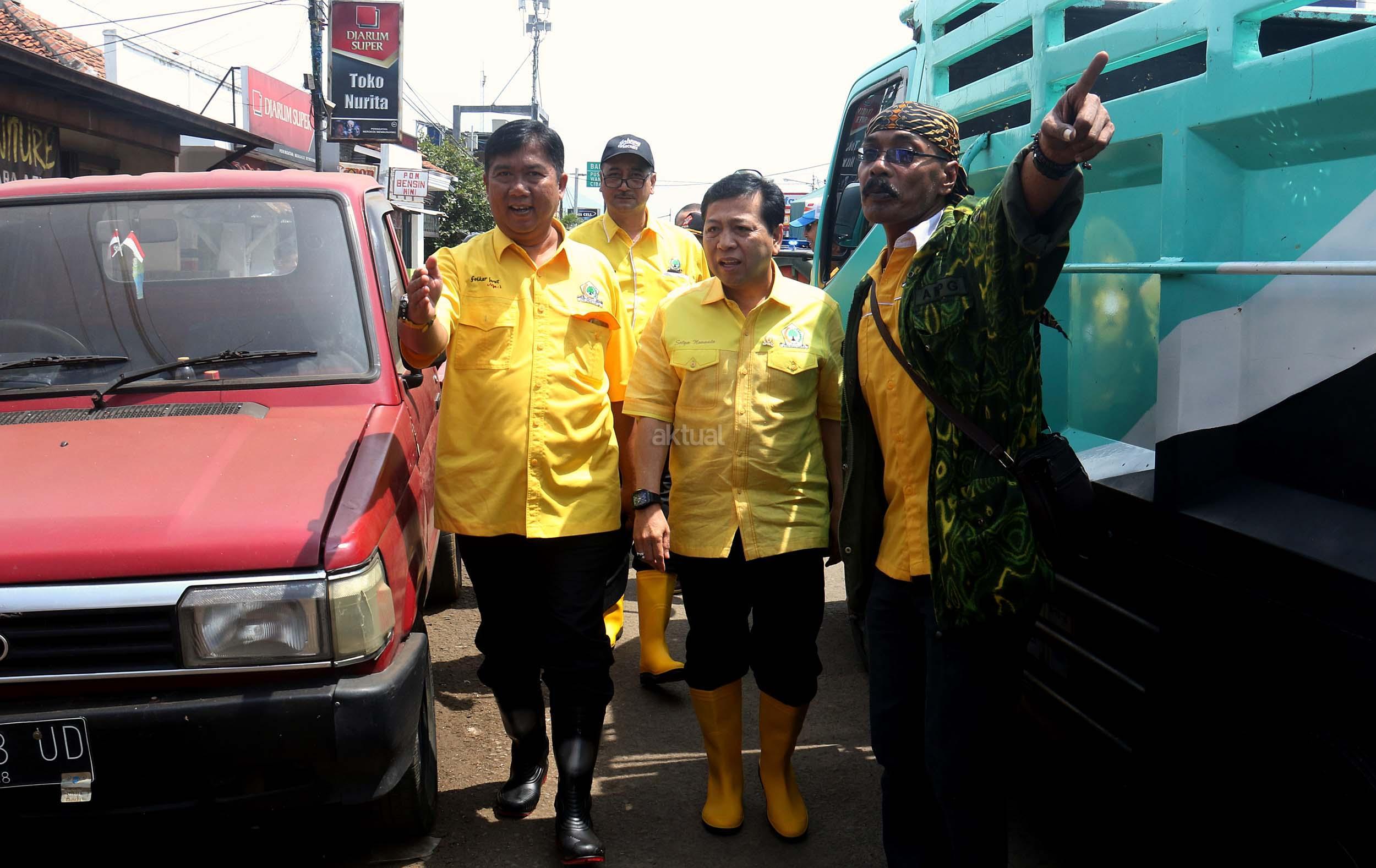 Kedatangan Ketua Umum Partai Golkar beserta rombongan pengurus DPP Partai Golkar, Ikatan Istri Partai Golkar dan AMPG untuk memberikan bantuan dari Ikatan Istri Partai Golkar,berupa pompa untuk menyedot air kotor, selimut, susu bayi, pakaian perempuan dan anak-anak. AKTUAL/MUNZIR
