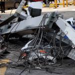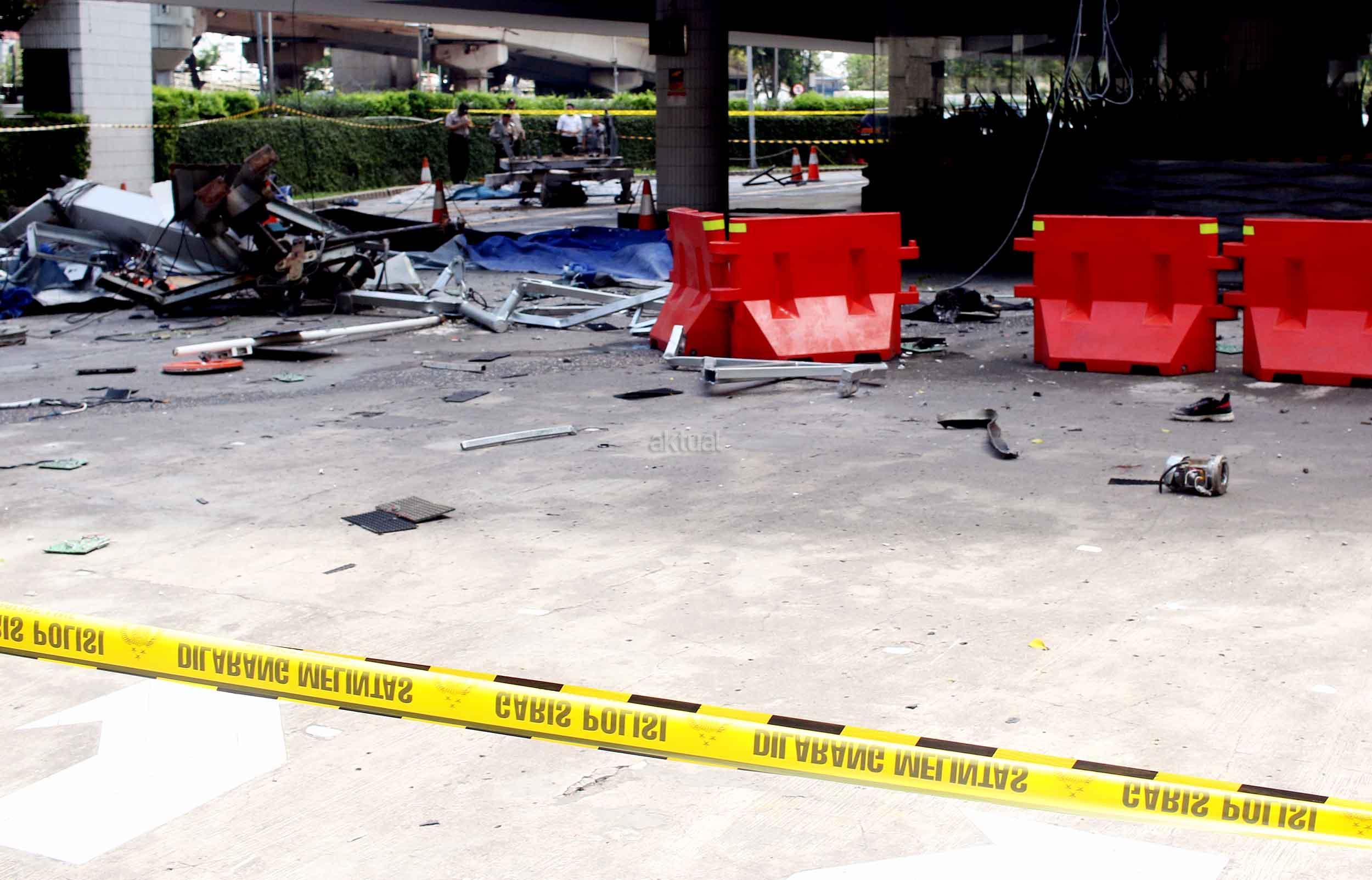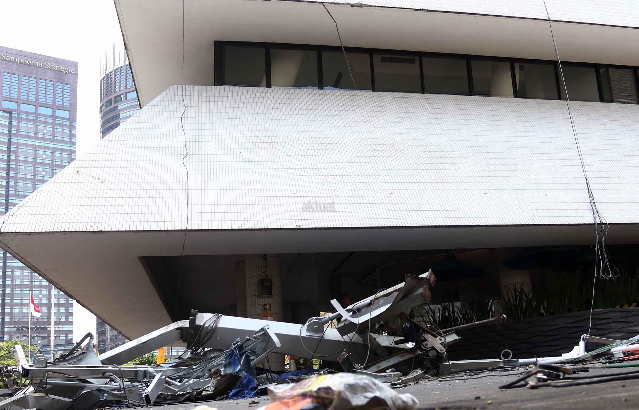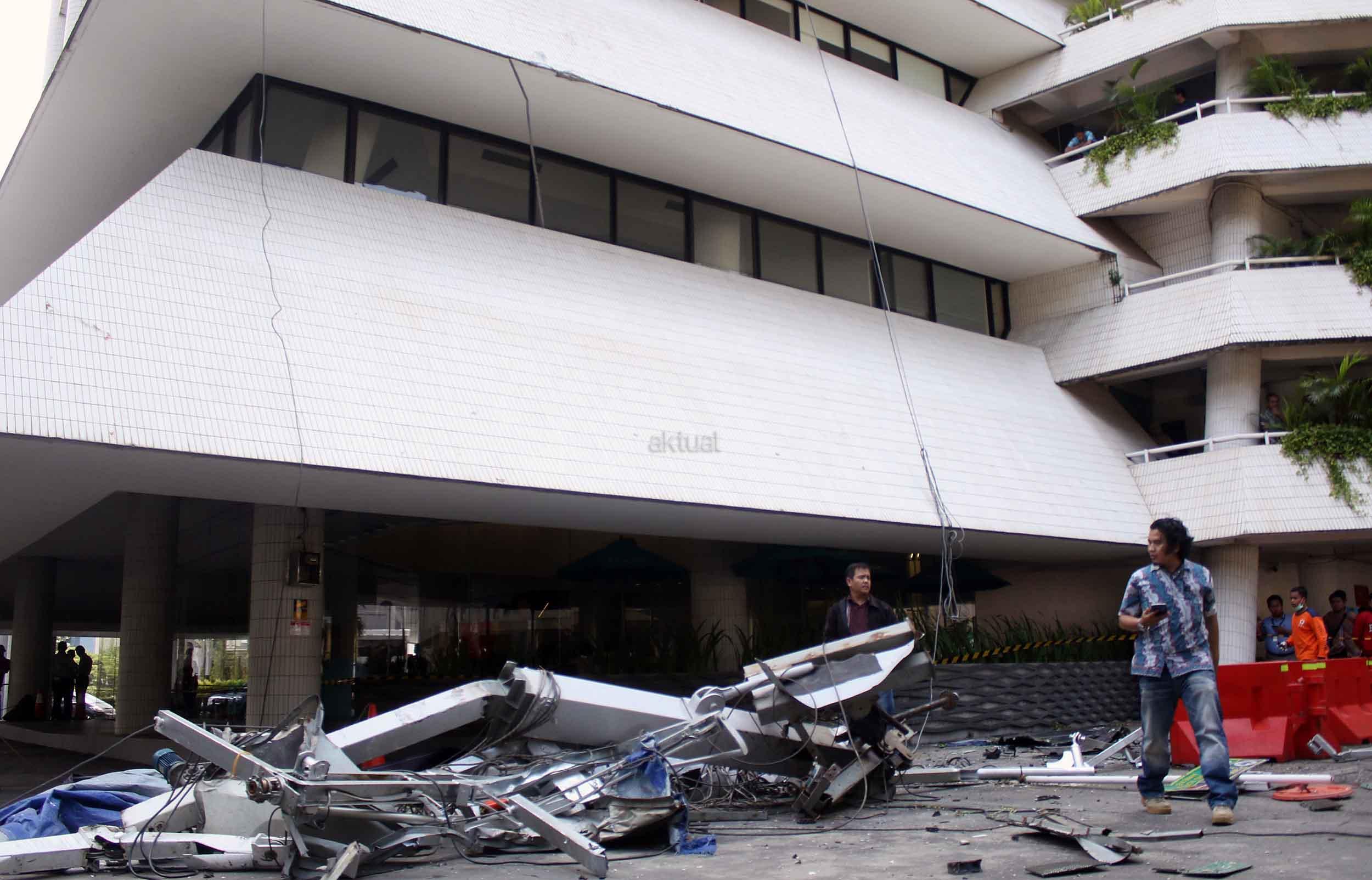 Kereta gantung (gondola) jatuh dari lantai 23 Gedung Intiland Tower Sudirman dan seorang operator meninggal dunia yang diduga gondola jatuh karena tali terputus.