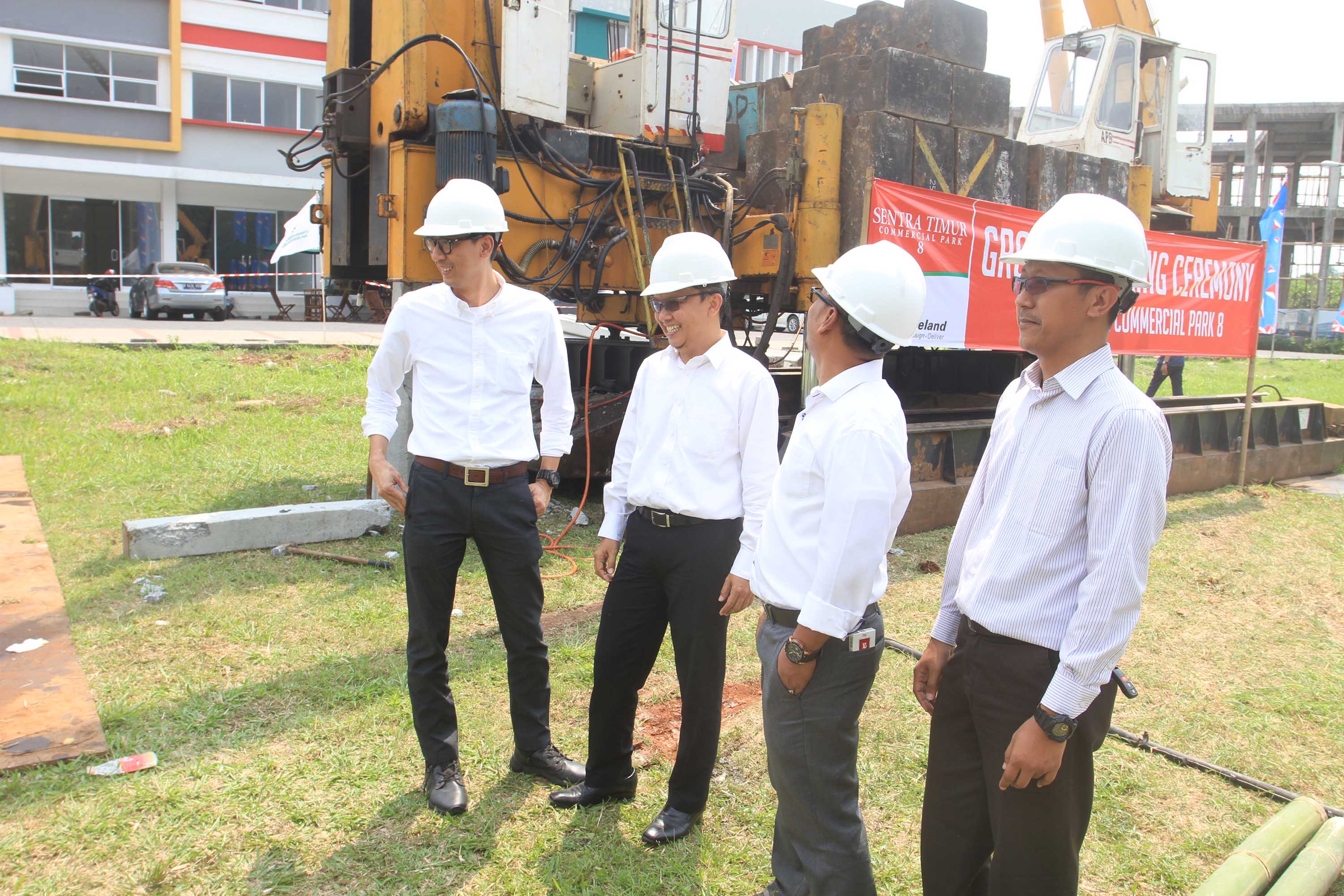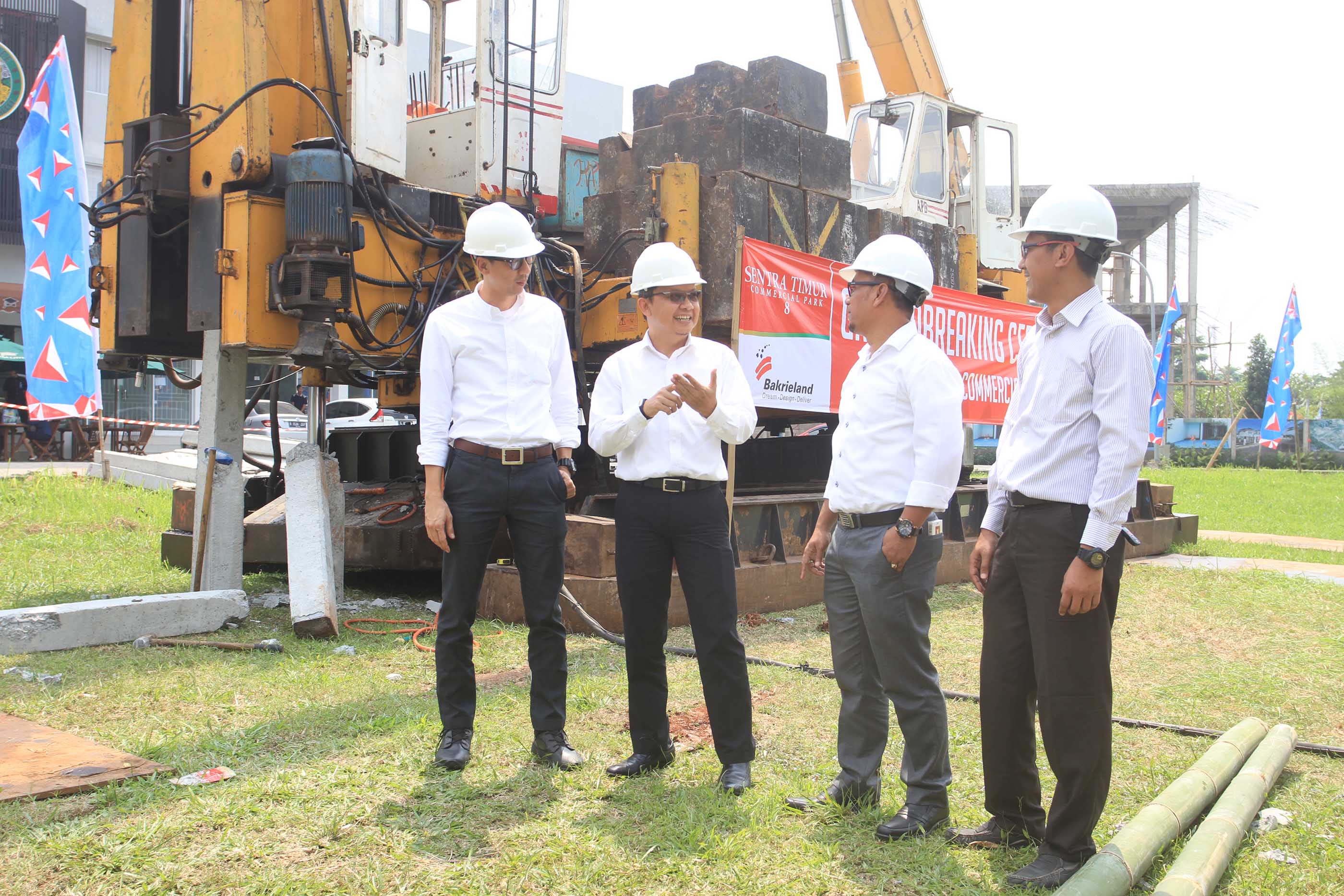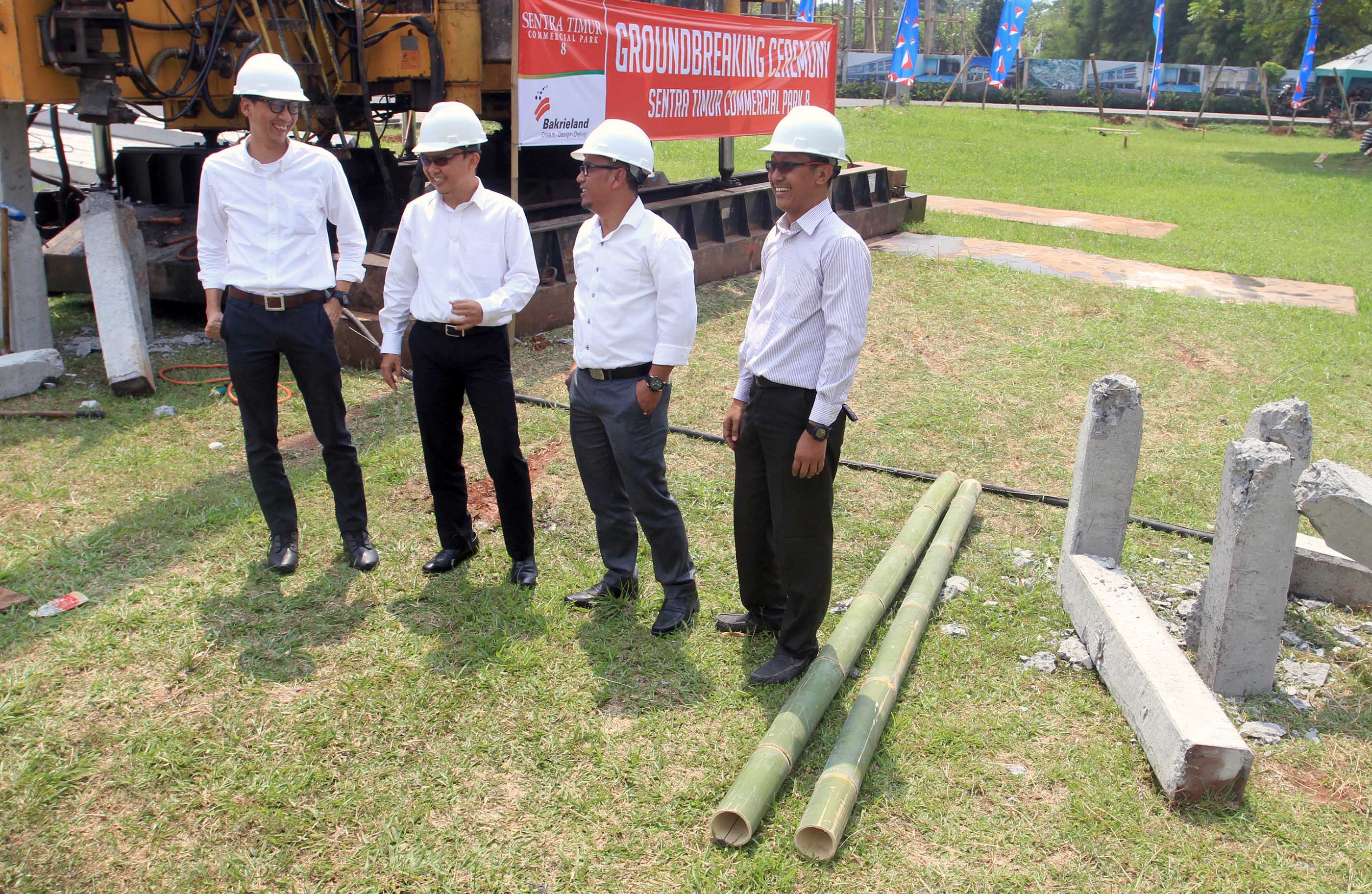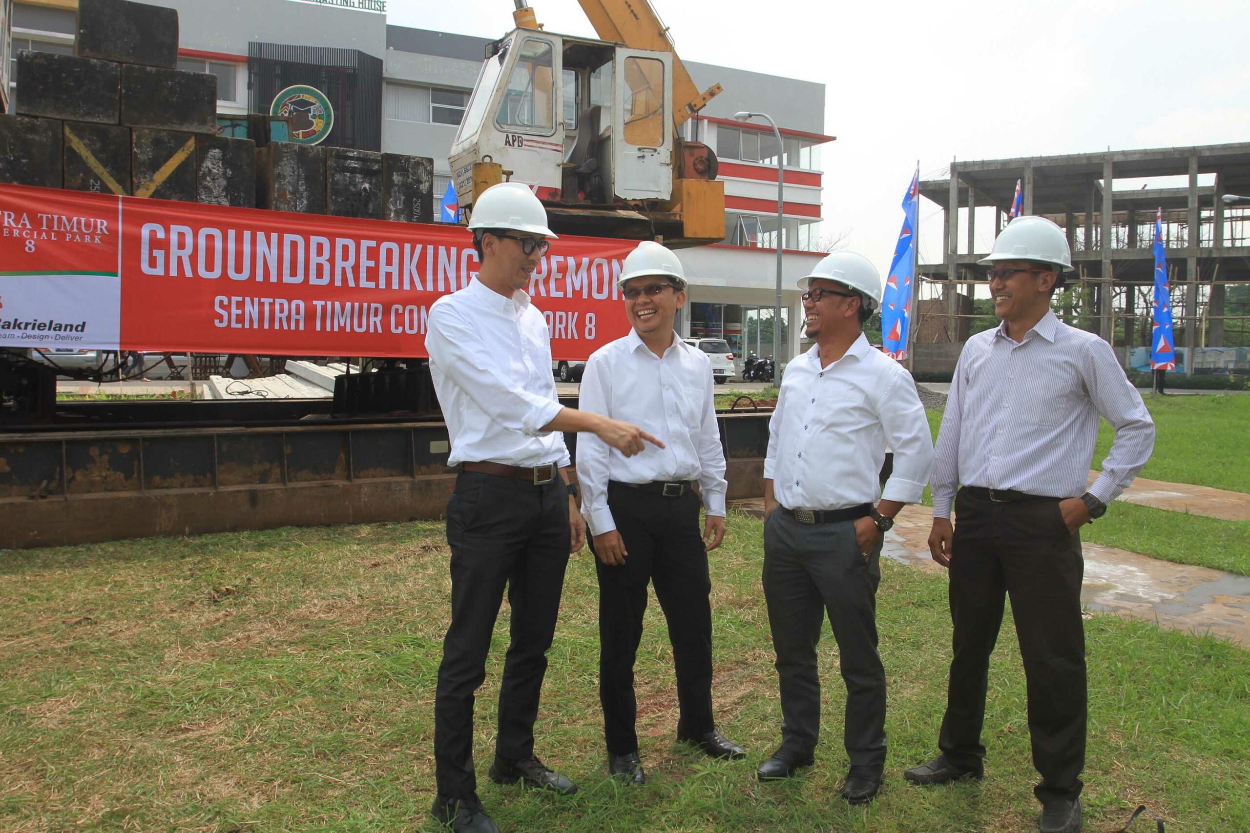 (dari kanan ke kiri) Project Manager PT Bakrie Pangripa Loka (BPL), Herry Susanto ,Chief Operation Officer BPL, Donny Wijaya, Chief Design & Construction Officer BPL, Windoko serta Promotion Division Head BPL,Erfan Bachtiar berbincang seusai Ground Breaking Sentra Timur Commercial Park 8 di Jakarta, Kamis (4/8).PT Bakrie Pangripa Loka (BPL) yang telah sukses dengan pemasaran Sentra Timur Commercial Park (STCP) 1,2 dan 7, kini kembali meluncurkan produk terbaru, yakni Sentra Timur Commercial Park (STCP) 8 untuk menjawab kebutuhan masyarakat sektor perniagaan di kawasan tersebut dengan lokasi strategis akses pintu tol langsung ke Toll JORR dan berhadapan langsung dengan Terminal Modern Sentra Timur.
