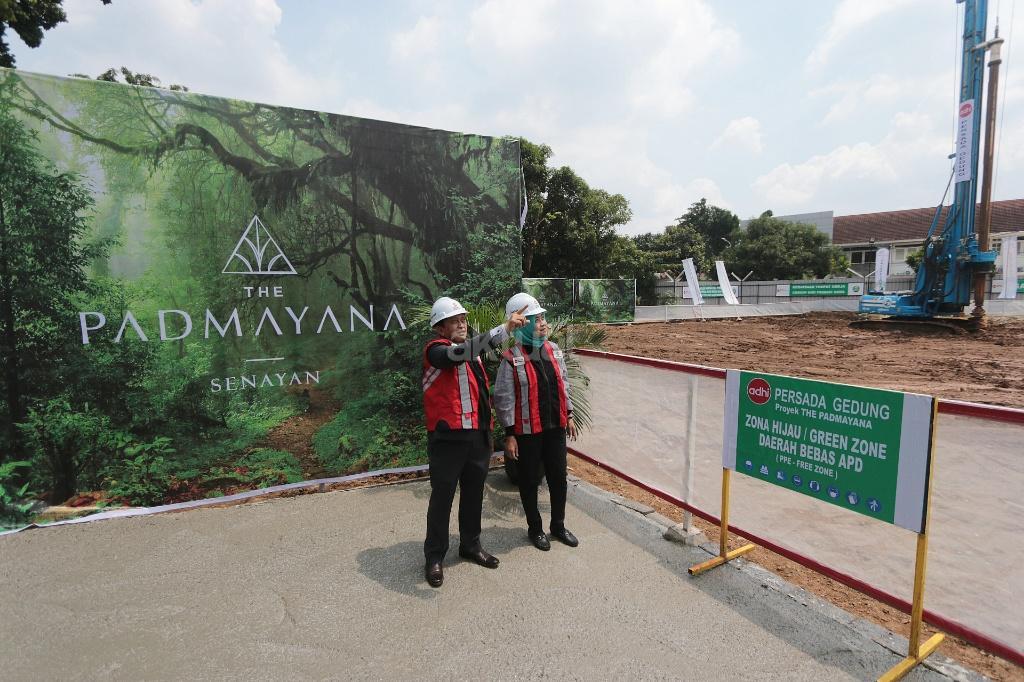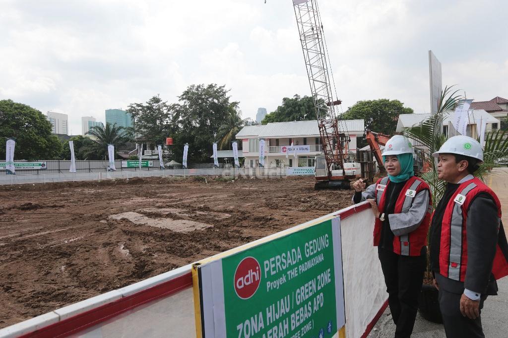 Project Director The Padmayana Cipto Wardoyo (kanan) bersama Direktur Pemasaran PT Adhi Persada Properti Wahyuni Sutantri (kiri) saat meninjau lokasi proyek The Padmayana disela-sela acara Ground Breaking The Padmayana di kawasan Kebayoran Baru, Jakarta Selatan, Sabtu (7/4/2018). The Padmayana merupakan apartemen premium dengan konsep heritage resort yang dikembangkan oleh PT Adhi Persada Properti dengan luas lahan 4.440 M2 dengan nilai investasi sebesar Rp 720 miliar. AKTUAL/Tino Oktaviano