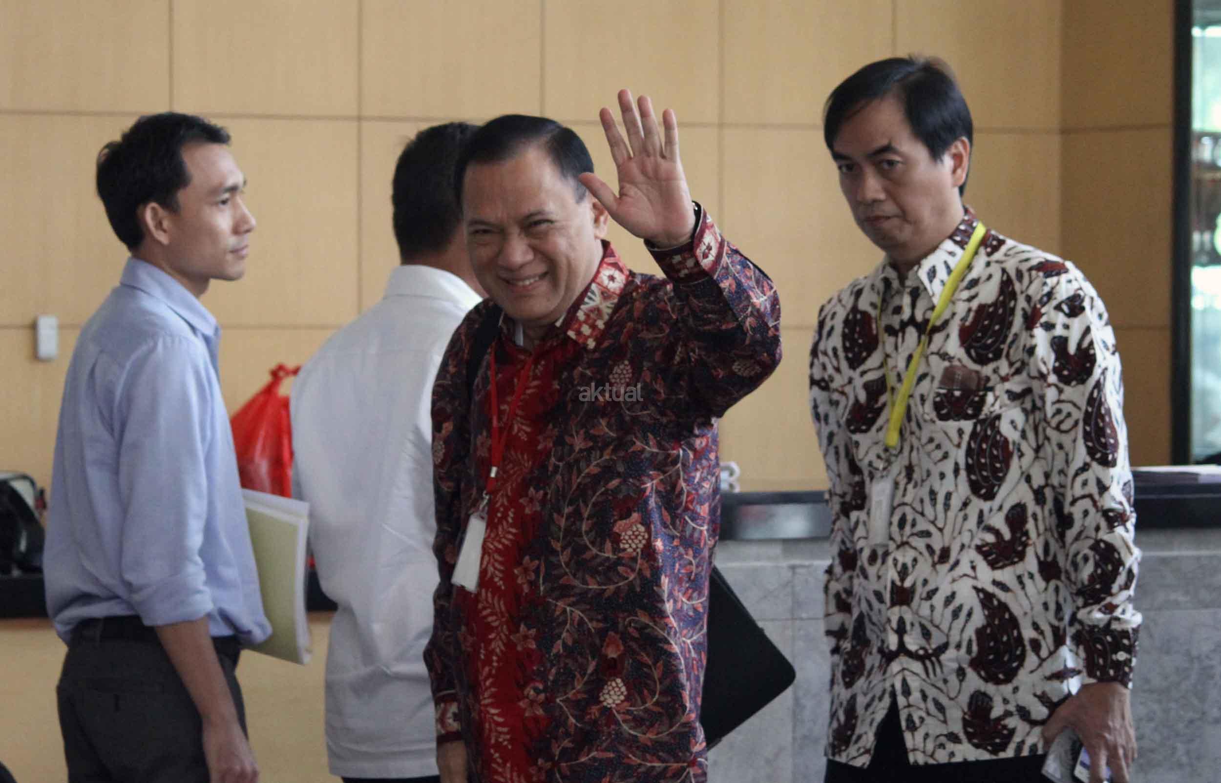 Gubernur Bank Indonesia Agus Martowardojo melambaikan tangan sebelum menjalani pemeriksaan di Gedung KPK Jakarta, Selasa (1/11/2016). Agus diperiksa sebagai saksi dalam kapasitasnya sebagai mantan Menteri Keuangan terkait kasus dugaan korupsi proyek e-KTP di Kementerian Dalam Negeri tahun 2011-2012 untuk tersangka mantan Direktur Jenderal Kependudukan dan Pencatatan Sipil Kementerian Dalam Negeri Irman. AKTUAL/Munzir