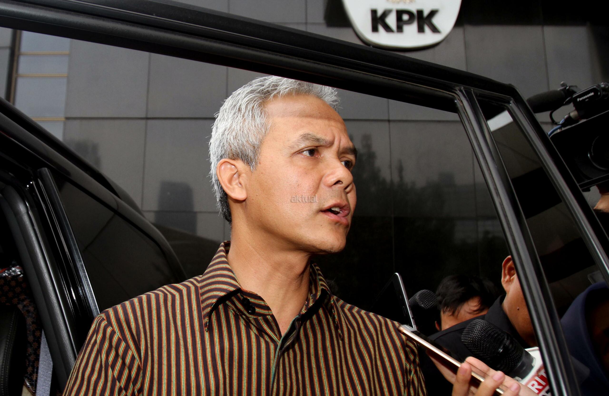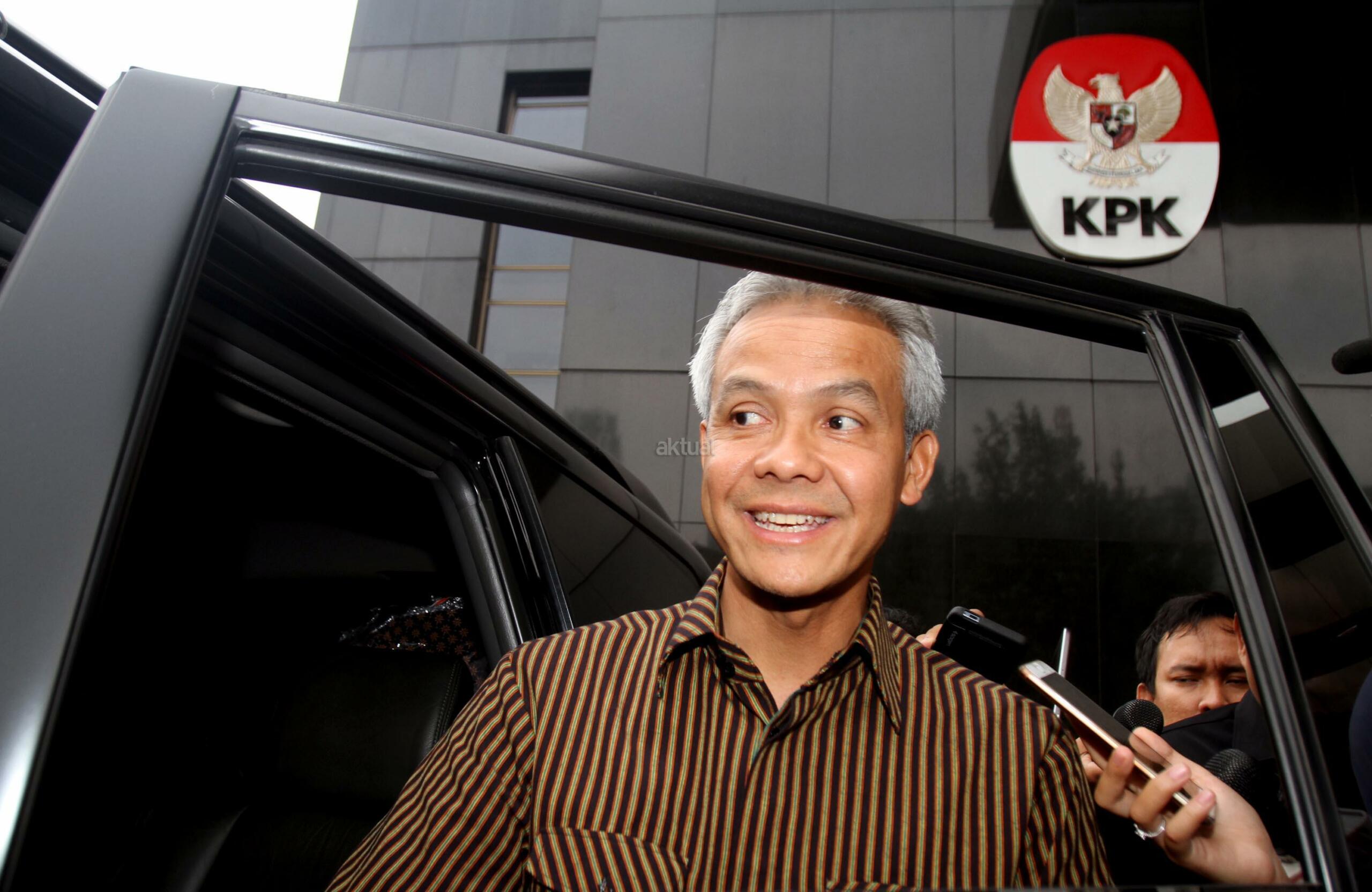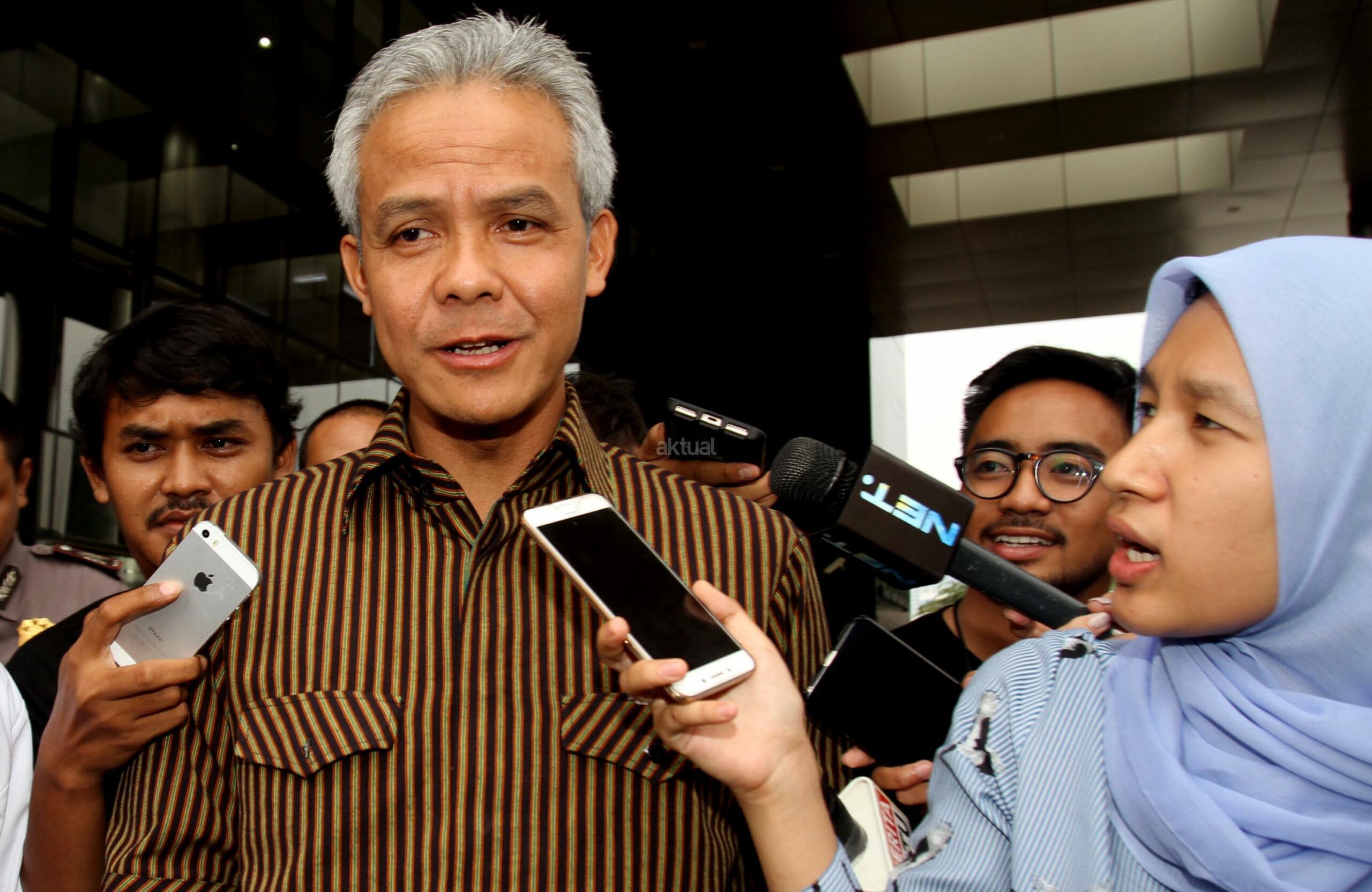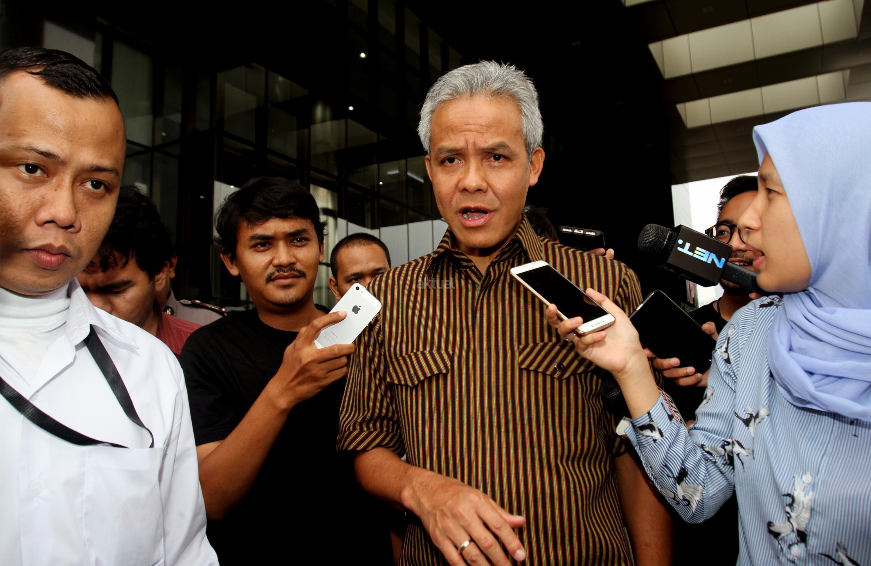 Gubernur Jawa Tengah, Ganjar Pranowo, usai dimintai keterangan sebagai saksi oleh penyidik KPK di Jakarta, Selasa (5/9/2017). Ganjar diperiksa sebagai saksi untuk tersangka Setya Novanto (SN) dalam kasus korupsi e-KTP. AKTUAL/Munzir