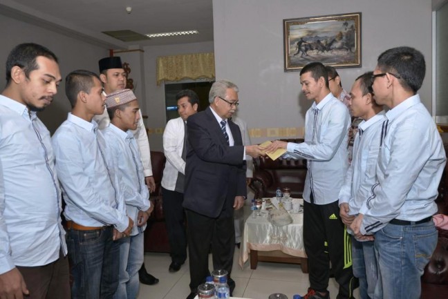 Banda Aceh, Aktual.co —Gubernur Aceh dr Zaini Abdullah, Jumat (14/11) menyambut enam warga Aceh di Bandara Sultan Iskandar Muda.