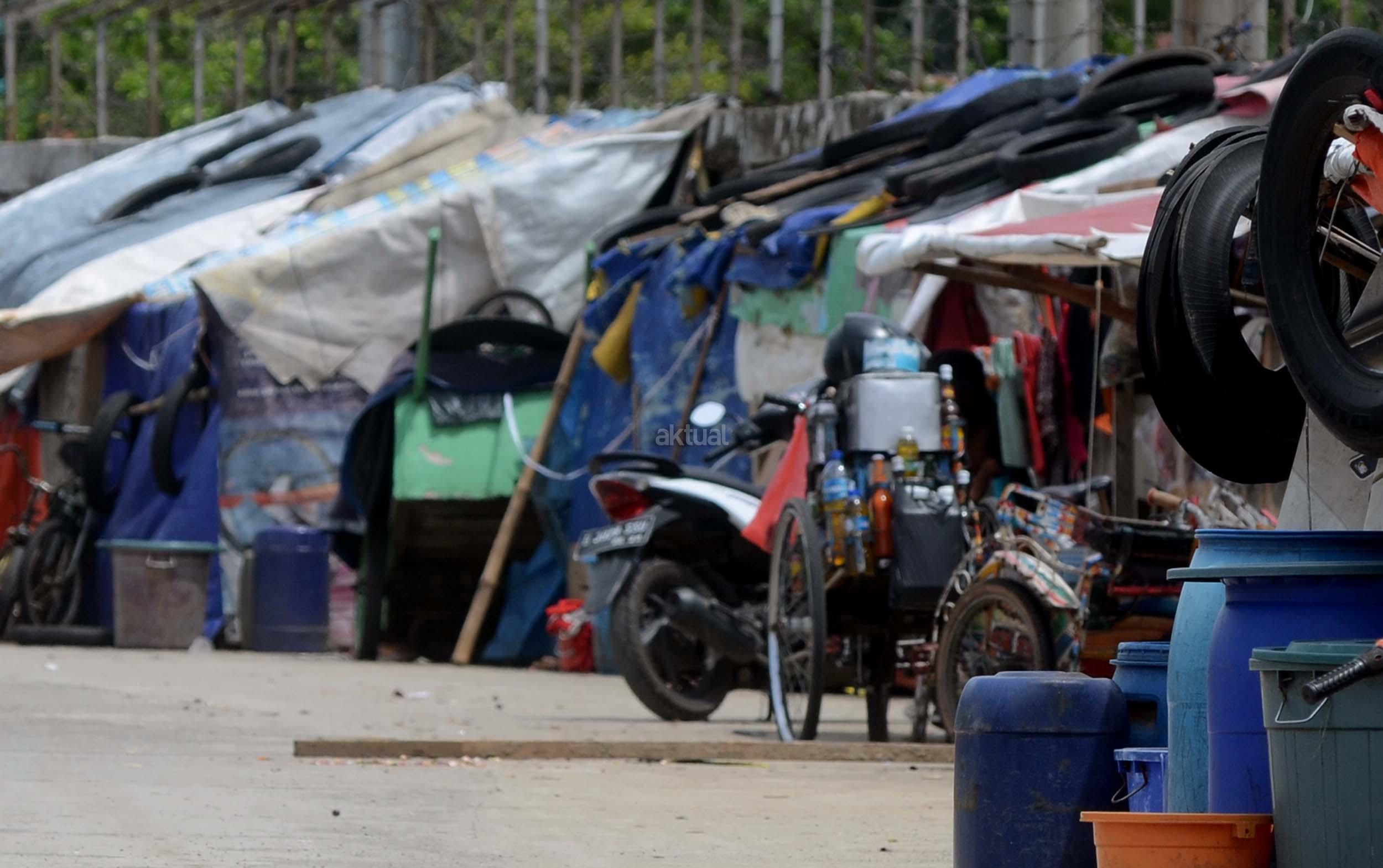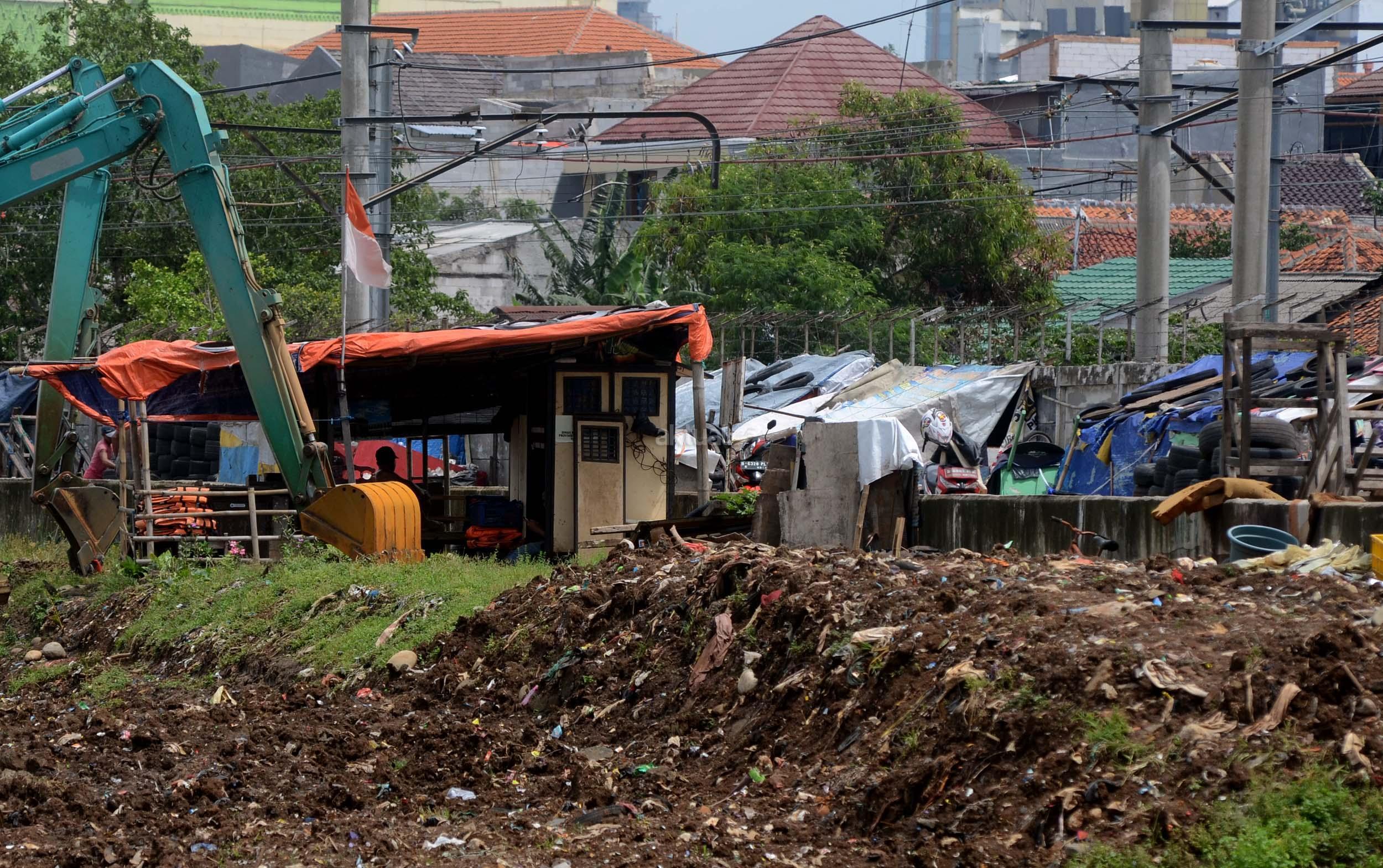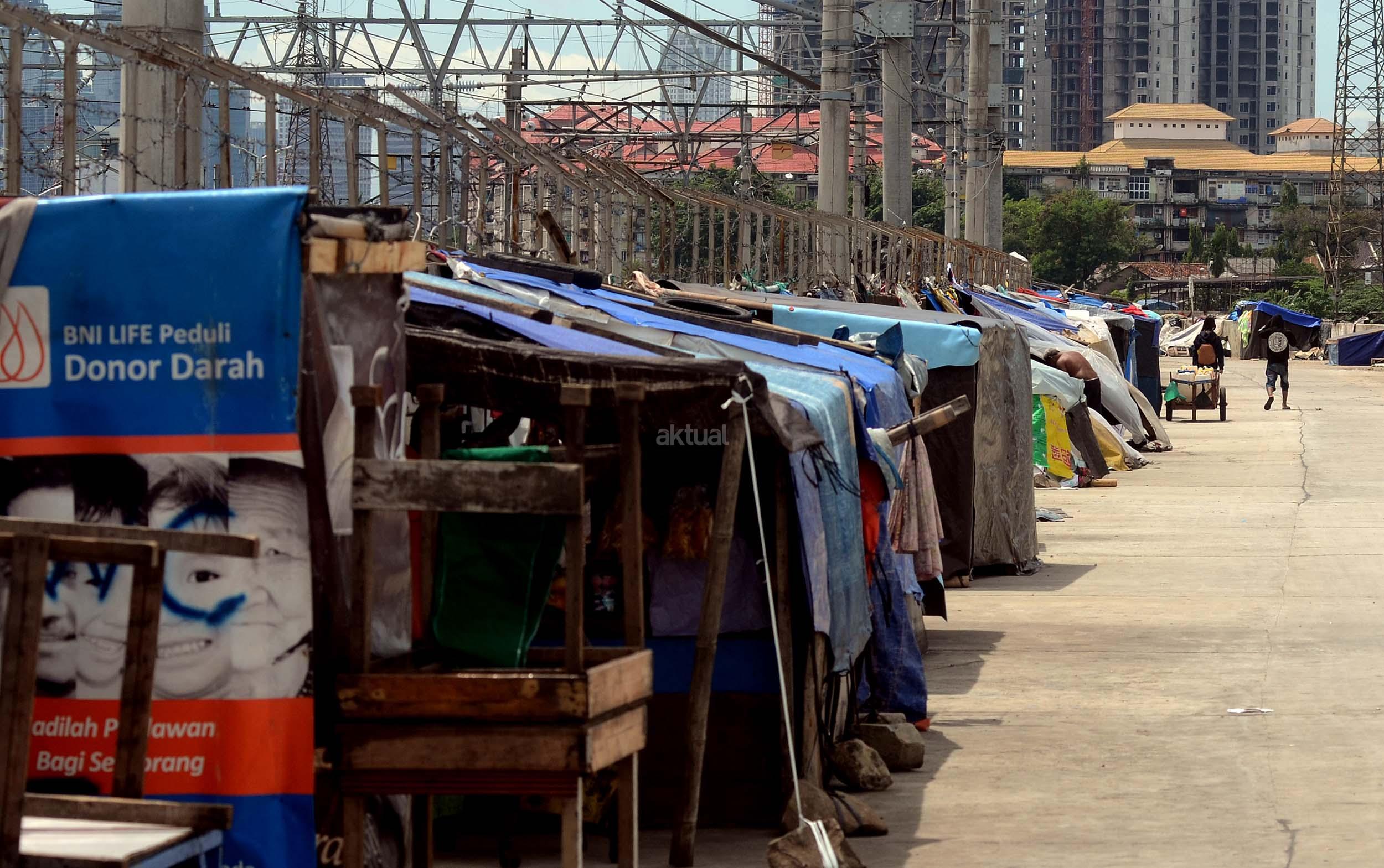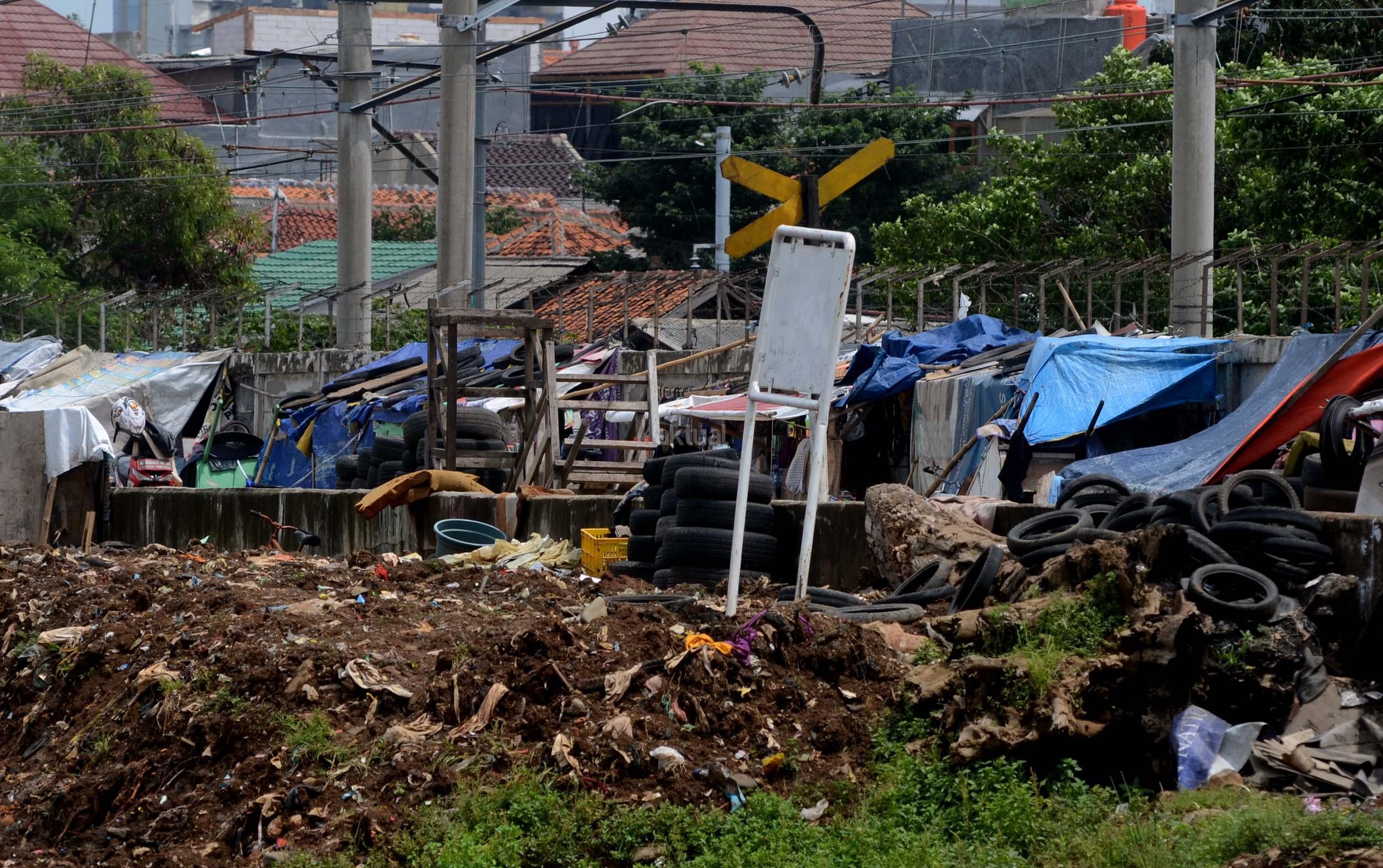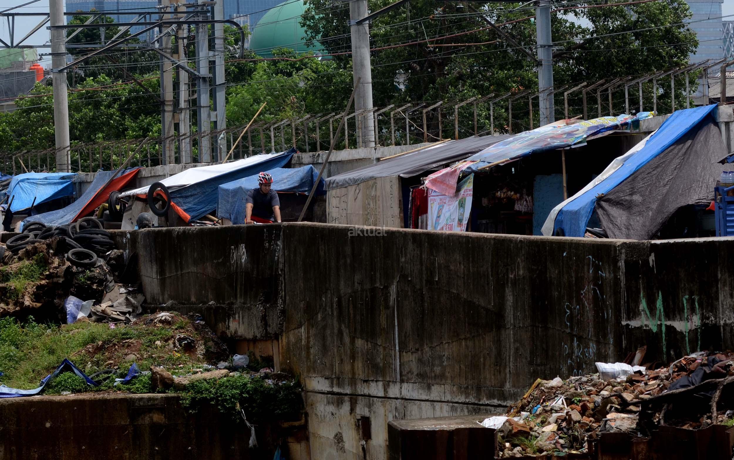 Sejumlah gubuk berada di jalur inspeksi kanal banjir barat (KBB) di kawasan Kebon Melati, Jakarta, Jumat (9/12/2016). Kurangnya pengawasan membuat gubuk liar kembali berdiri di kawasan tersebut, meski telah berulang kali ditertibkan. AKTUAL/Munzir