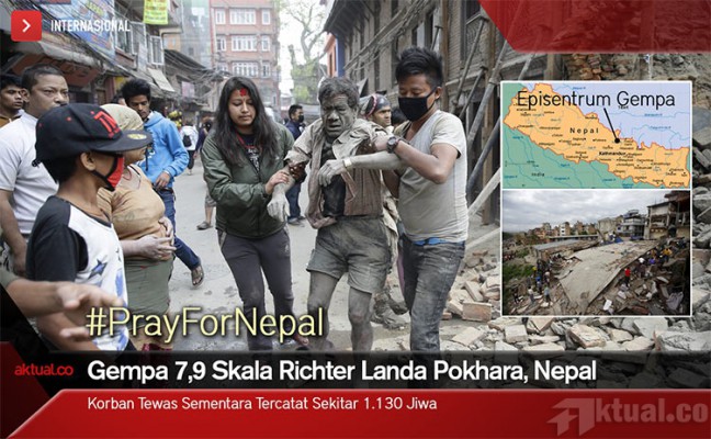 Jakarta, Aktual.co — Gempa besar 7,9 SR yang mengguncang Nepal hari Sabtu menewaskan setidaknya 1.130 jiwa dan menyebabkan longsor mematikan di Gunung Everest. Jumlah korban diperkirakan terus bertambah karena muncul laporan kerusakan berat di daerah pegunungan terpencil akibat gempa terbesar yang melanda Nepal dan berpusat 80 km di sebelah timur Pokhara, kota terbesar kedua ini.