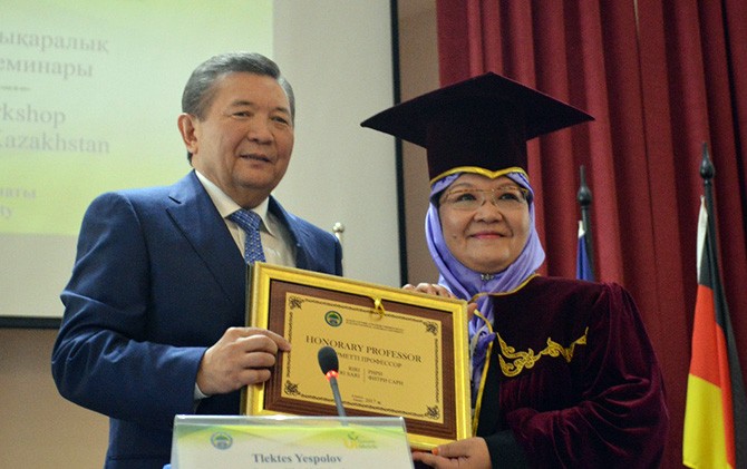 “Saya bangga dan berbahagia atas gelar Guru Besar Kehormatan dari universitas nasional pertanian Kazakhstan ini, yang memertimbangkan hasil kerja keras untuk membangun dan mengkomunikasikan kondisi ideal kampus berkelanjutan yang diidamkam,” kata Riri.
