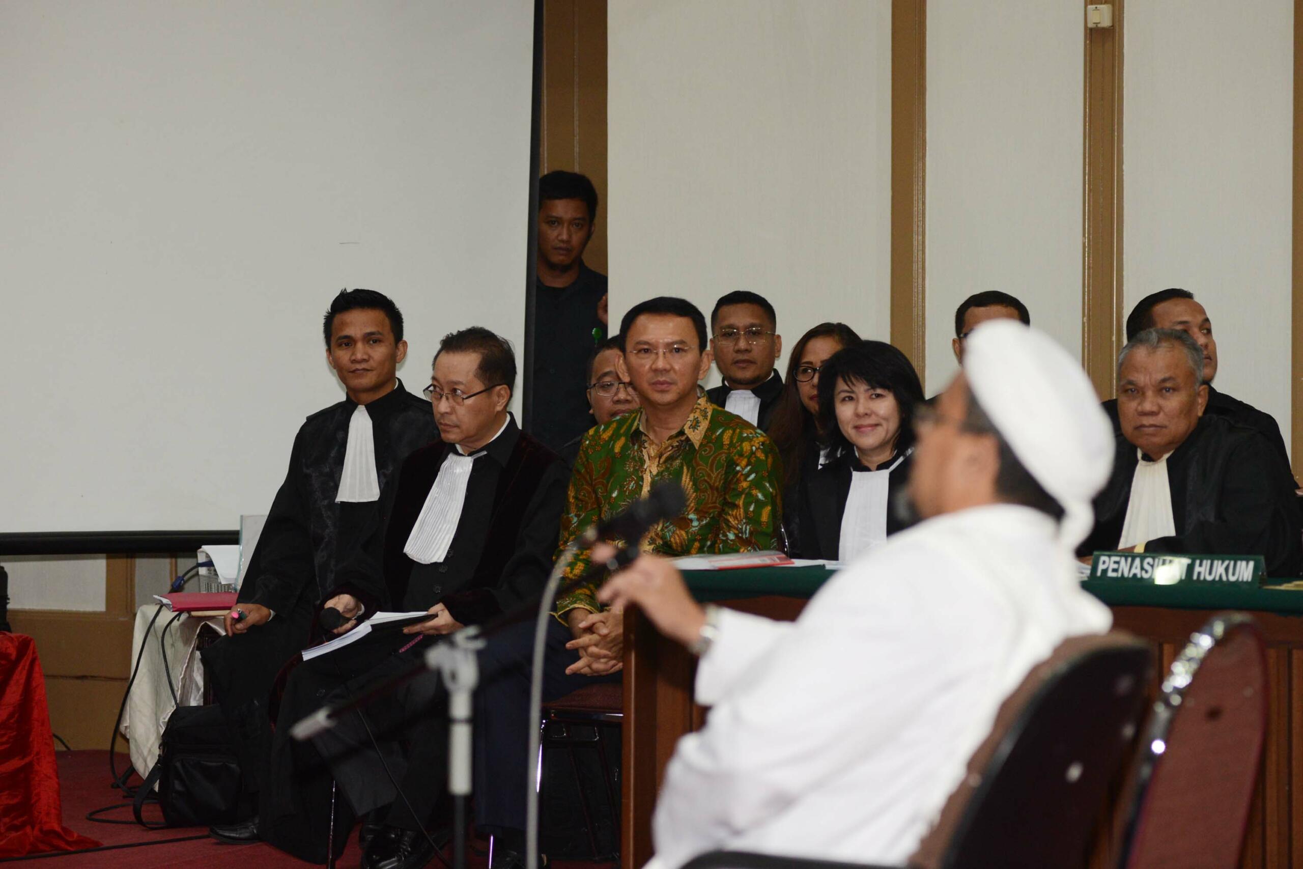 Terdakwa dugaan kasus penistaan agama, Gubernur DKI Jakarta Basuki Tjahaja Purnama (Ahok) didampingi kuasa hukumnya saat mengikuti sidang