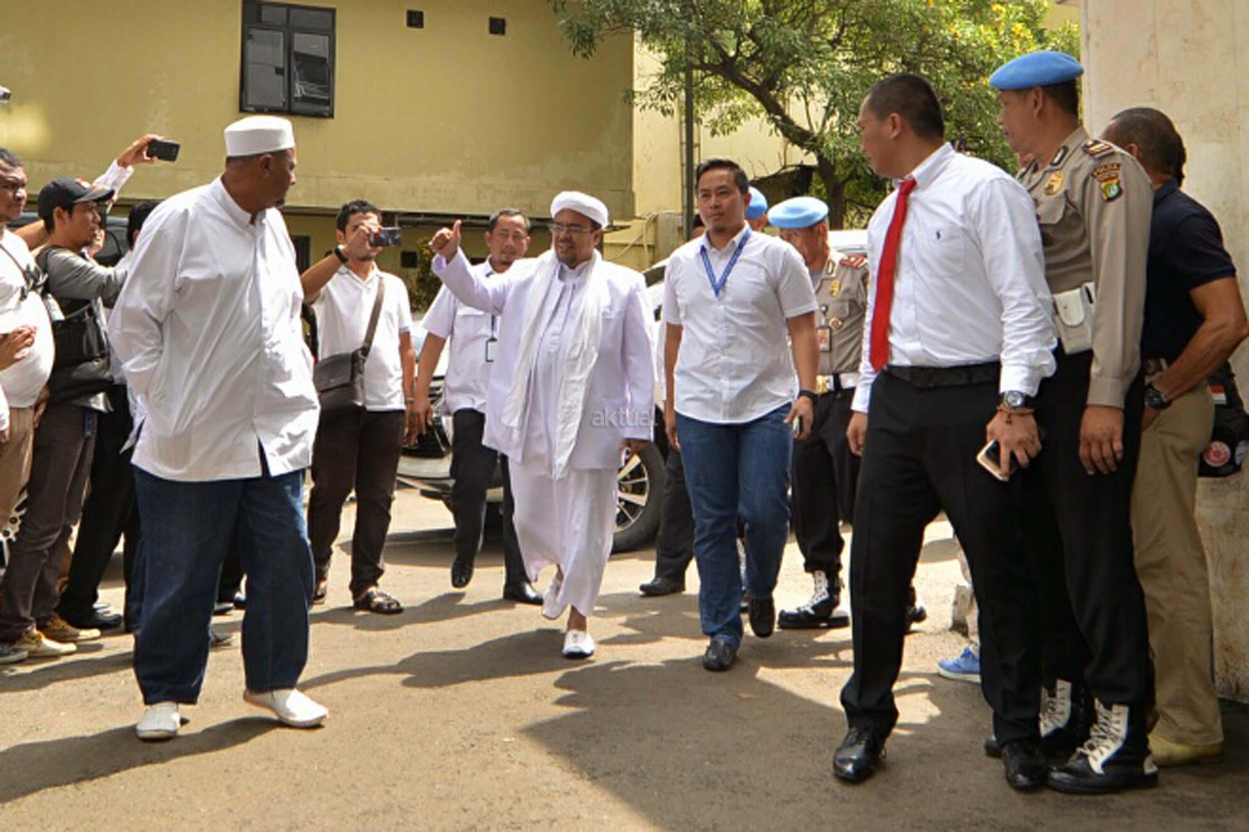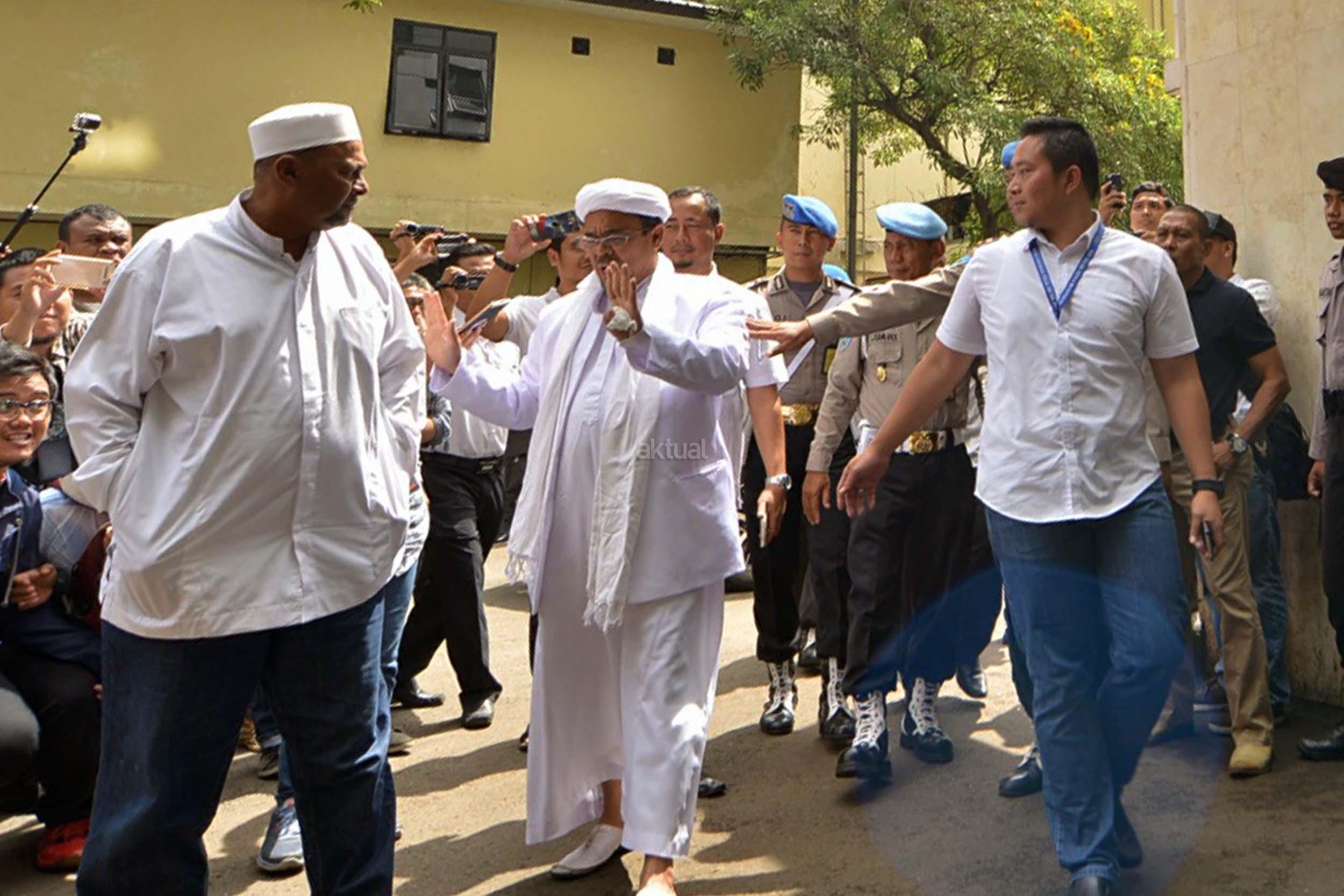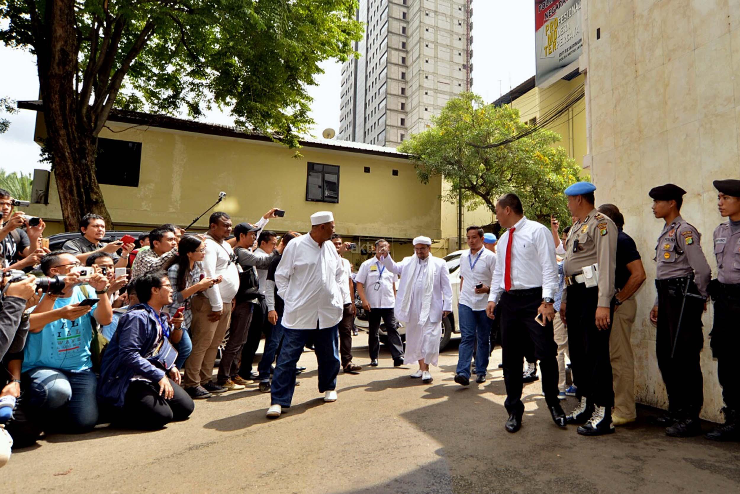 Imam Besar Front Pembela Islam (FPI) Habib Rizieq Shihab, Juru Bicara FPI Munarman, serta Ketua Gerakan Nasional Pengawal Fatwa (GNPF) MUI Bachtiar Nasir, memenuhi panggilan untuk menjalani pemeriksaan di Polda Metro Jaya, Jakarta, Rabu (1/2/2017). Mereka diperiksa sebagai saksi terkait kasus dugaan upaya makar serta perbuatan melawan hukum saat melakukan aksi pada tanggal 2 Desember 2016 lalu.