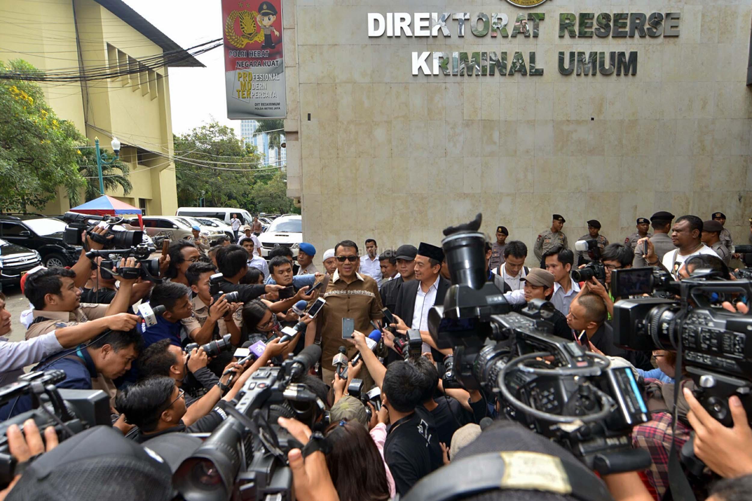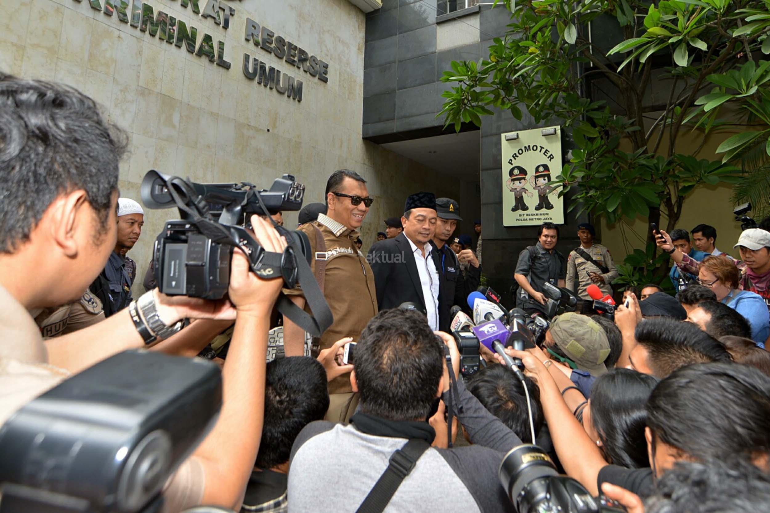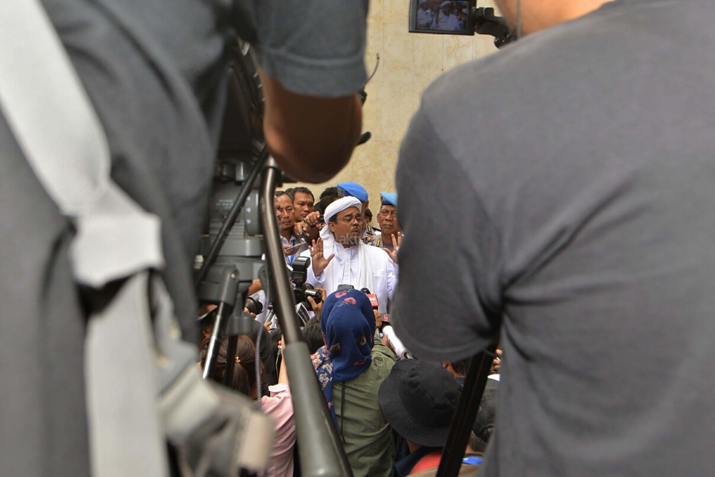 Imam Besar Front Pembela Islam (FPI) Habib Rizieq Shihab, Juru Bicara FPI Munarman, serta Ketua Gerakan Nasional Pengawal Fatwa (GNPF) MUI Bachtiar Nasir, memenuhi panggilan untuk menjalani pemeriksaan di Polda Metro Jaya, Jakarta, Rabu (1/2/2017). Mereka diperiksa sebagai saksi terkait kasus dugaan upaya makar serta perbuatan melawan hukum saat melakukan aksi pada tanggal 2 Desember 2016 lalu.