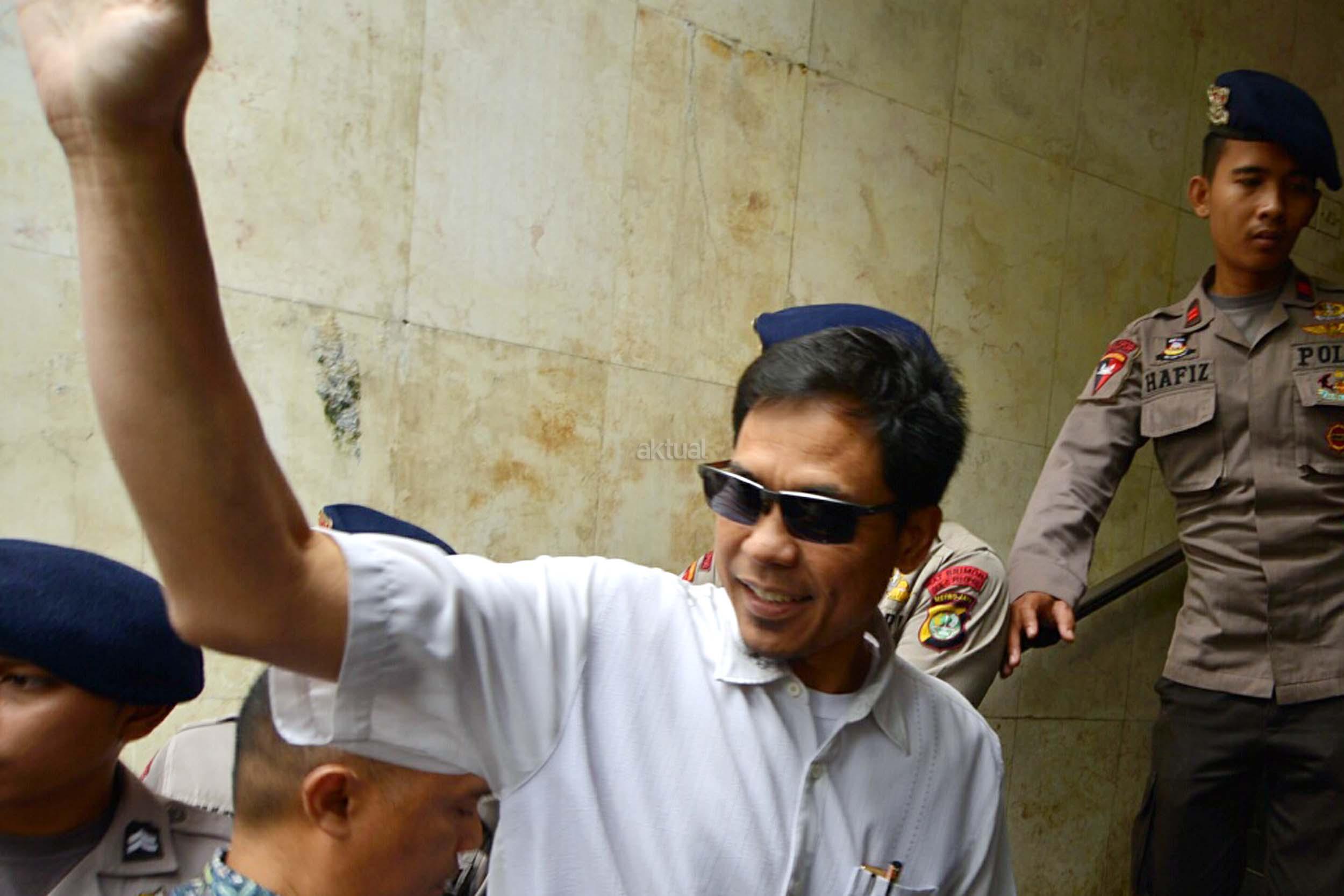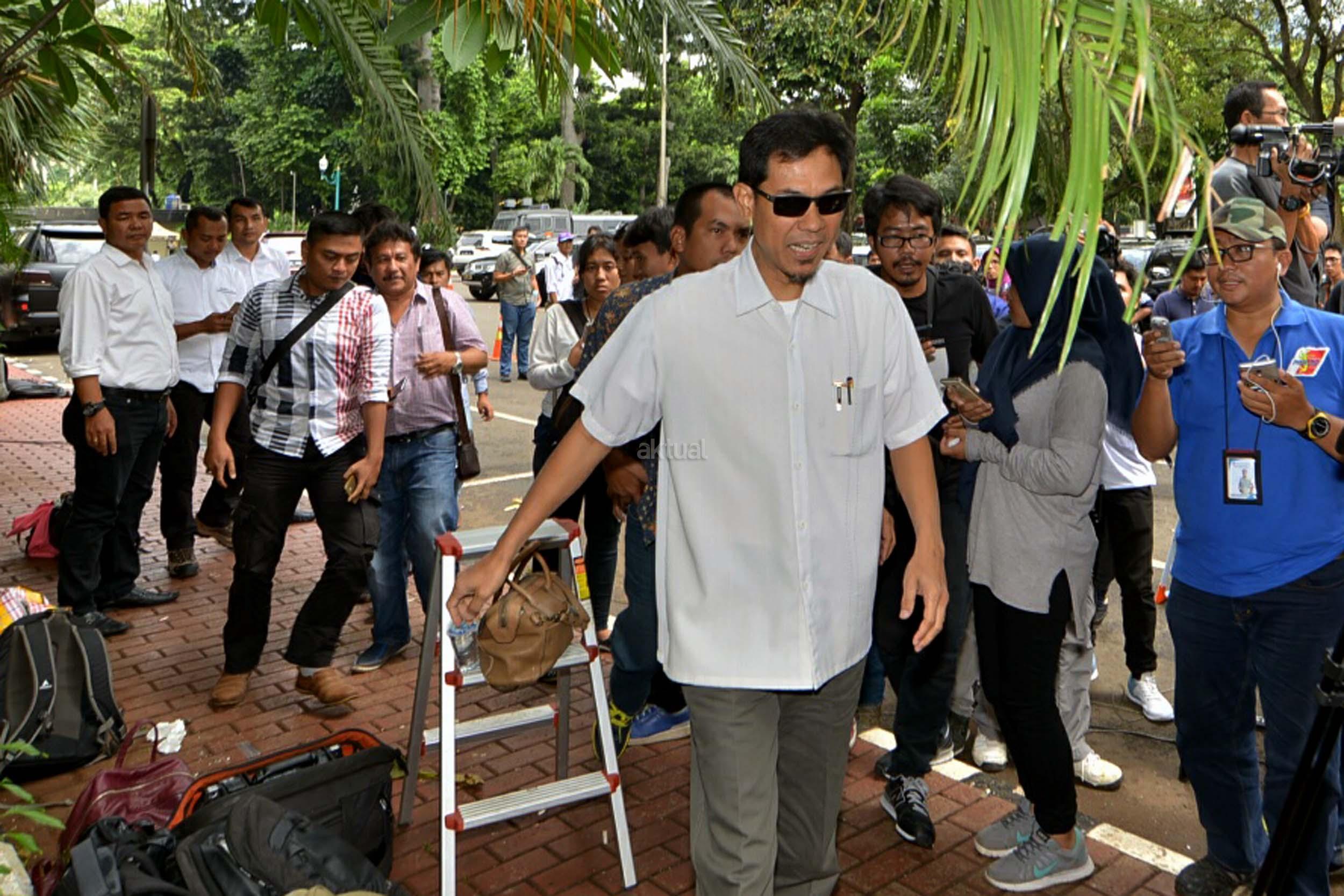 Panglima LPI Munarman tiba untuk menjalani pemeriksaan di Polda Metro Jaya, Jakarta, Rabu (1/2/2017). Mereka diperiksa sebagai saksi terkait kasus dugaan upaya makar serta perbuatan melawan hukum saat melakukan aksi pada tanggal 2 Desember 2016