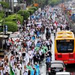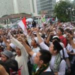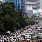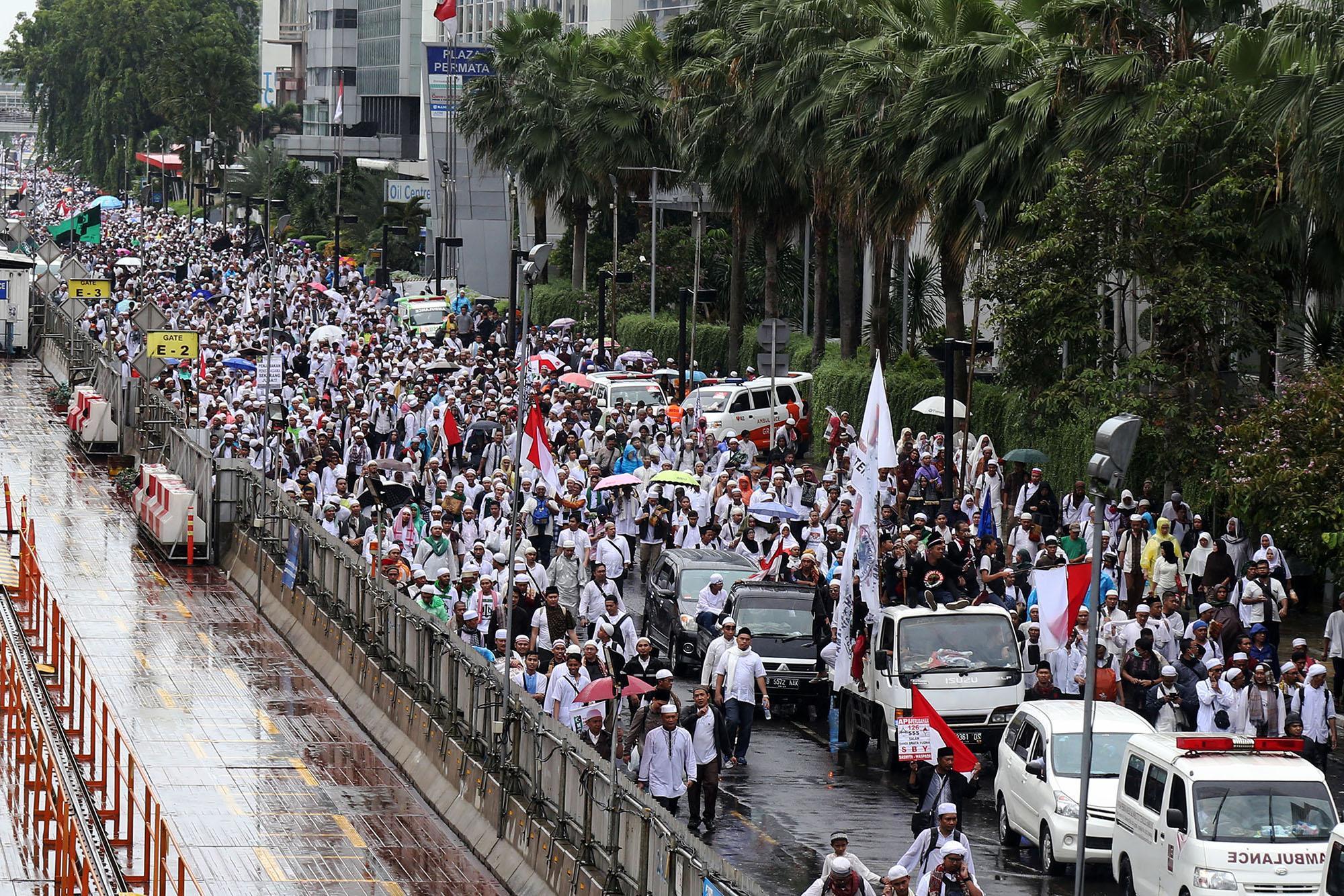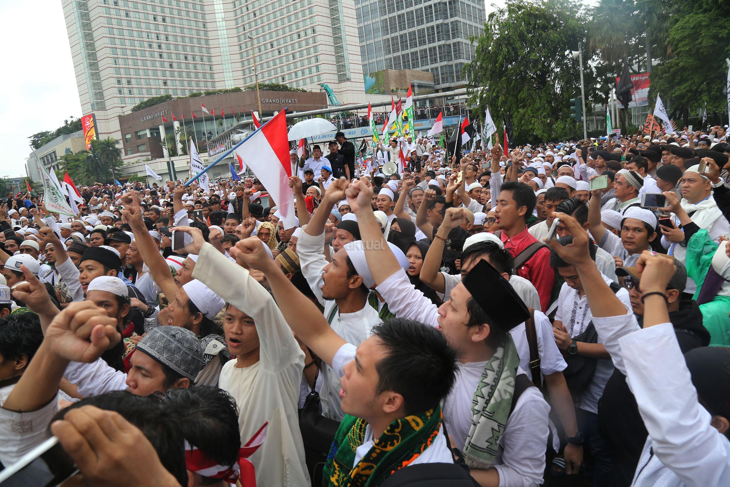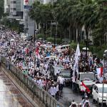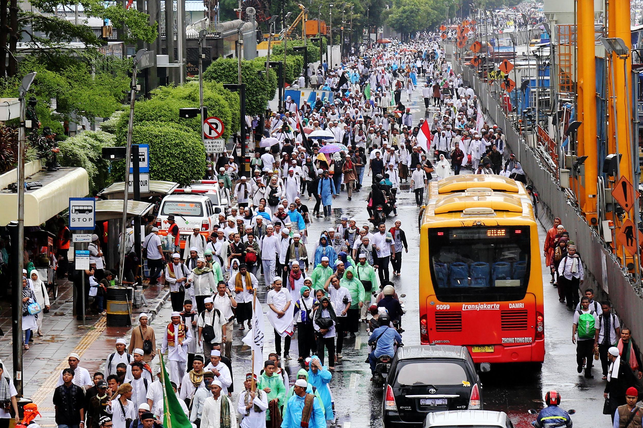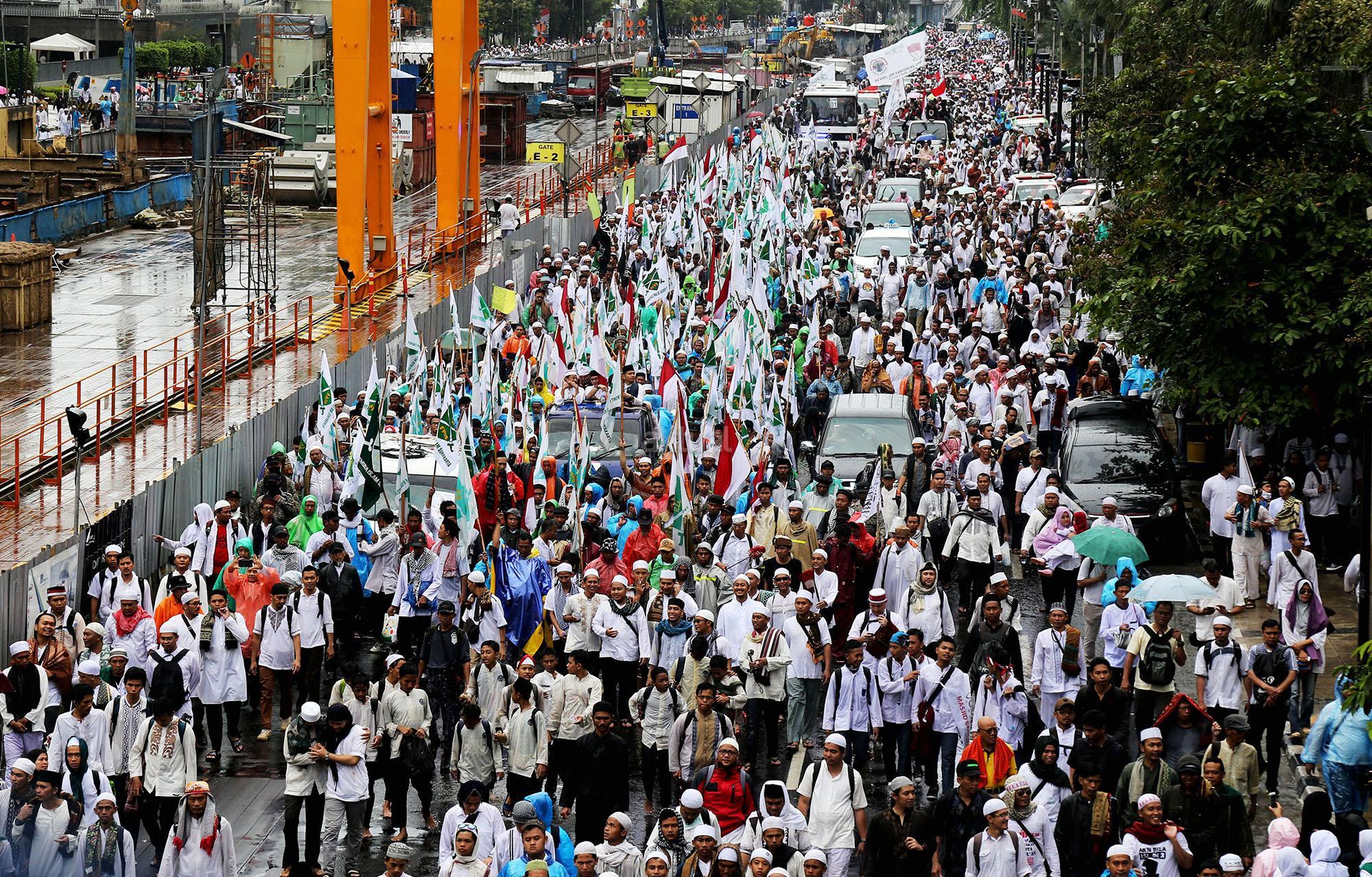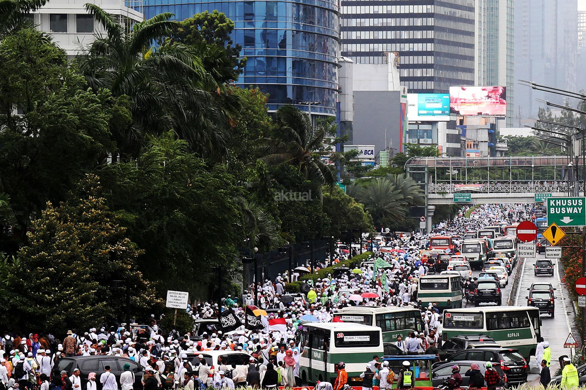 Jutaan umat muslim long march usai melakukan aksi bela islam jilid III dari Monas ke Bundaran HI, Jakarta Pusat, Jumat (2/12/2016). Aksi digelar sejak pagi hingga usai salat Jumat. Jutaan massa umat Islam telah membuktikan menggelar Aksi Bela Islam III dengan tertib, aman dan super damai. AKTUAL/Tino Oktaviano