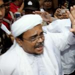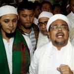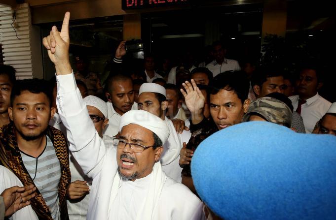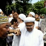 Rizieq Shihab jalani pemeriksaan di Direktorat Kriminal Khusus Polda Metro Jaya, Jakarta, Senin (23/1/2017). Rizieq diperiksa sebagai saksi terkait kasus adanya gambar palu arit dalam uang yang dikeluarkan Bank Indonesia. AKTUAL/Munzir