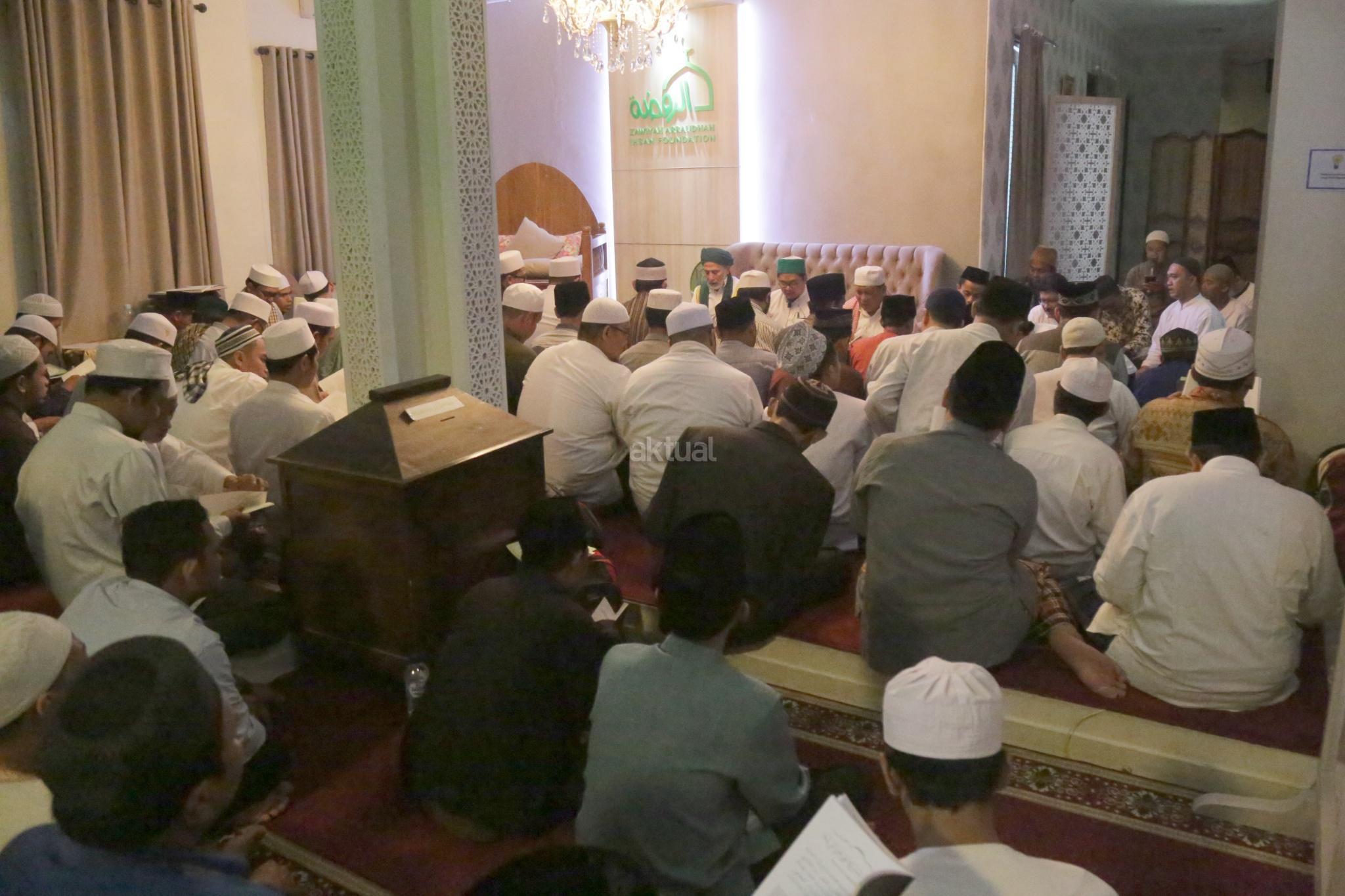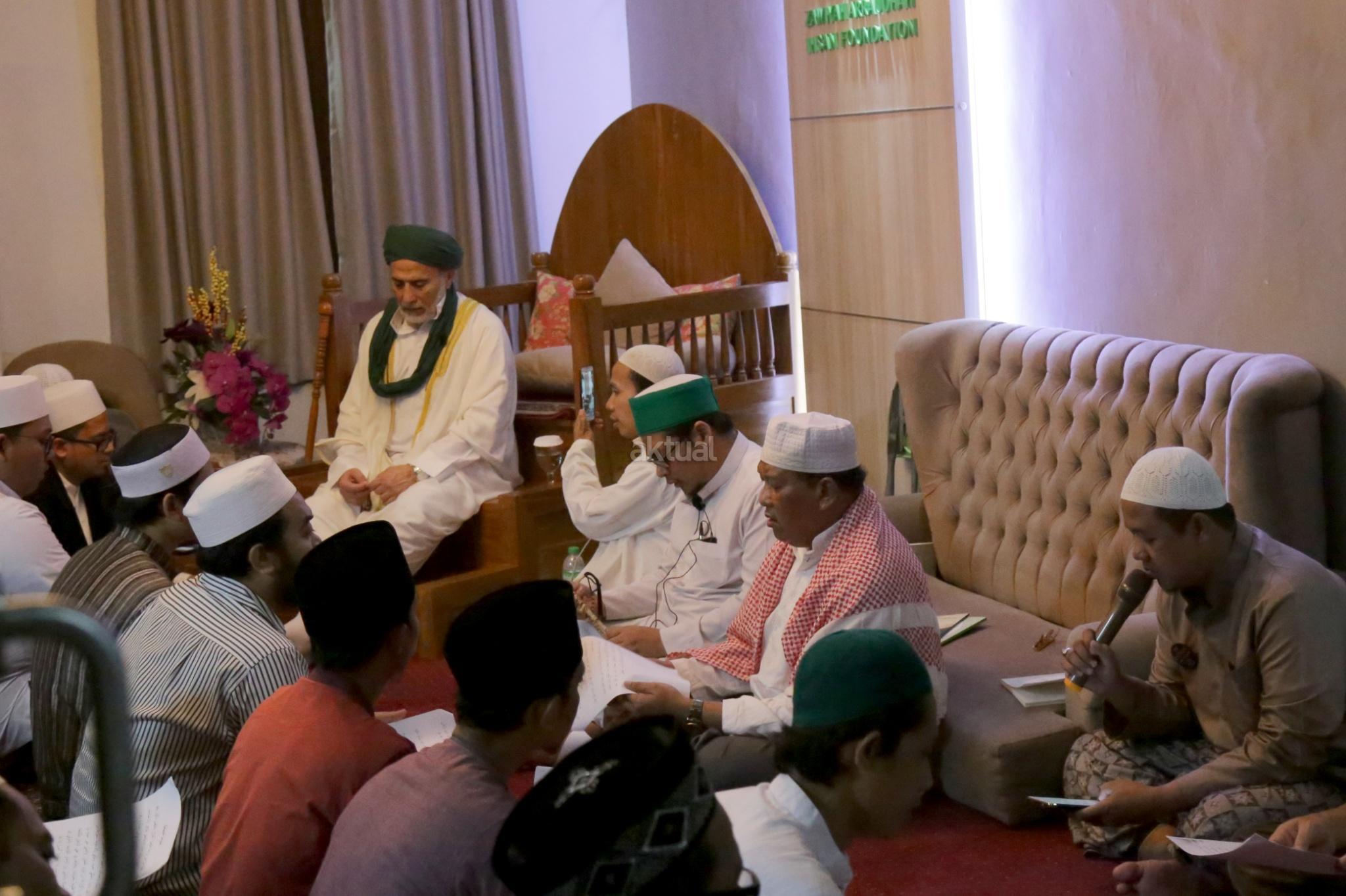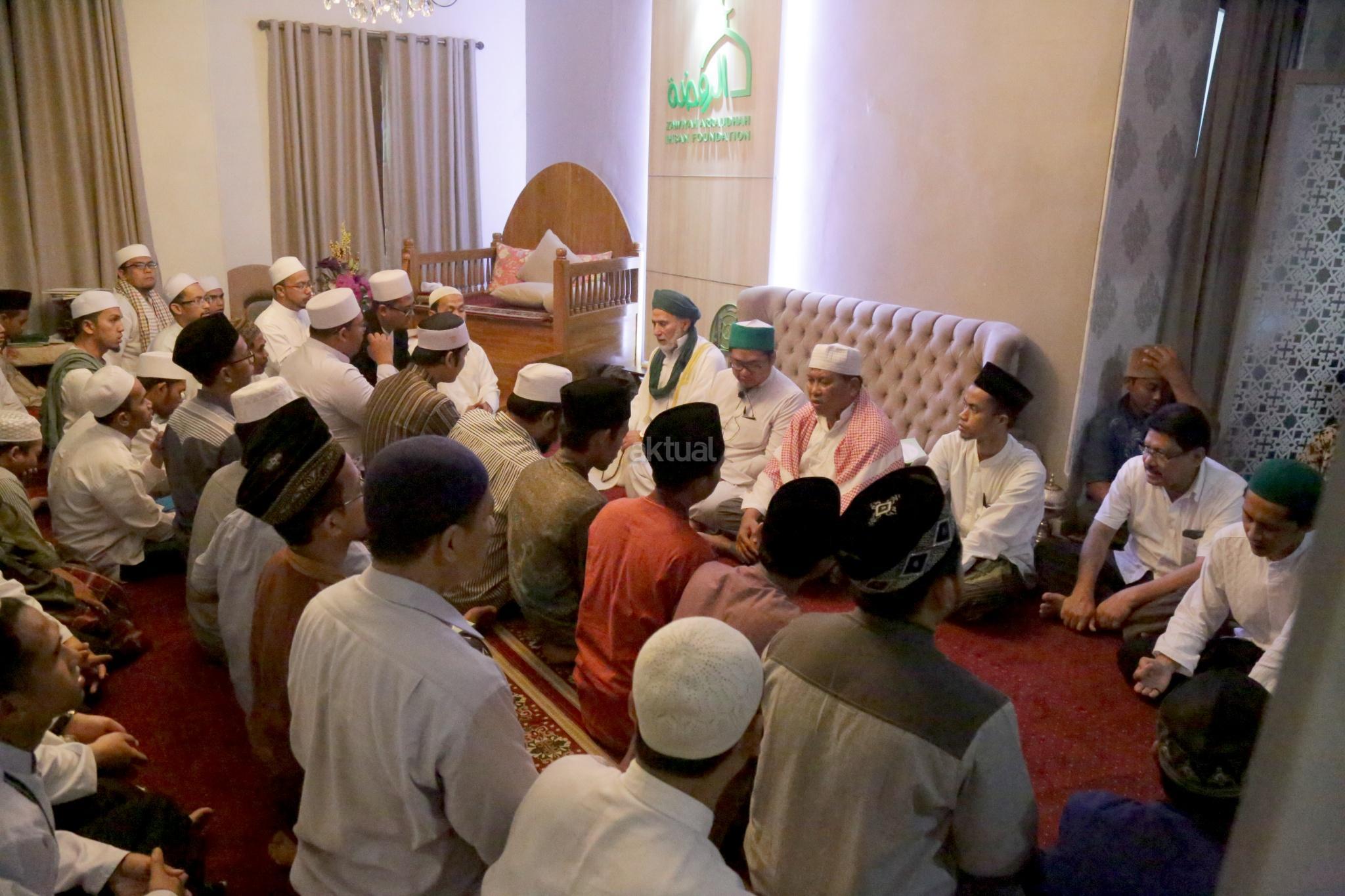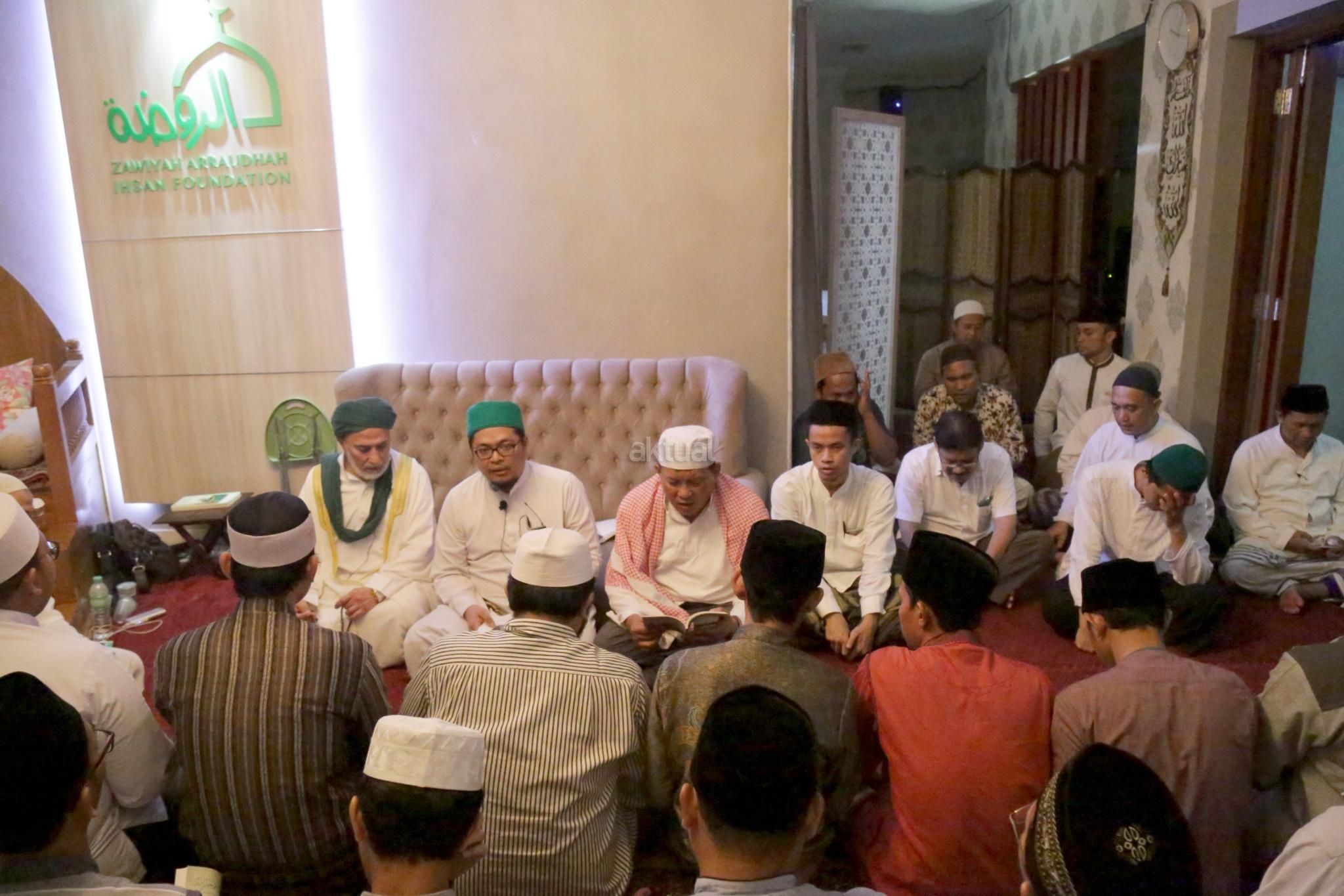 Maulana Syekh Dr Yusri Rusydi Sayyid Jabr Al Hasani didampingi Khodimu Zawiyah Arraudhah KH Muhammad Danial Nafis dan jemaah melaksanakan Dzikir dan Sholawat usai acara Multaqo al-‘Ilmi Wa Adz-Dzikr al Alami di Zawiyah Arraudhah, Jalan Tebet Barat, Jakarta Selatan, Kamis (11/1/2018). Hadroh Usbuiyah li Thariqati Shiddiqiyah Syadzilliyah ini dilaksanakan rutin setiap Kamis malam di Zawiyah Arraudhah. AKTUAL/Tino Oktaviano