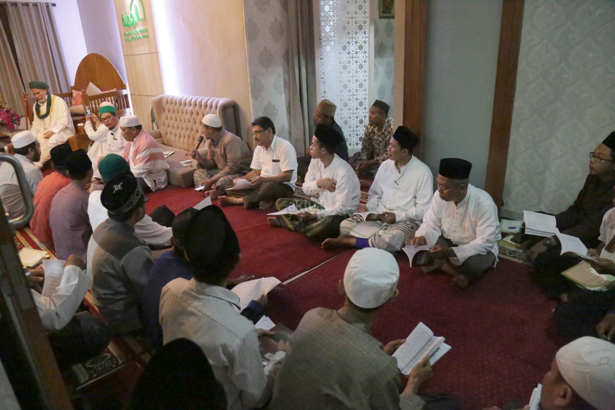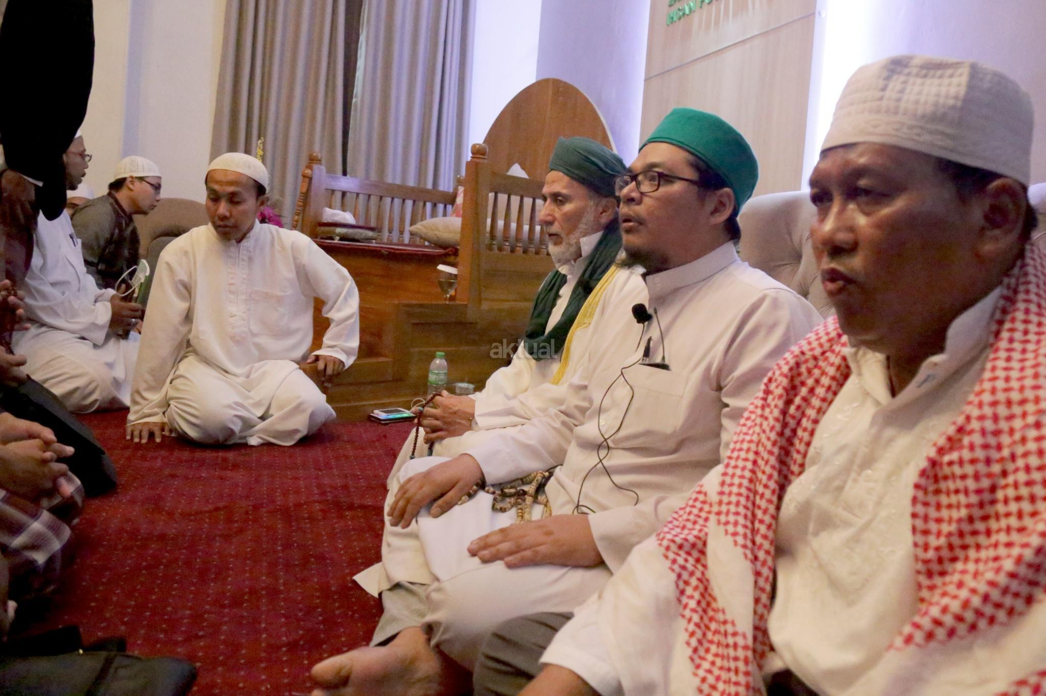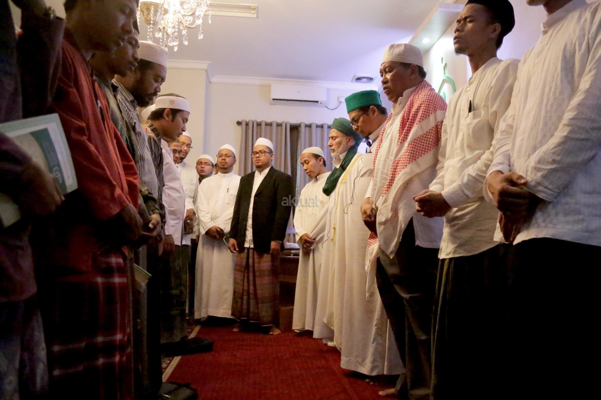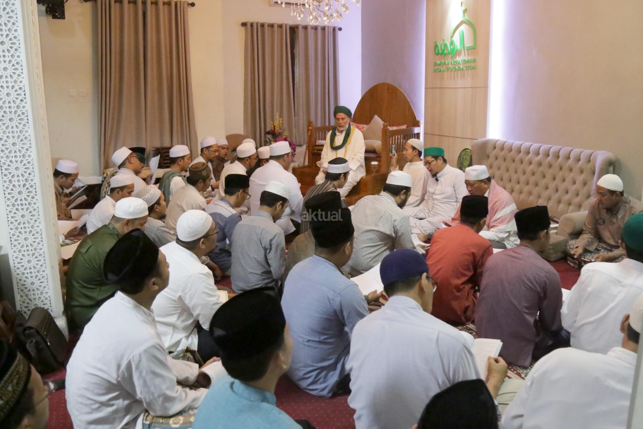 Maulana Syekh Dr Yusri Rusydi Sayyid Jabr Al Hasani didampingi Khodimu Zawiyah Arraudhah KH Muhammad Danial Nafis dan jemaah melaksanakan Dzikir dan Sholawat usai acara Multaqo al-‘Ilmi Wa Adz-Dzikr al Alami di Zawiyah Arraudhah, Jalan Tebet Barat, Jakarta Selatan, Kamis (11/1/2018). Hadroh Usbuiyah li Thariqati Shiddiqiyah Syadzilliyah ini dilaksanakan rutin setiap Kamis malam di Zawiyah Arraudhah. AKTUAL/Tino Oktaviano