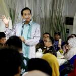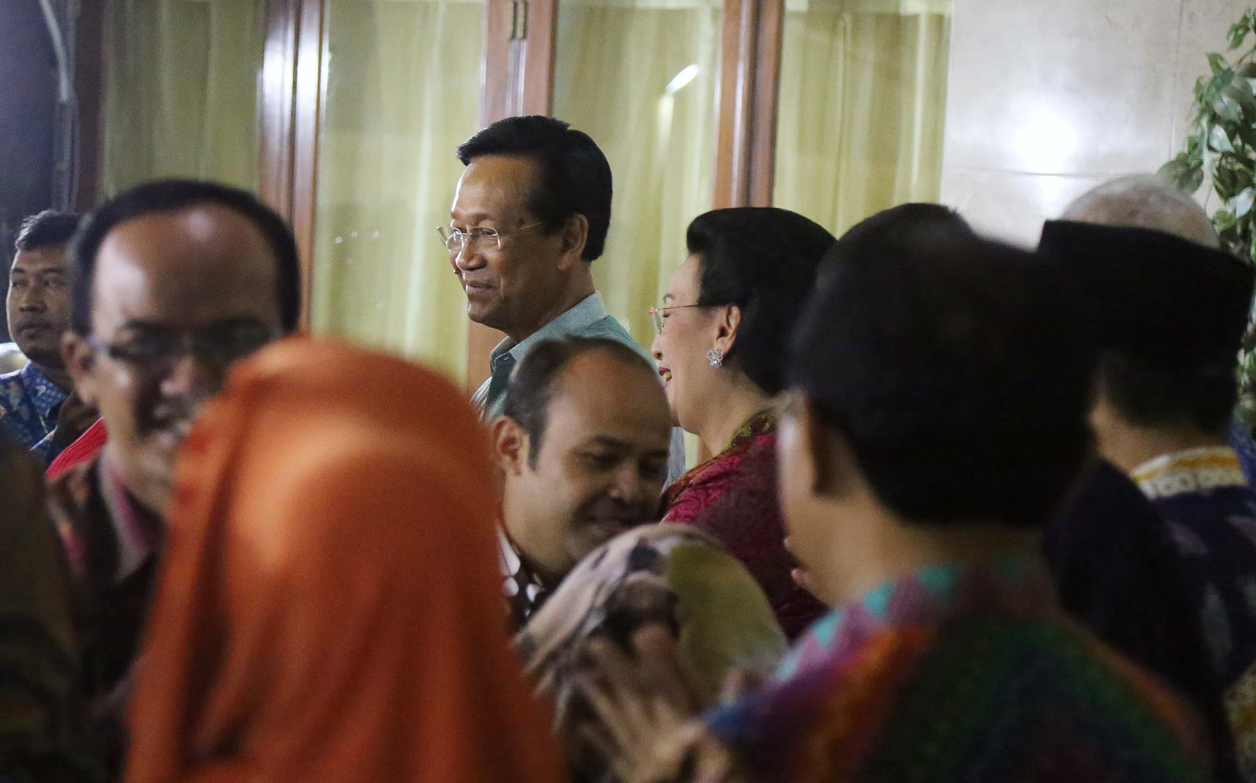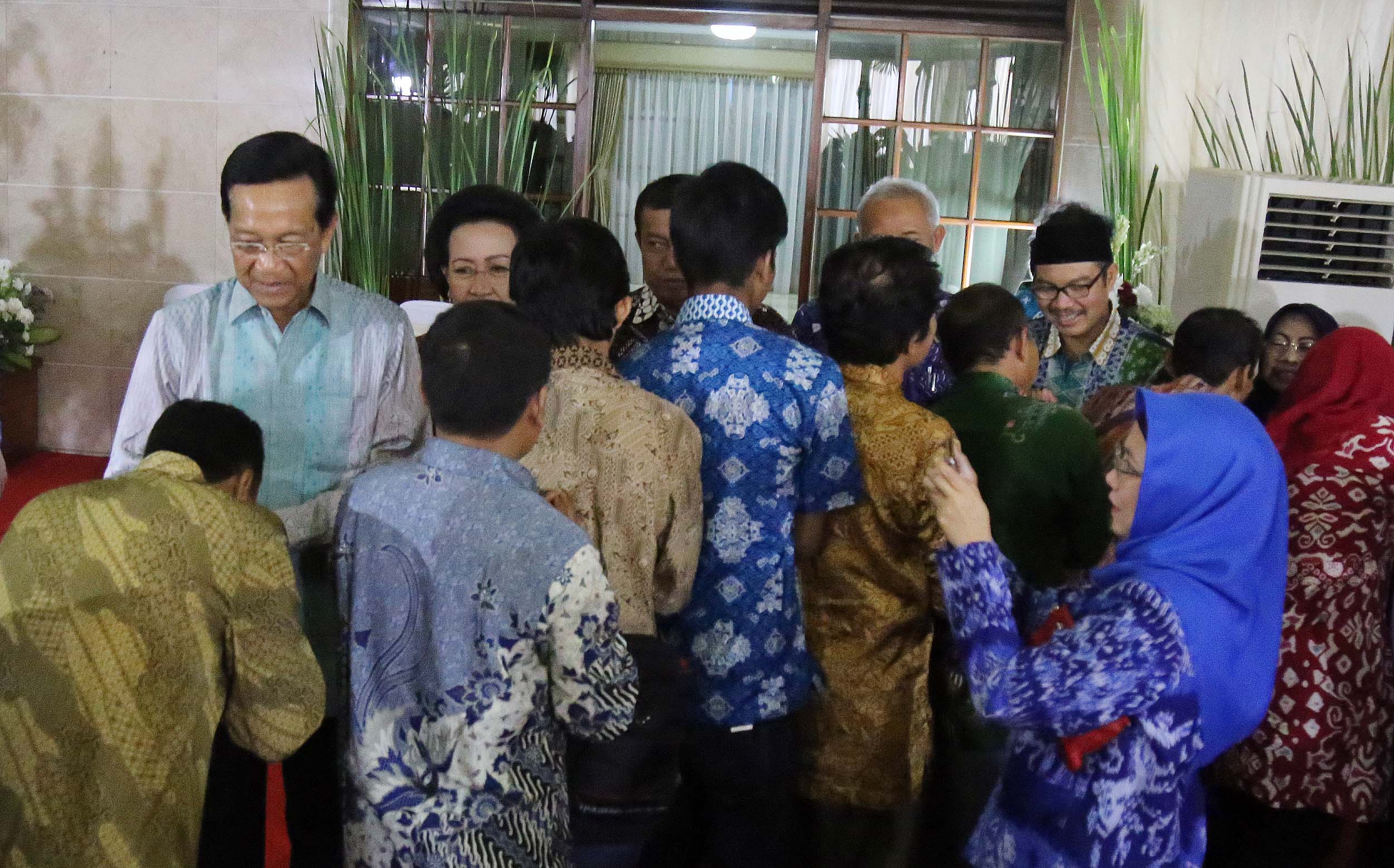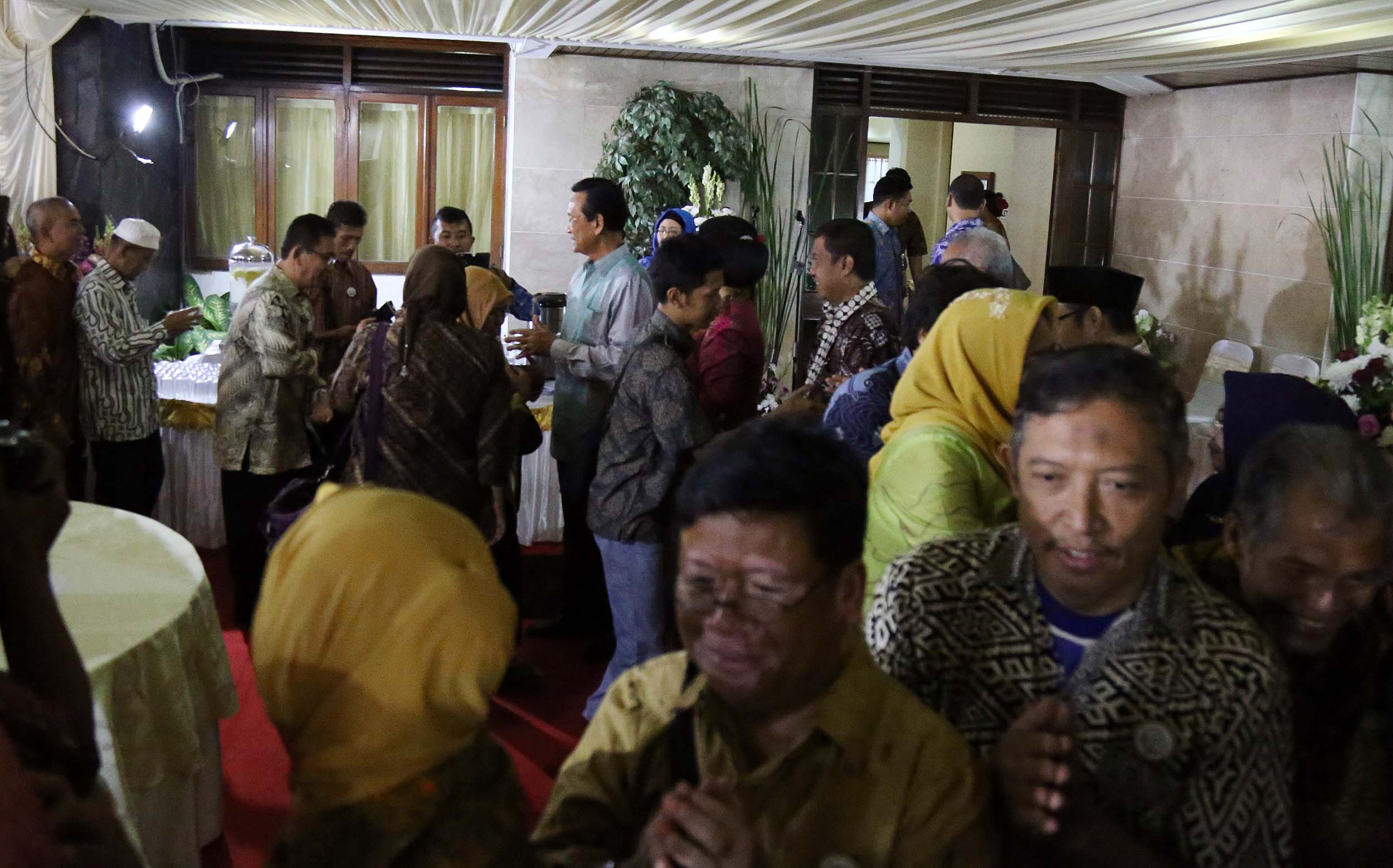 Wakil Ketua DPD RI, GKR Hemas (kiri) didampingi Gubernur DIY Sultan Hamengku Buwono X (kanan) saat halal bihalal di Kediaman Dinas di Kuningan, Jakarta, Minggu (24/7/2016). Halal bihalal dengan perwakilan warga Yogyakarta di Jakarta ini diantaranya membahas kegiatan partisipasi warga dalam kegiatan pembangunan di Propinsi DIY.