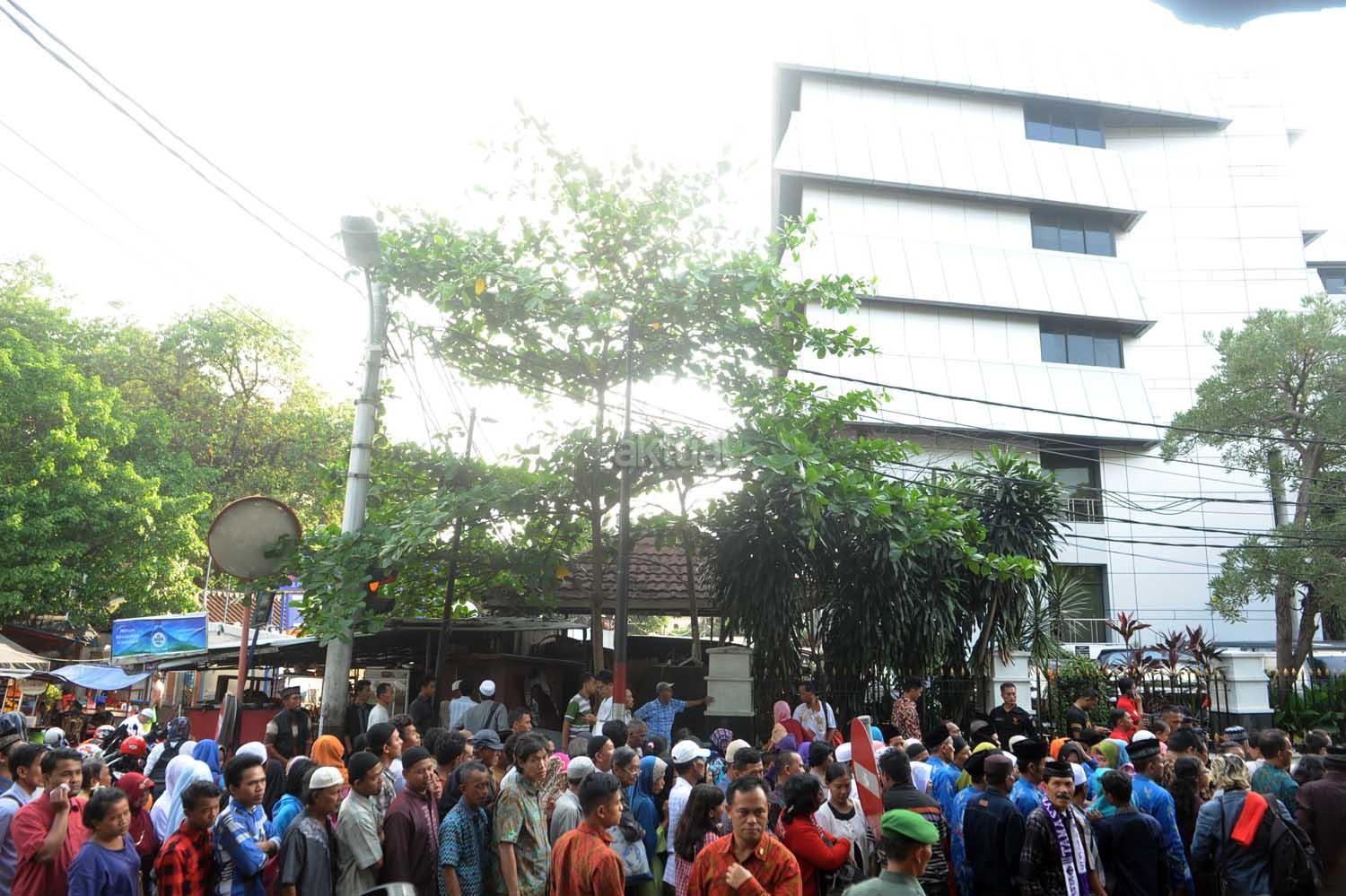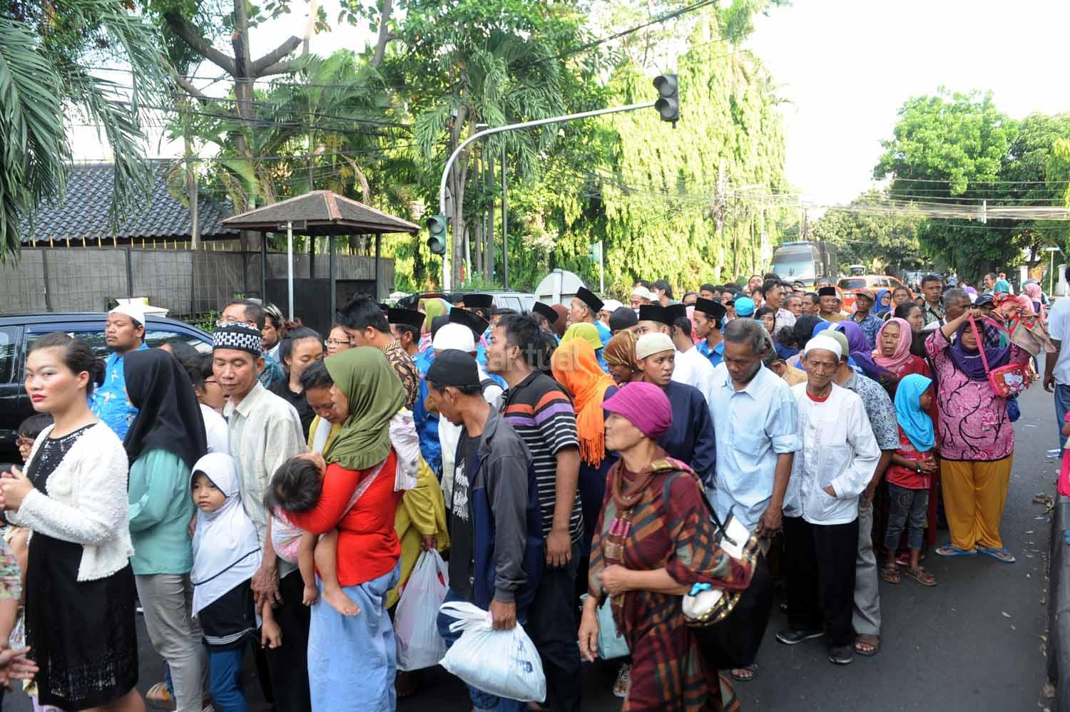 Antrian warga ketika akan melakukan silaturahmi dengan Wapres saat acara halalbihalal di Rumah Dinas Wapres, Jakarta, Minggu (25/6). Wapres menggelar halalbihalal untuk kolega dan warga yang ingin bersilaturahmi dalam rangka Idul Fitri 1438 Hijriah. AKTUAL/Tino Oktaviano