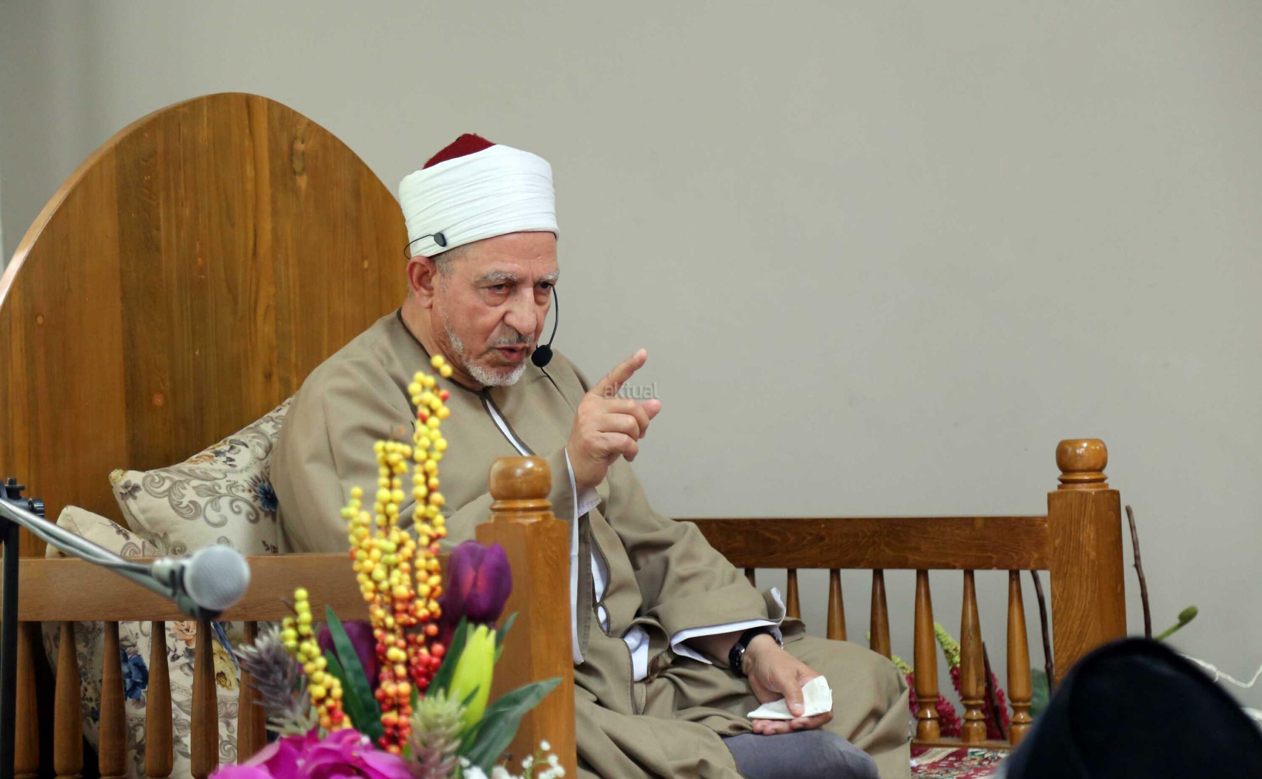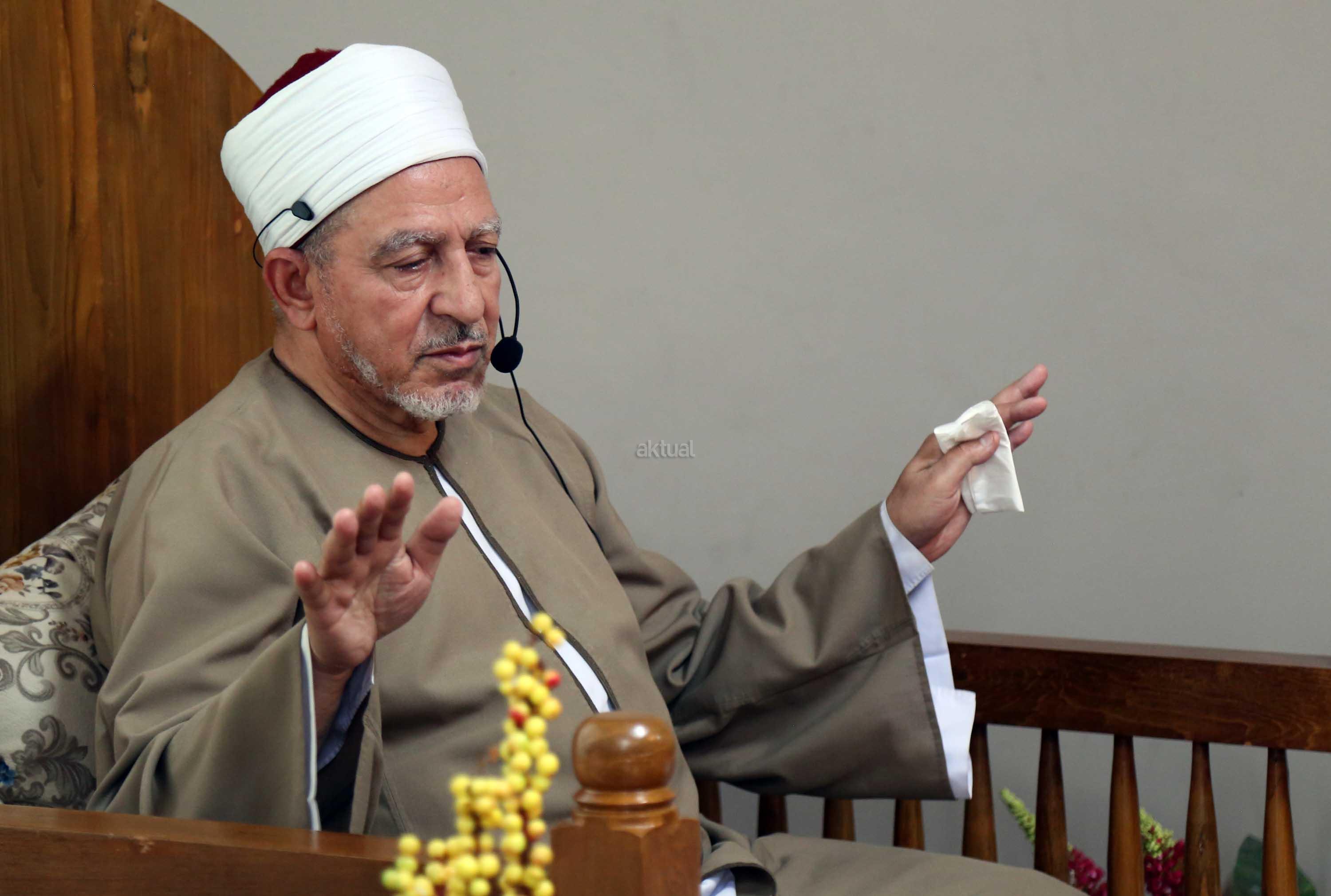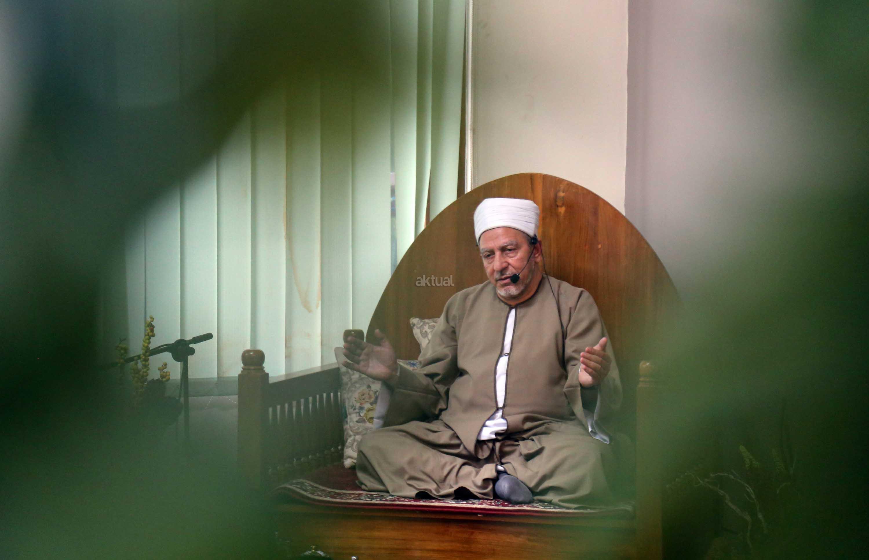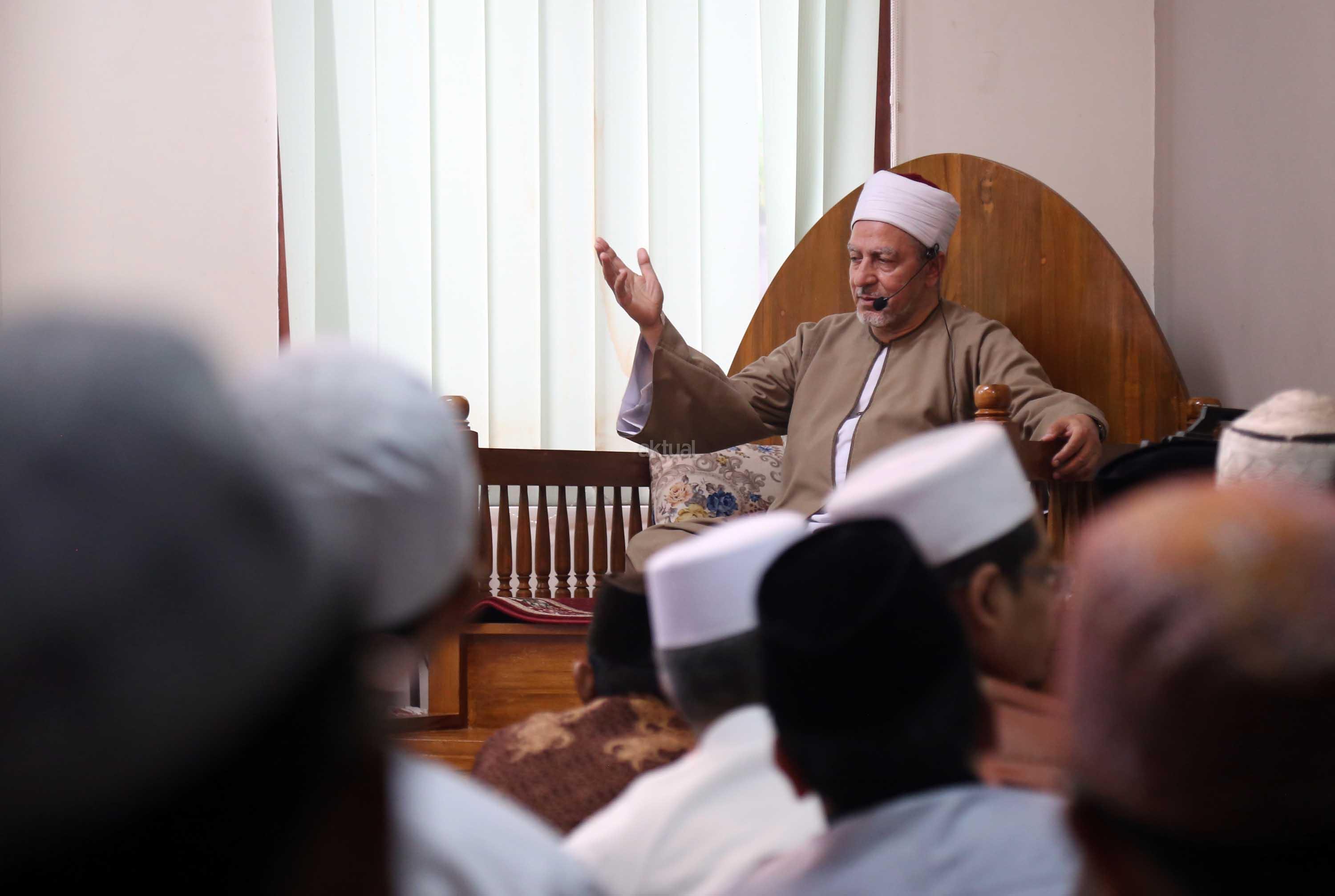 Guru Besar Universitas Al Azhar Kairo Mesir, Al Alim Allamah Syekh Prof. Dr. Fathi Abdurrahman Hijazi Al Azhari An Naqsyabandy saat menyampaikan tausiyah saat acara Halaqoh Shufiyah & Dauroh Ilmiyah yang mengambil tema “Telaah Tasawuf dalam Tantangan Zaman” di Zawiyah Arraudhah, Jalan Tebet Barat VII, No 50, Jakarta Selatan, Sabtu (20/5). Beliau menyempatkan diri ke Zawiyah Arraudhah sebelum pulang ke Mesir setelah kunjungan ke pondok Leler dan bertemu KH. Maimoen Zubair. AKTUAL/Tino Oktaviano