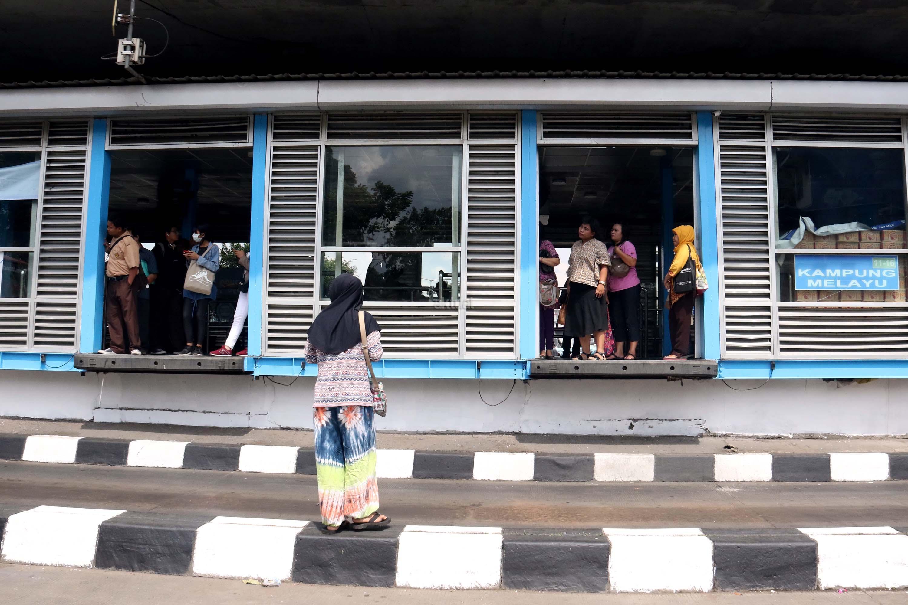 Halte TransJakarta Kampung Melayu yang sudah dioperasikan mulai ramai oleh penumpang. Sebelumnya, halte tersebut ditutup sementara karena terkena ledakan bom. AKTUAL/Munzir