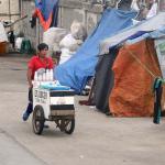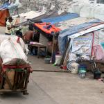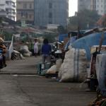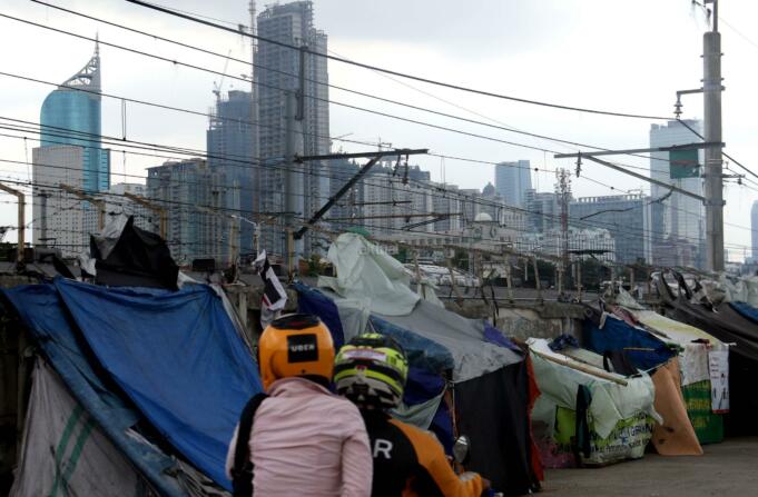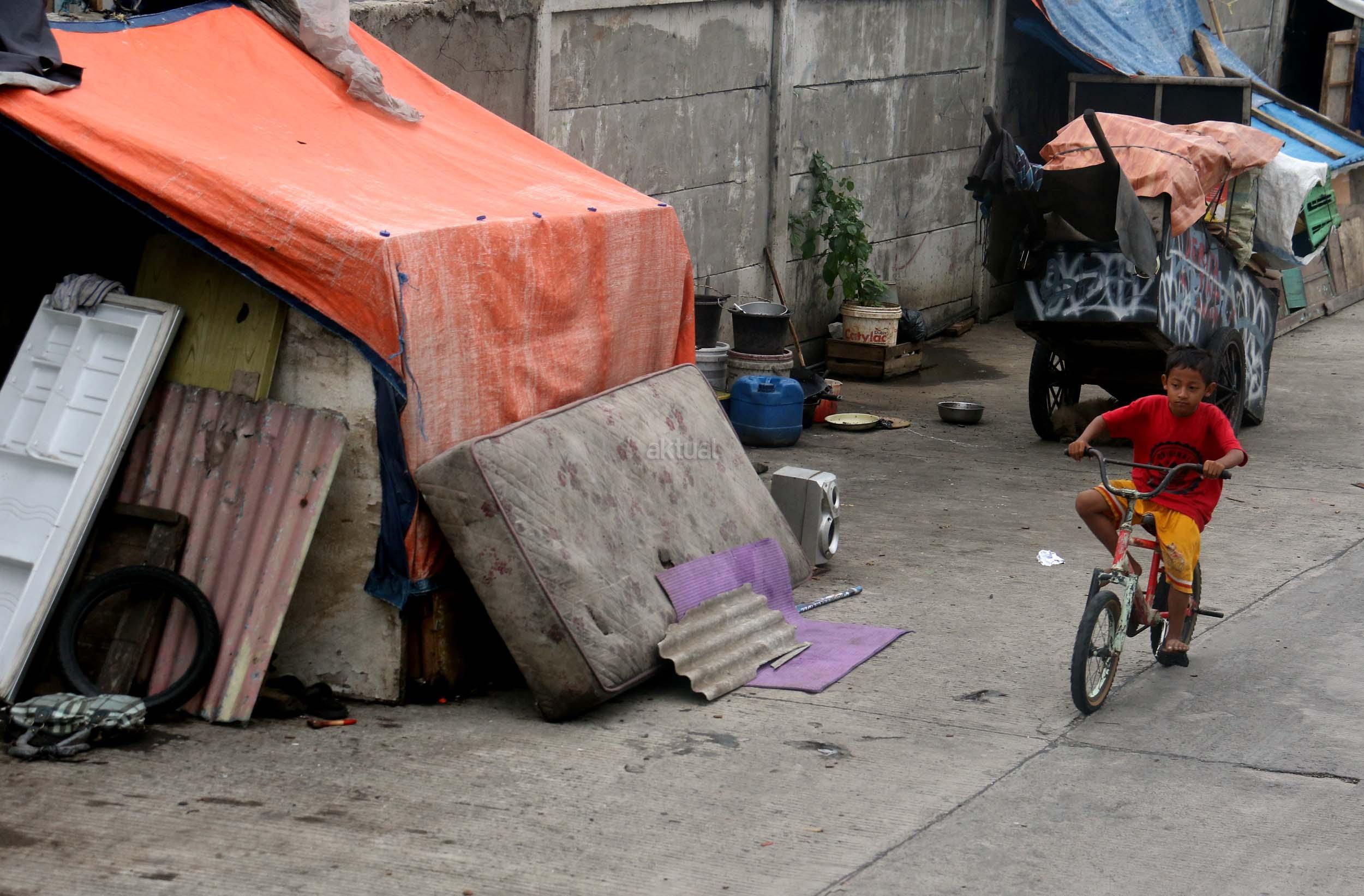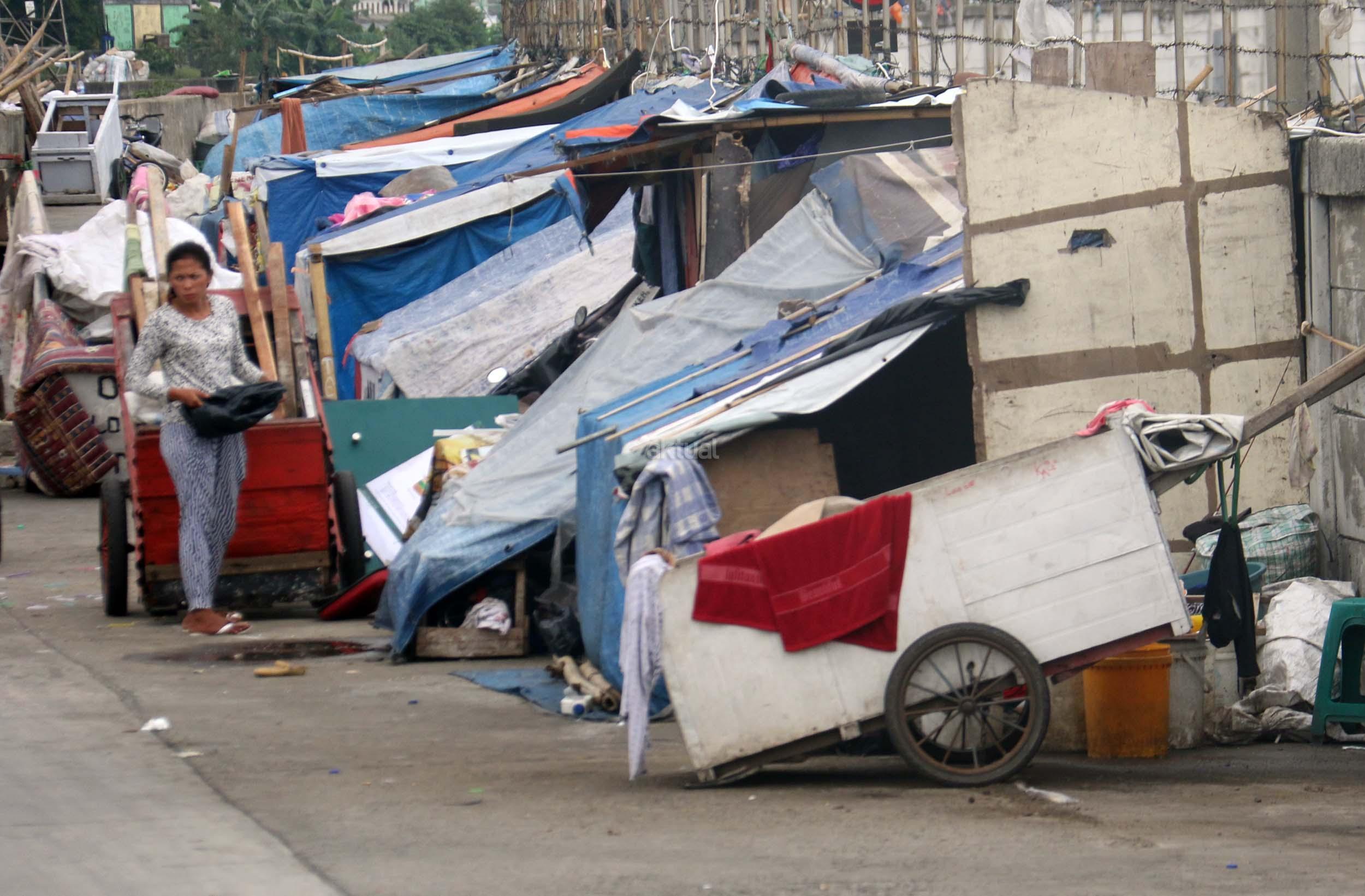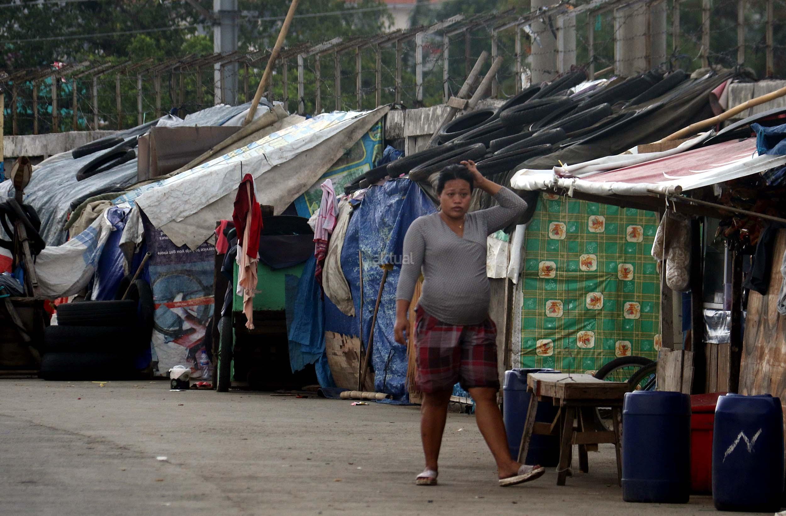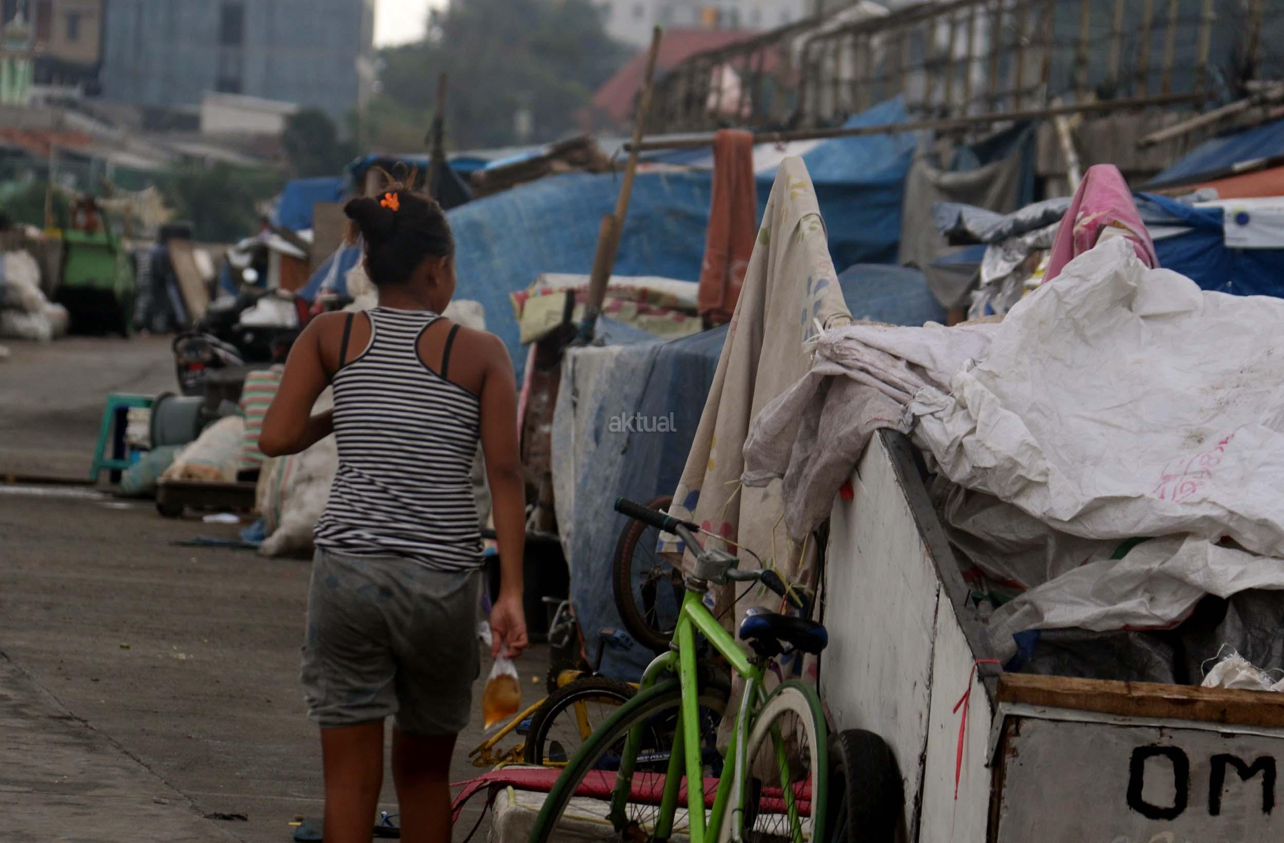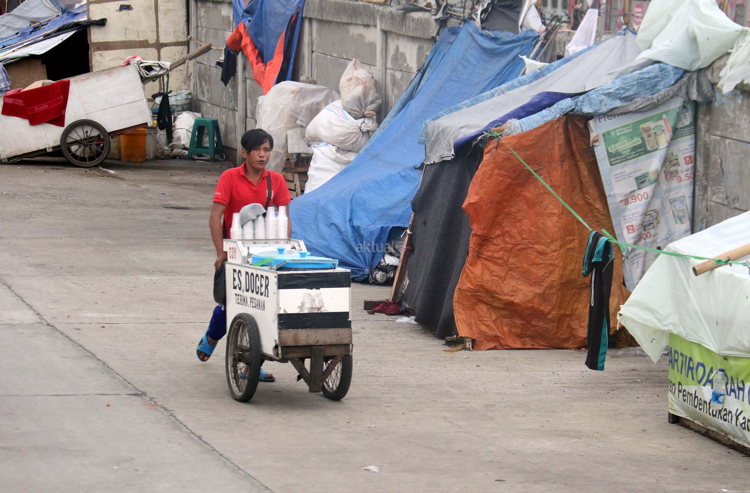 Motor melintas didepan gubuk liar memadati jalur inspeksi kanal banjir barat (KBB) di kawasan Kebon Melati, Jakarta Pusat, Rabu (4/1/2017). Sebanyak 48,91 persen penduduk Daerah Khusus Ibukota (DKI) Jakarta tidak mempunyai tempat tempat tinggal milik sendiri. Badan Pusat Statistik (BPS) terbitan tahun 2016 mencatat DKI Jakarta merupakan provinsi dengan kepadatan penduduk tertinggi di Indonesia, mencapai 15.328 jiwa per km2. AKTUAL/Munzir